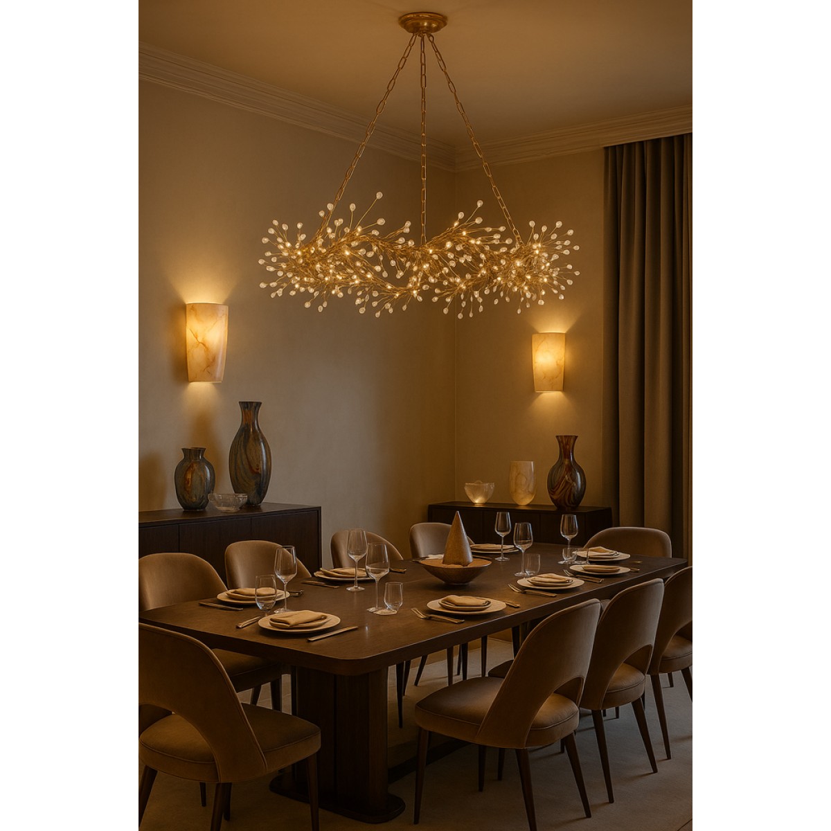 A twelve-light pendant lamps is a sleek and ultra-modern interpretation of the chandelier. This one of a kind lighting fixture will bring light and modern design to any space. Not only does proper illumination add basic functionality, it can also contribute to an overall design style and act as a tool to highlight different features or create the perfect ambiance. The rediscovery of rock crystal as a conductor of a magical rare light source pushed Designers to define creation within a repertoire of ever-changing material making each piece an original work. The natural and precious nature of this crystal becomes the first argument of this seductive lighting.