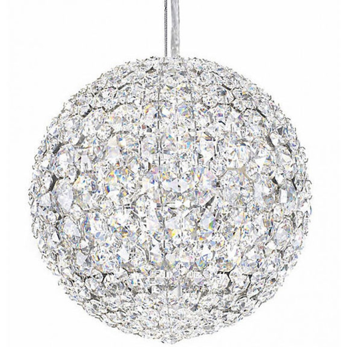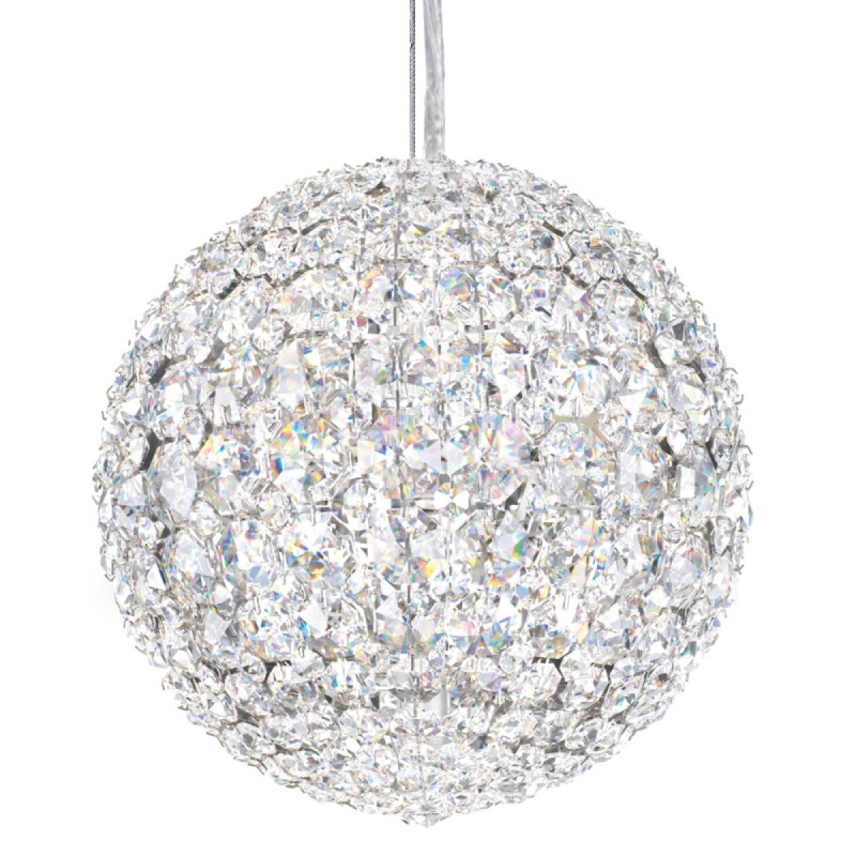 Leonardo da Vinci called on advanced mathematics to create masterful works of art. This same principle is at the core of Da Vinci Sphere Chandelier a magnificent sphere of light formed by hundreds of crystal octagons coming together in geometric harmony. This stunning crystal sphere pendant finished in chrome with neatly arranged crystal in varying sizes to create a beautiful sparkling light. This chandelier offers a sophisticated and truly elegant lighting. It is a magnificent sphere of light composed of hundreds of octagon crystals. Streamlined and dense with the thousand facets of cut crystal, this shimmering globe comes in a suspension form, a standing luminary, or table lamp. Because our lightings are made by a workforce that still relies on traditional working methods, each product is unique and carries with it sensitivity of the artisan.