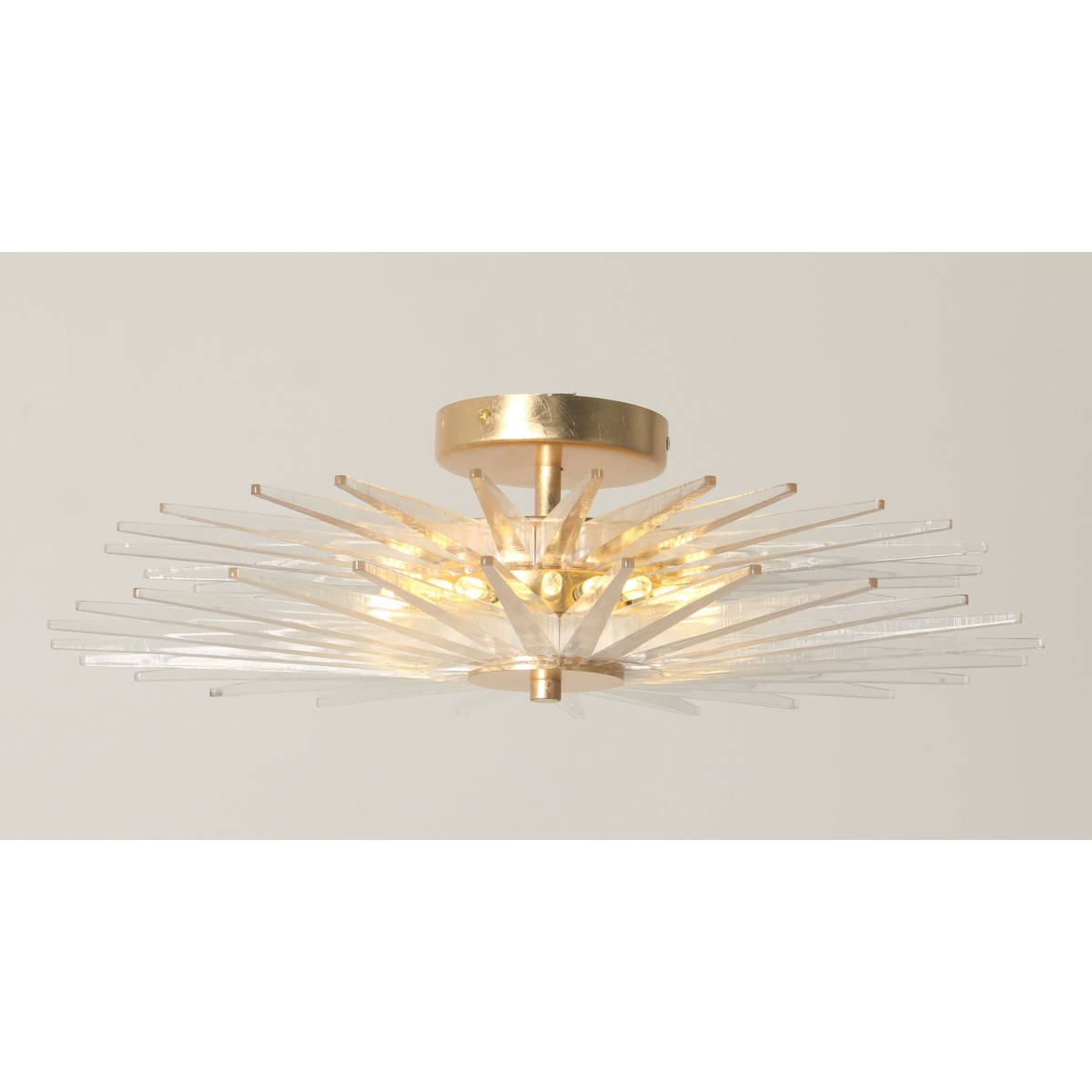 This Outstanding Venetian Flush Mount Chandelier literally draws in your sense of touch with Acrylic. Designed to look like a shiny star created by Mother Nature’s wondrous, this piece is one piece that will not only stand out but will provide an encompassing warming aura with its welcoming glow. Many decades of research and experimentation has led to the development of many exquisite Acrylic finish options, including ribbed with slight obscurity, and the clean look of the crystal cones. These can be created as hollow tubes to avoid weight issues. At Alan Mizrahi Lighting Design, we supply and manufacture many highly sought after designer pieces, All Chandelier can be customized by a number of lights, style, color and size to meet your specific needs. Every chandelier can also be combined with a matching table lamp and wall lamp to accomplish the best room design. Our company provides collections that can make all your project dreams come true.
