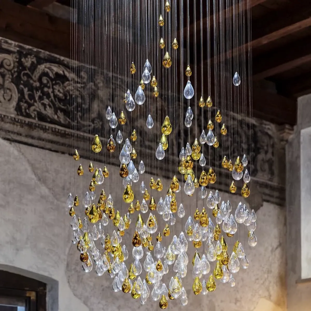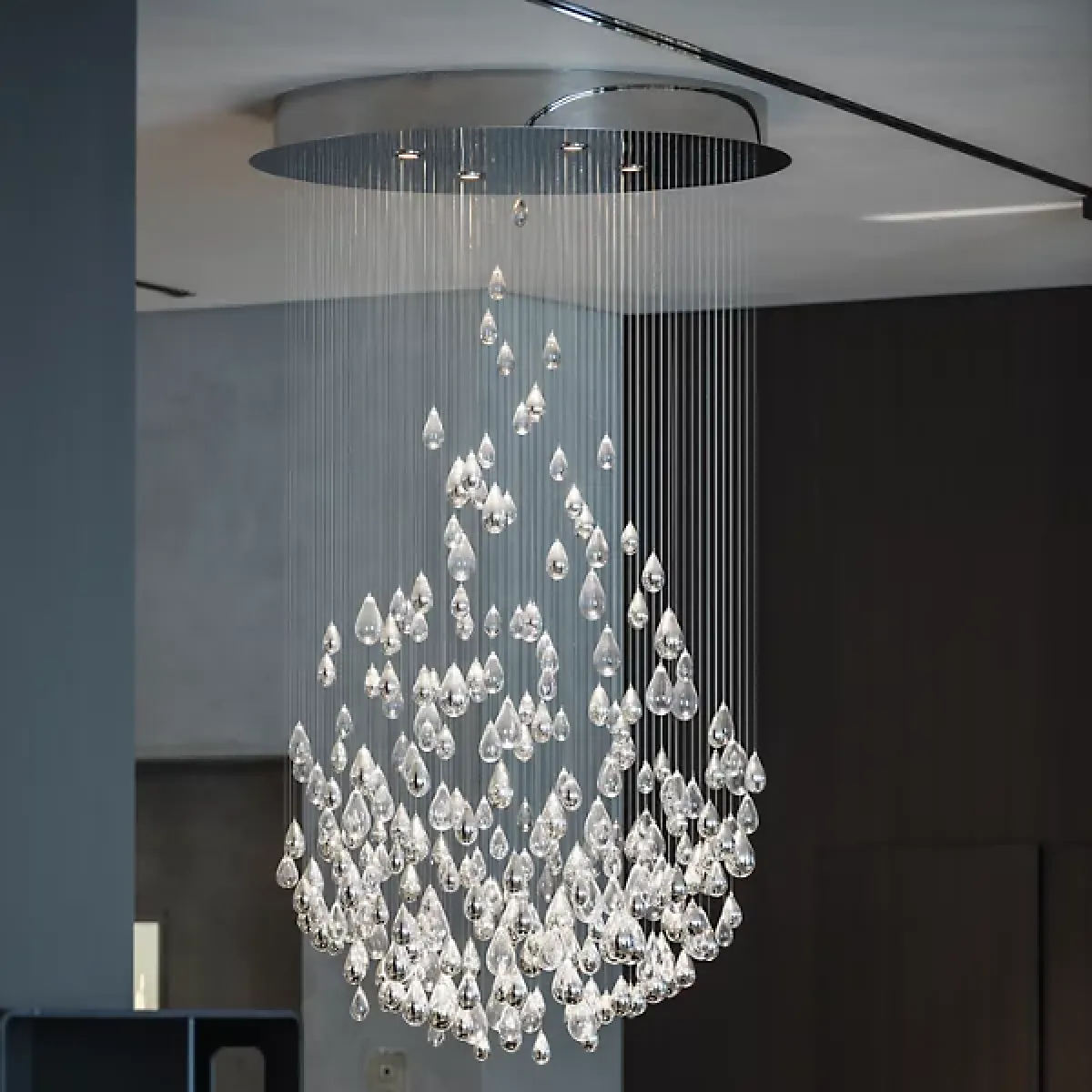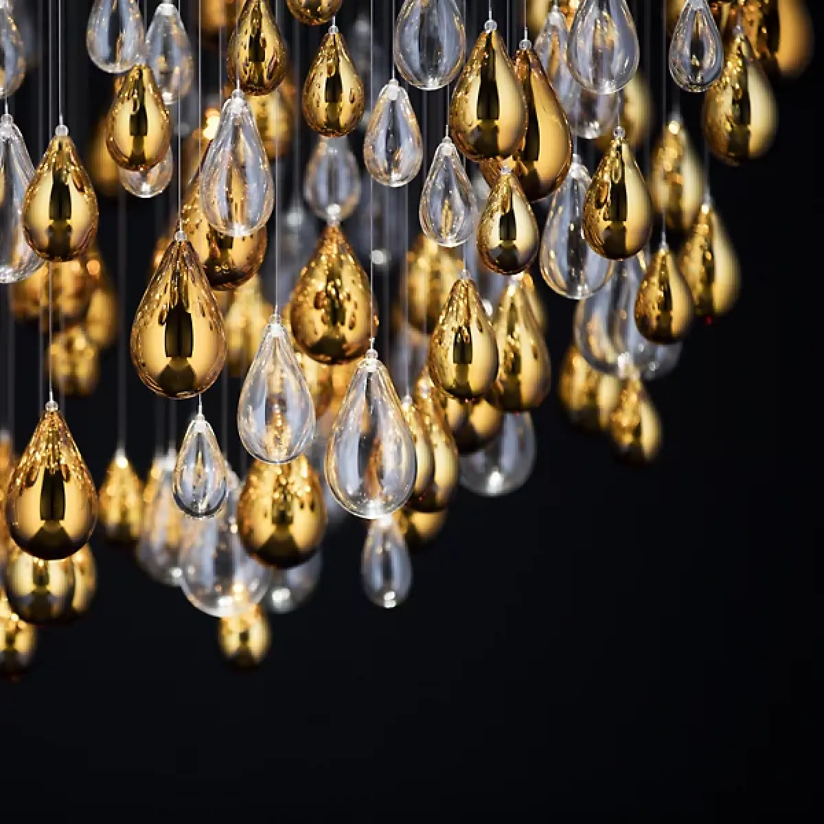 Contemporary Elegance in Motion. The DV3942 Light Droplets chandelier brings a sleek, modern aesthetic to any space with its delicate, cascading design—inspired by the graceful motion of falling water droplets. Featuring a Polished Gold frame, this chandelier offers a luxurious touch while maintaining a light, airy presence. Available in multiple configurations, it can be tailored to suit a variety of spaces, from intimate settings to grand interiors. Perfect for those seeking refined simplicity with a sculptural edge, the Light Droplets chandelier is a statement in contemporary lighting.