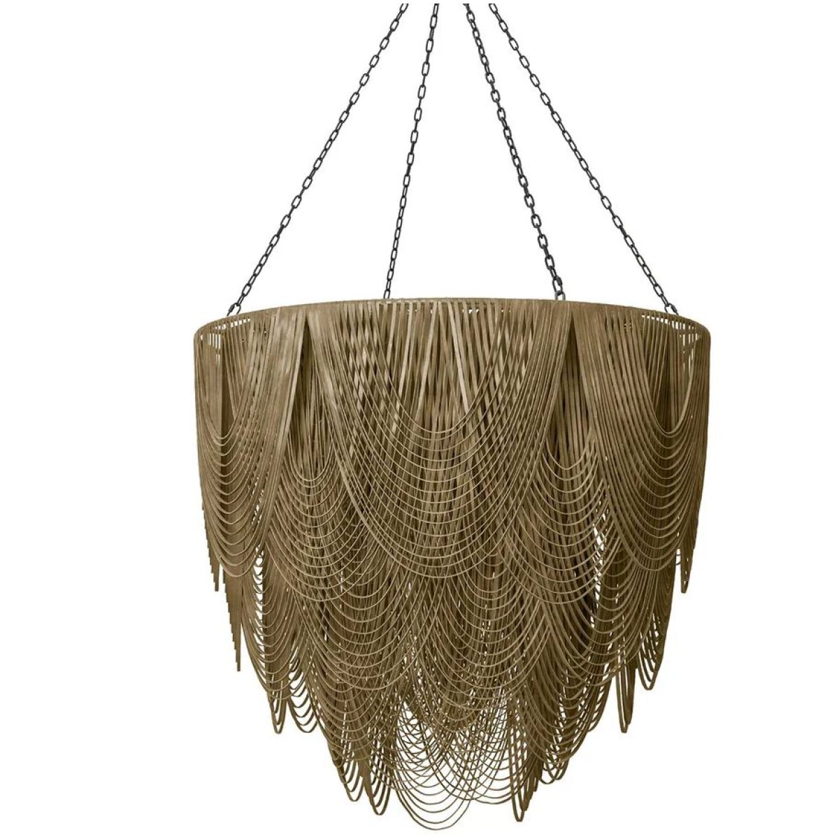 As much a work of art as a lighting fixture, chandeliers elevate the look of any space. This chandelier is perfect for an entryway in need of a little illumination, a staircase seeking brightening, or a kitchen island searching for some shine. Available in five standard sizes our Whisper chandeliers are designed to suit your space. Each is hand-made with varying lengths of stripped leather, creating layers of movement and texture. The ambient light from within the fixture emerges into the room in a soft glow, and is incredible when viewed from below. Not only does proper illumination add basic functionality, it can also contribute to an overall design style and act as a tool to highlight different features or create the perfect ambience.