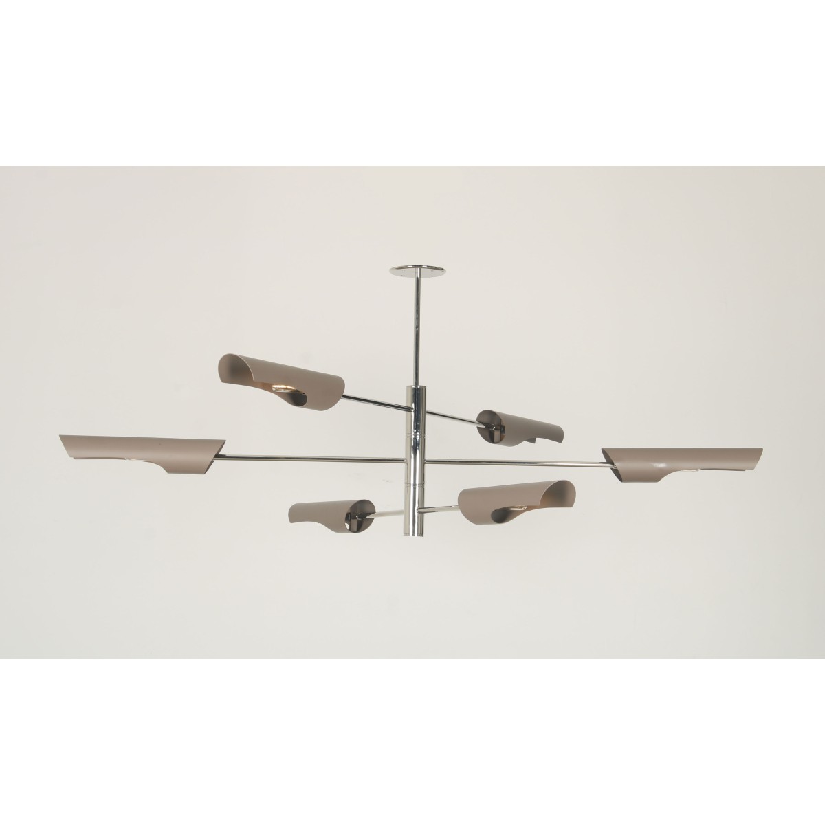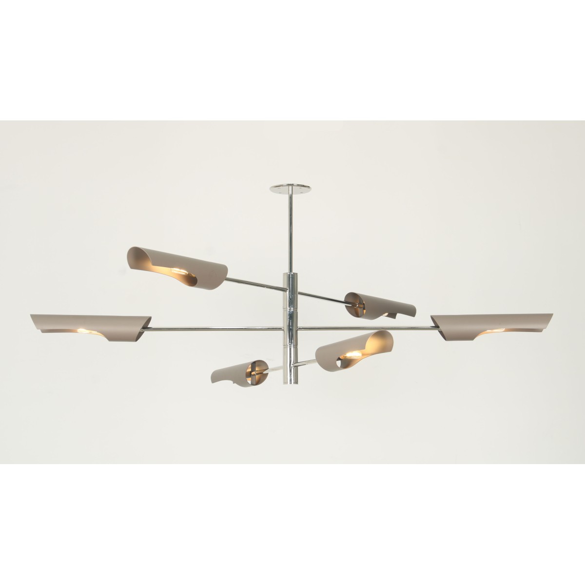 The Torroja Cross features a plated frame and tiers with rotating shades that cast light up or down. The number and length of tiers are fully customizable. Tiers scissor open when installed on site and arrangement is adjustable based on client specifications. At Alan Mizrahi Lighting Design, we especially emphasize exclusive creations, made by designers at home and abroad. No mass products, but one by one characteristic designs that offer you the possibility to add your own unique touch to your interior.
