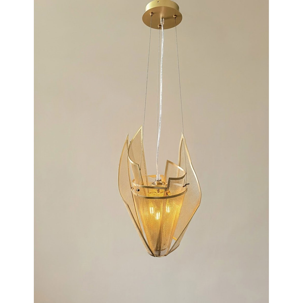 The stunning NER TAMID Pendant is meant to evoke the wonder and mystery of light presence. The overlays of bronze, copper and gold mesh provide changing views of the sparkling light all around. This piece emits an almost ethereal light due to the partially transparent mesh and will brighten any dining room or foyer. Because our lighting is made by a workforce that still relies on traditional working methods, each product is unique and carries with it the sensitivity of the artisan. All aspects can be customized-hardware finish, dimension, and the most current LED illumination options.