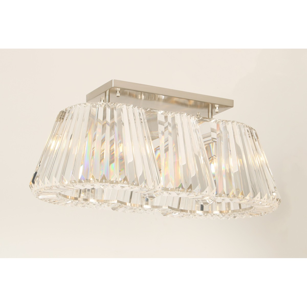 Provocatively ice clear “pleated” lamp-shades with right angle cranked legs stand in contrast with the ornamental composition of shadows that appear on the walls after you switch on the light. The classical design together with an optical projection merges into a “romantic functionalism”.