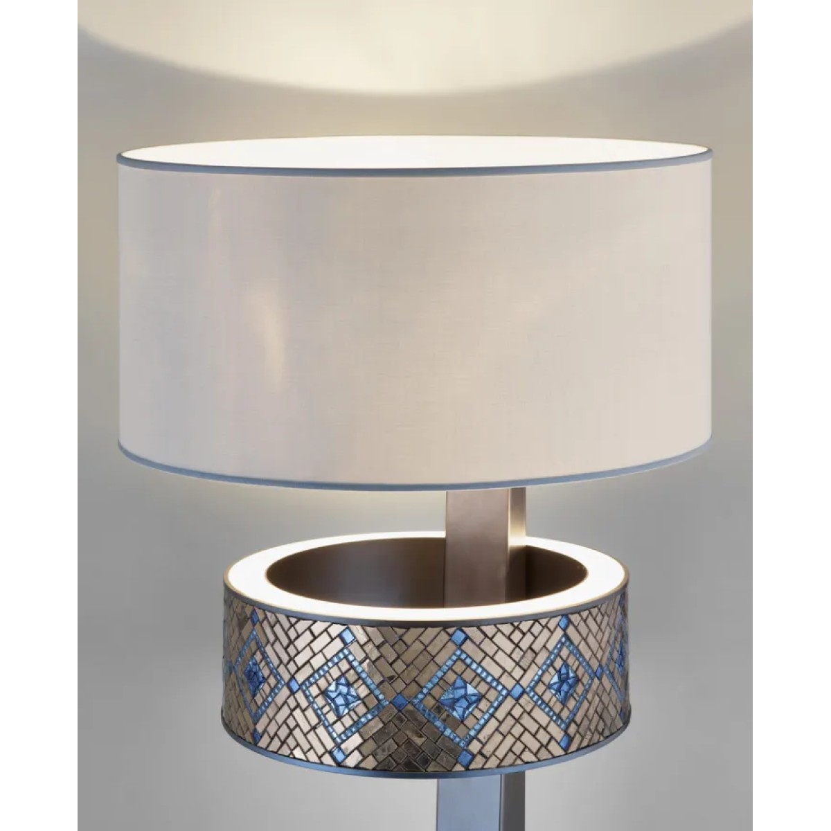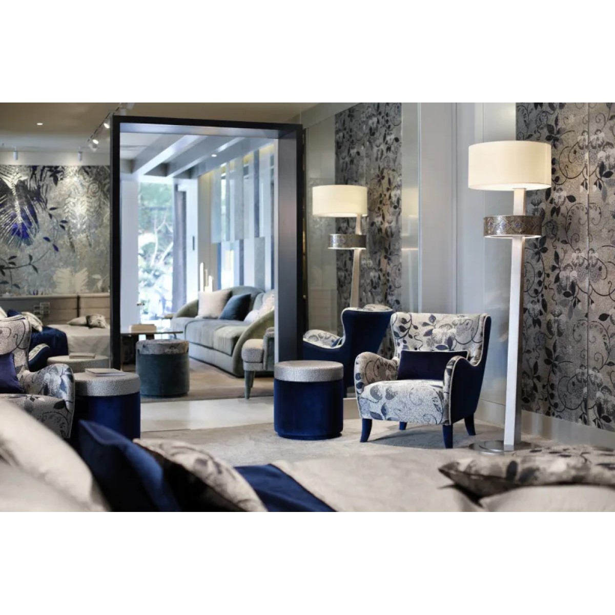 The Etoile Floor Lamp is a sophisticated blend of modern elegance and subtle glamour. Its tall, streamlined frame supports a wide fabric shade, casting a soft, ambient glow ideal for creating a warm and inviting atmosphere. A distinctive decorative band, adorned with refined metallic detailing, adds a touch of artistry and texture, elevating the lamp from a simple light source to a design statement. With its balanced proportions and luxurious finishes, the Etoile Lamp complements both contemporary and classic interiors, making it perfect for living rooms, lounges, and hotel suites.