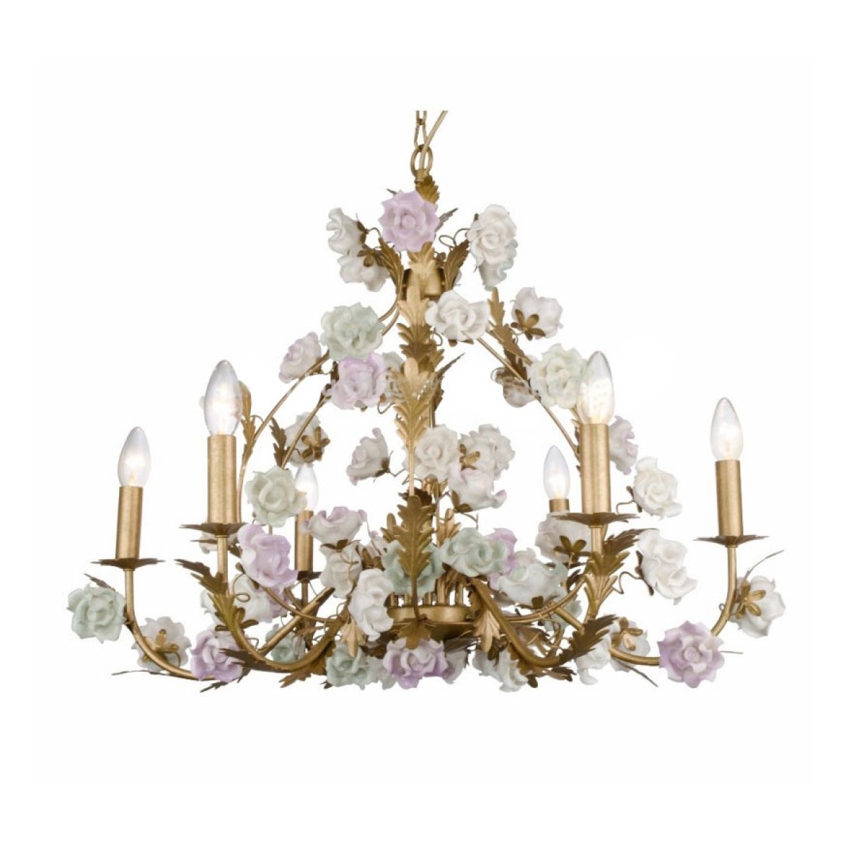 As the flowers of the garden, you can have a chandelier in your room unique and wonderful. The roses are of handmade total white porcelain that are the best quality and design, hand-painted, ivory bisque roses with crystal sprays and dainty matte gold/silver leaves. You have a wide range of finishes and colors to choose from for these chandeliers "A fragment of the sinuosity and beauty of the deepest nature, of its oscillating and spontaneous forms... Glare of comfort that is detached by the whole stay, that gives naturalness to the style and elegance to the environment, alive in its essence, alive in its creation.