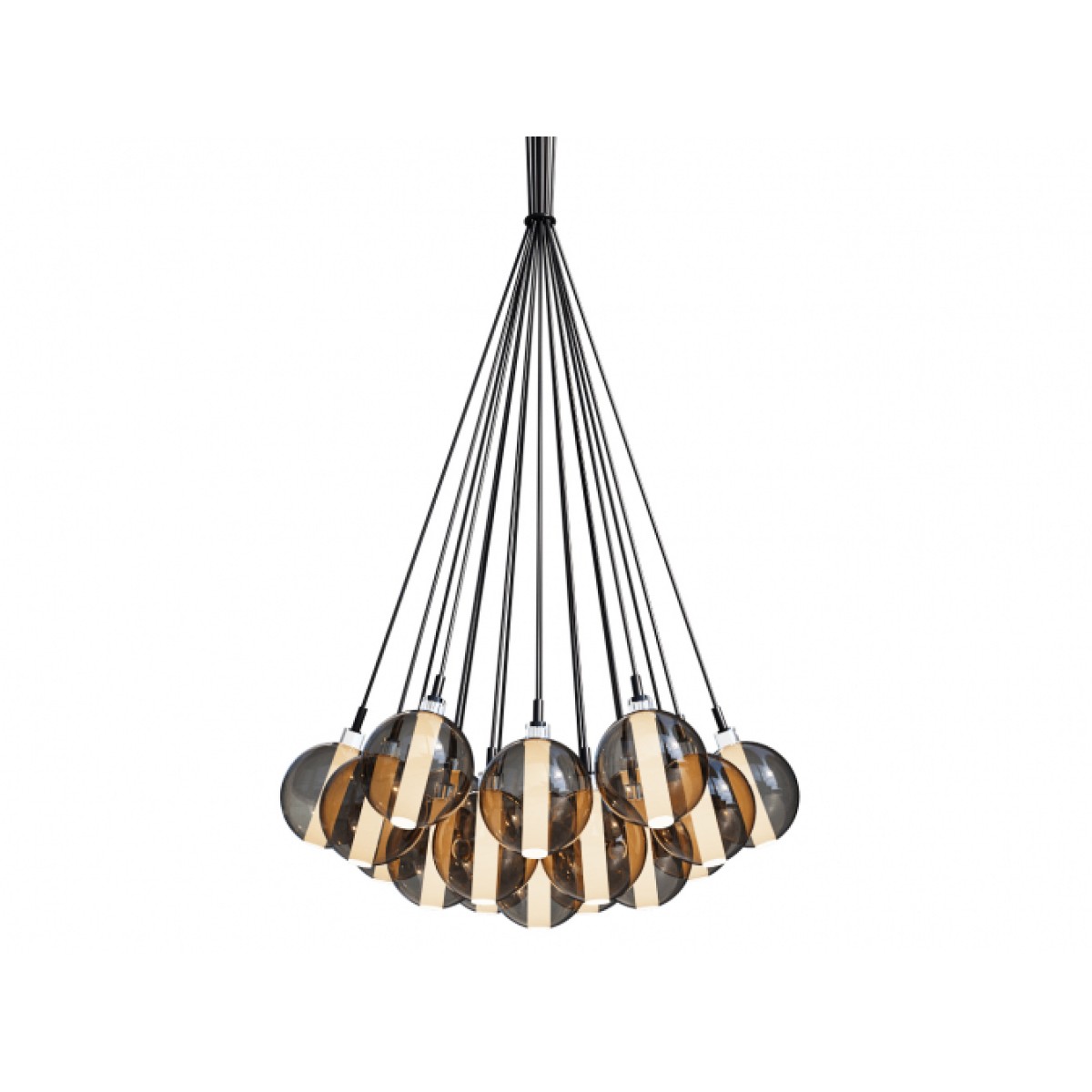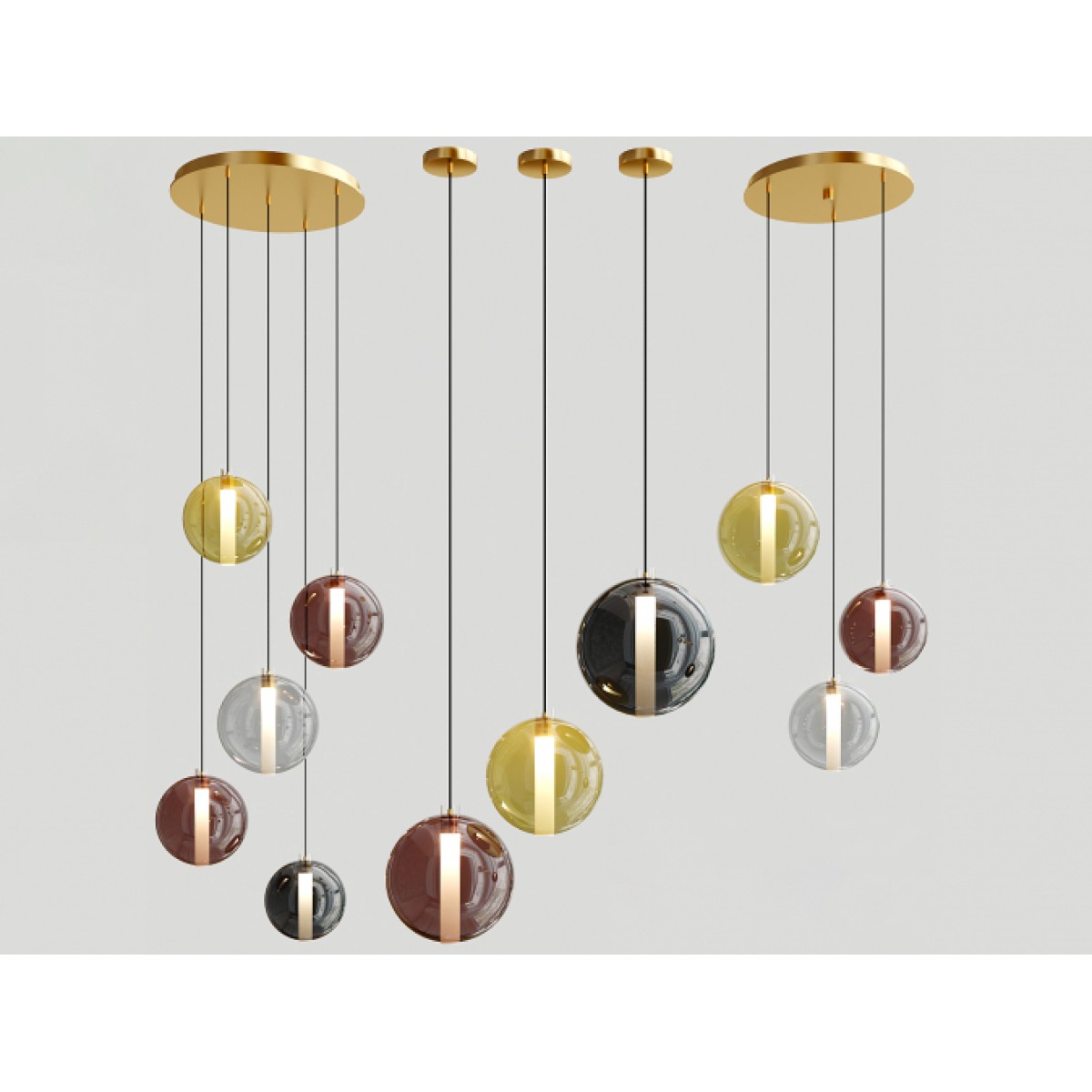 The Eclisse Black chandelier is a studio design by Cangini & Tucci. It is part of the collection of the same name. It is made of hand-blown glass. Available glass colors: clear, pink, amber, green, blue, smoky, tobacco, and ruby.