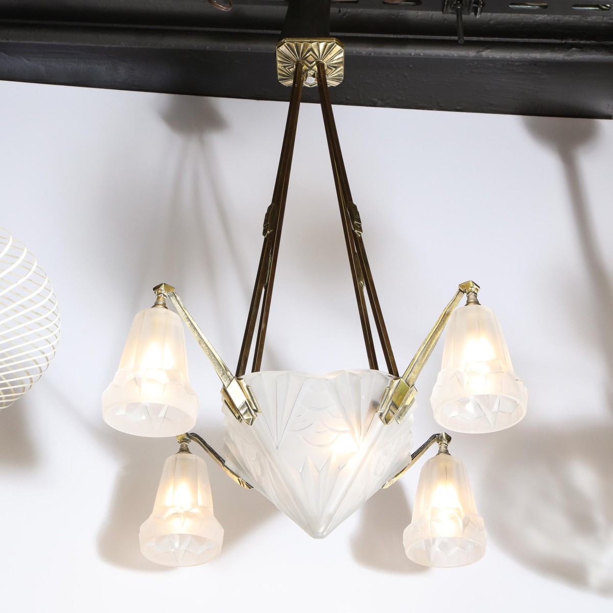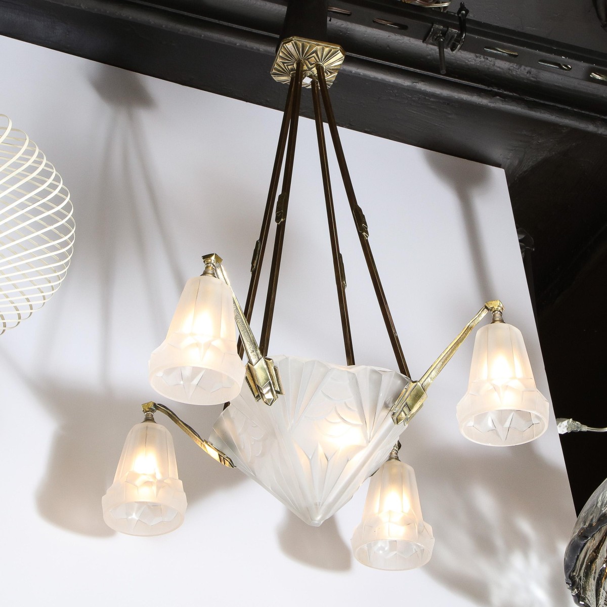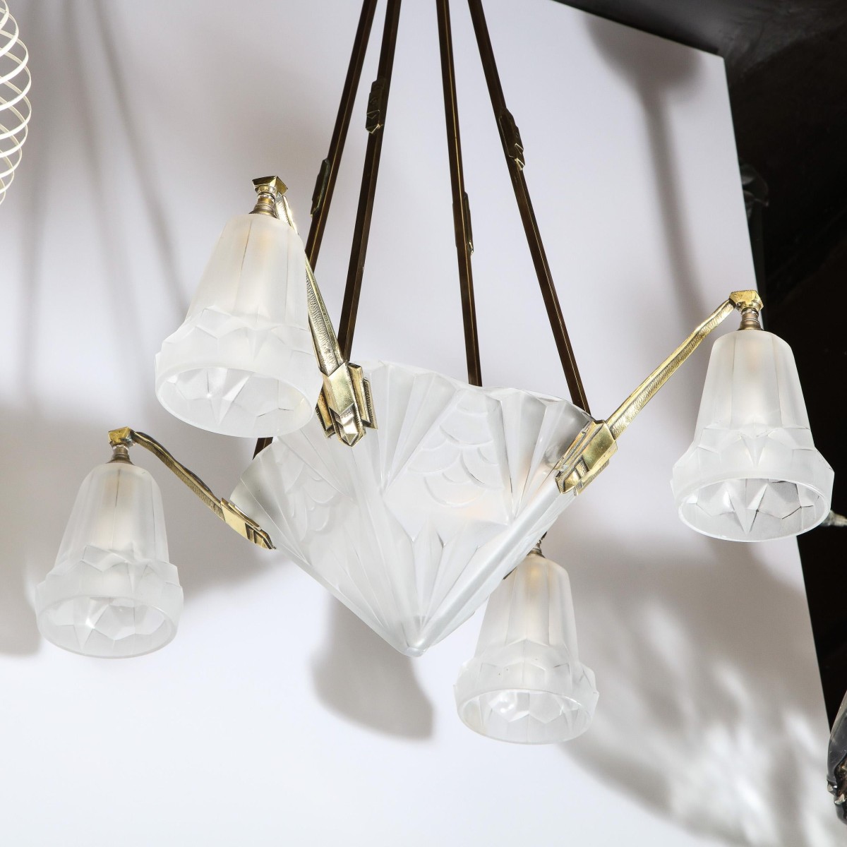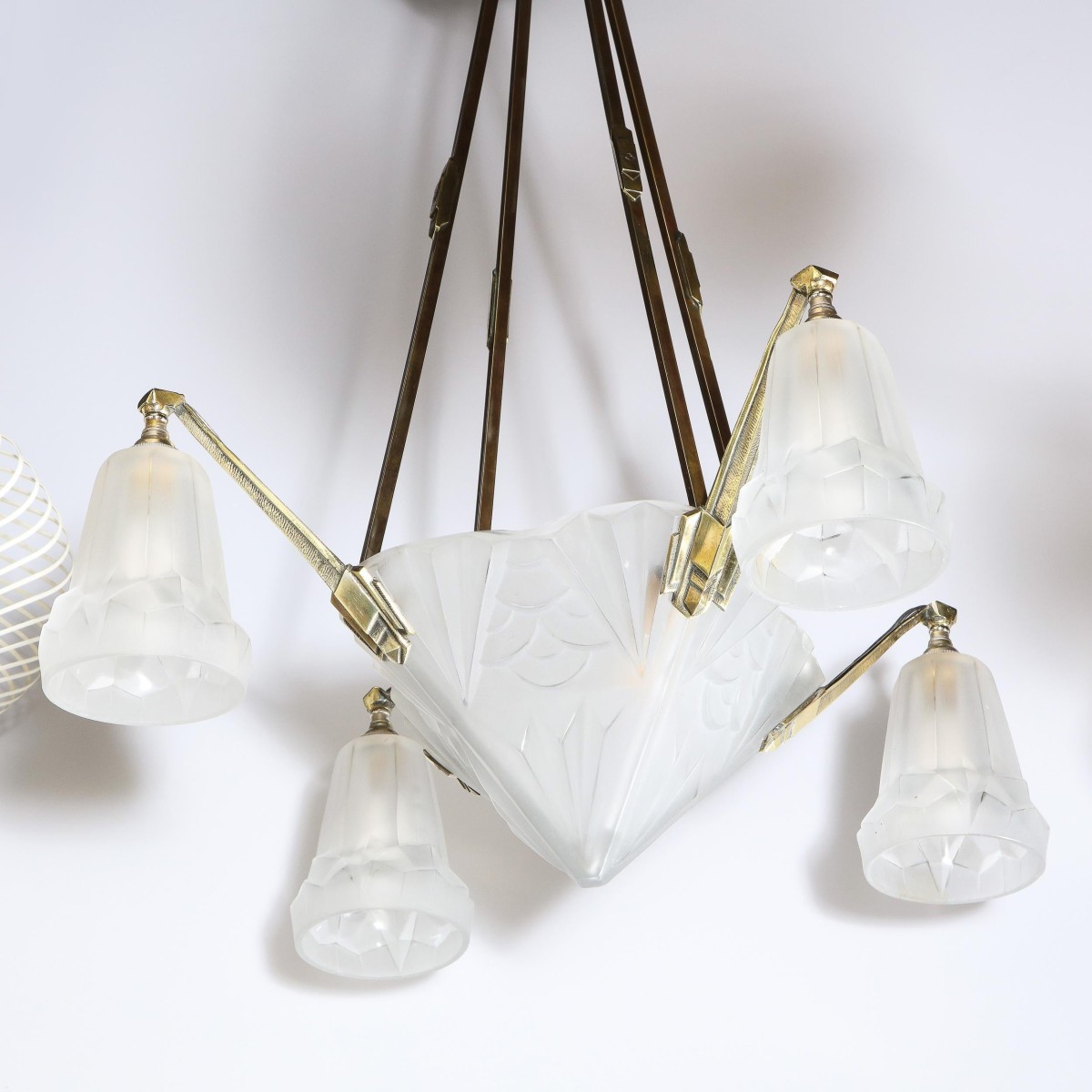 - Product Code: IQ4299 ART DECO FROSTED GLASS & SILVERED BRONZE CHANDELIER