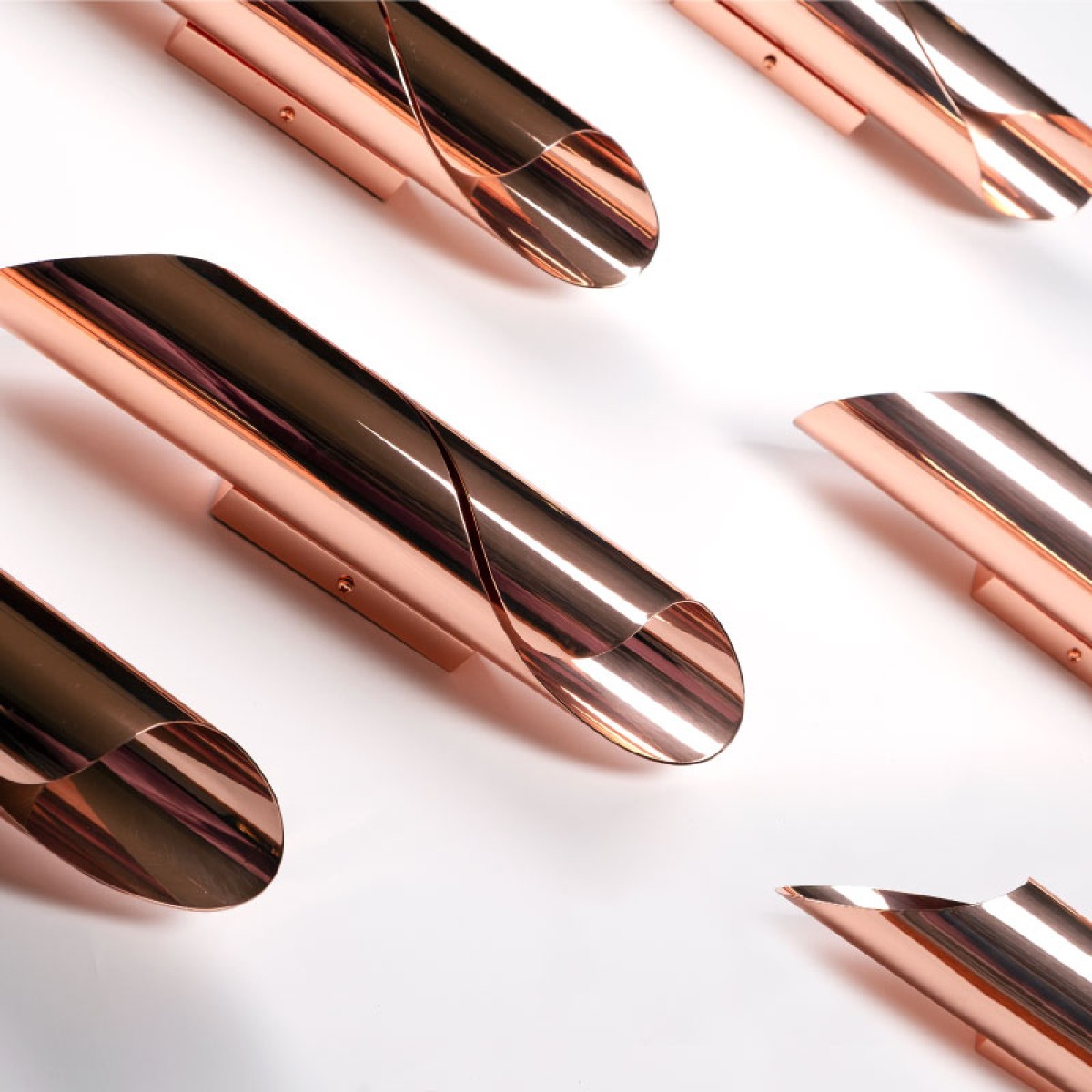“Japanese Arrow Bamboo” is perhaps the most widely cultivated bamboo in the United States. The contemporary Arrow wall lamp is like a wrapped bamboo leaf, all made in brass, either gold or chrome-plated. This sober yet modern wall lamp will adorn the walls of contemporary living spaces.