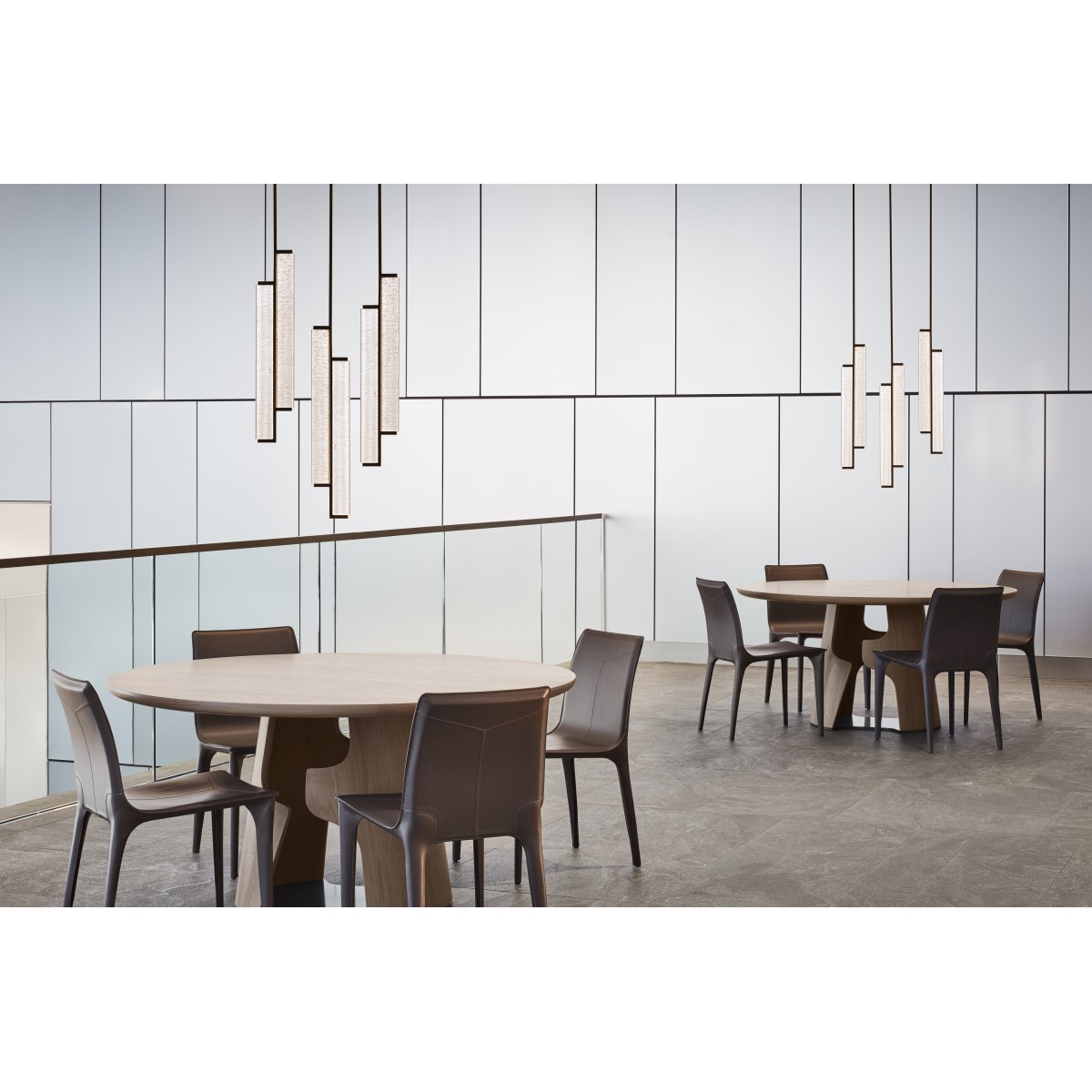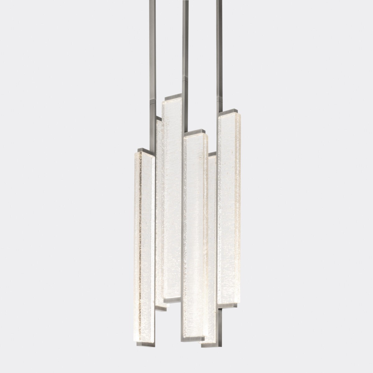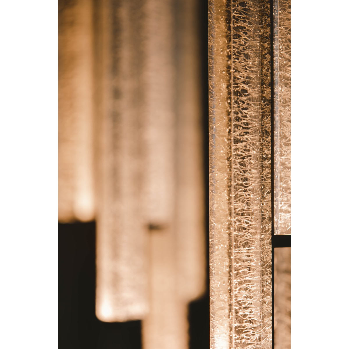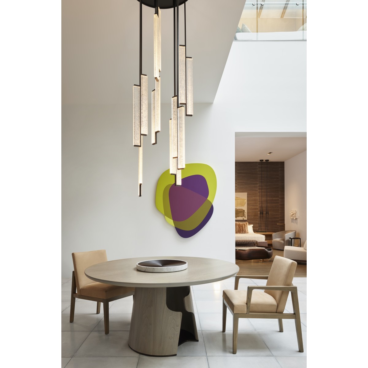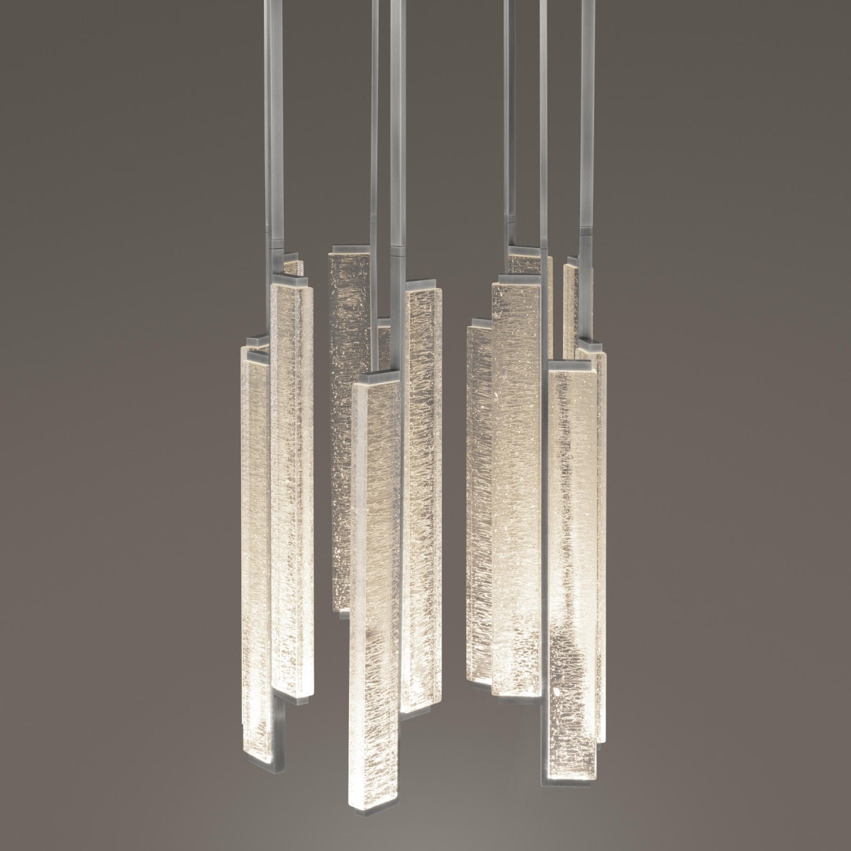 The Kori Chandelier’s cast glass emits a glow reminiscent of dripping icicles at night, inspiring its name which means “ice” in Japanese. The individual pendant units can rotate in a range of angles and positions to best highlight both the space and the beautiful textures created by the vertical glass casting process, which ensures that no two pieces are exactly alike.