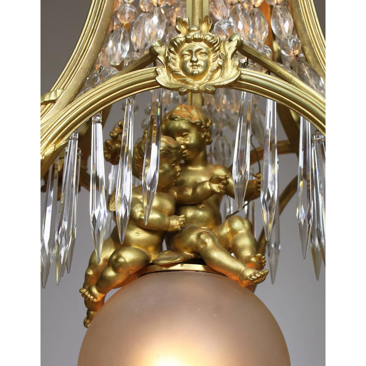 IQ4344 FRENCH BELLE EPOQUE GILT-BRONZE AND CUT-GLASS FIGURAL CHERUB & PUTTO CHANDELIER