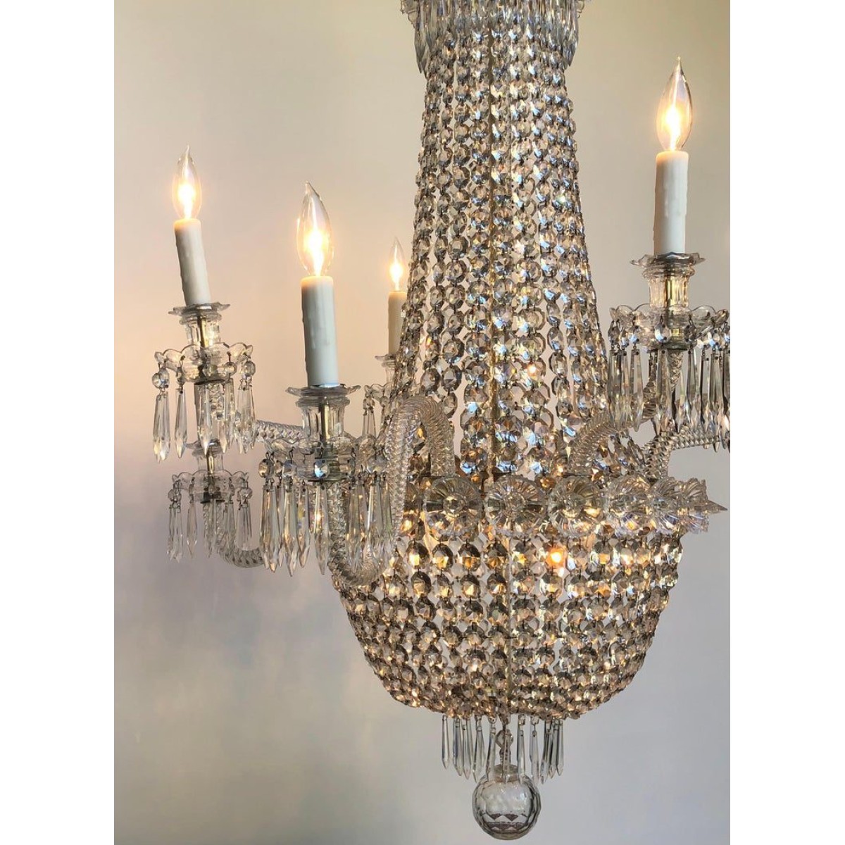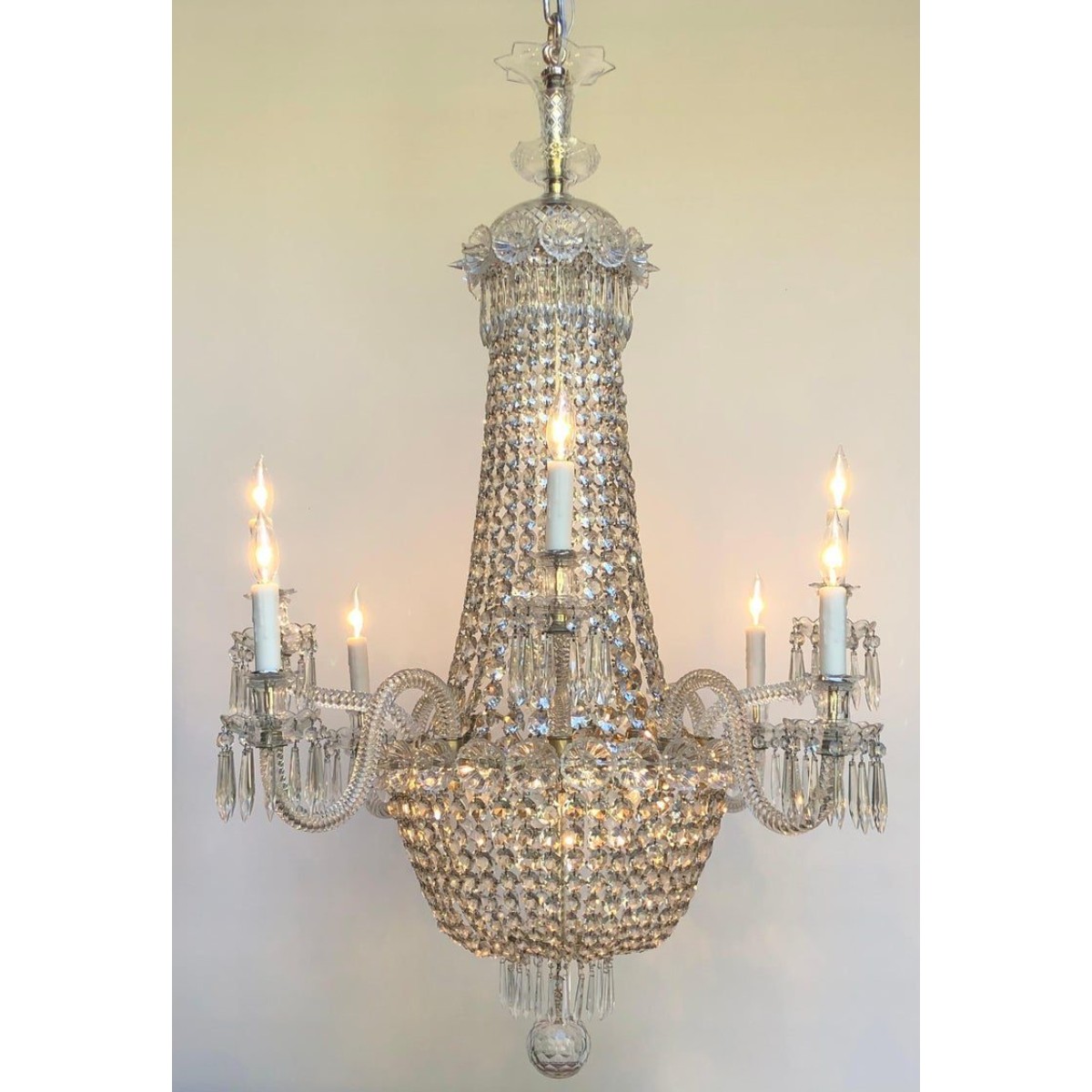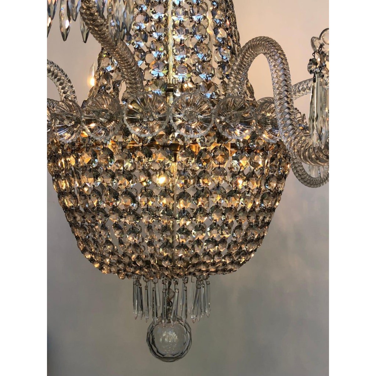 • Product Code: IQ4497 TENT-AND-BASKET SILVER PLATE & CRYSTAL CHANDELIER