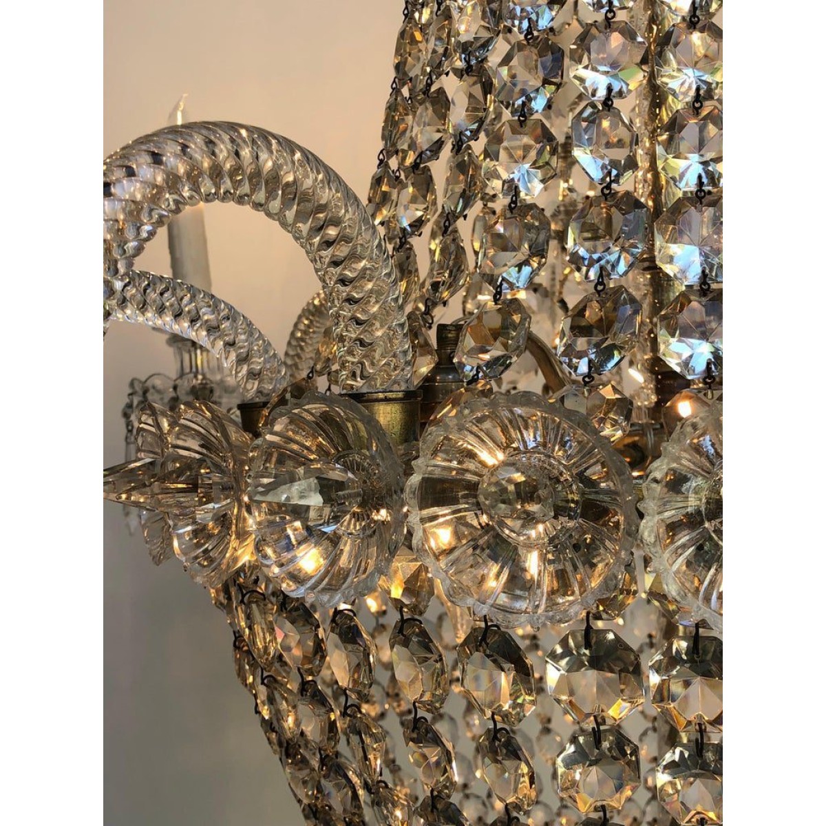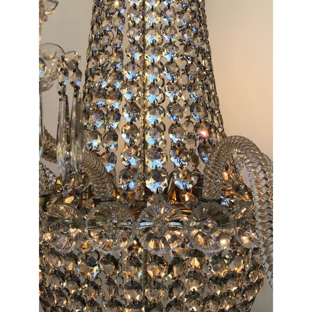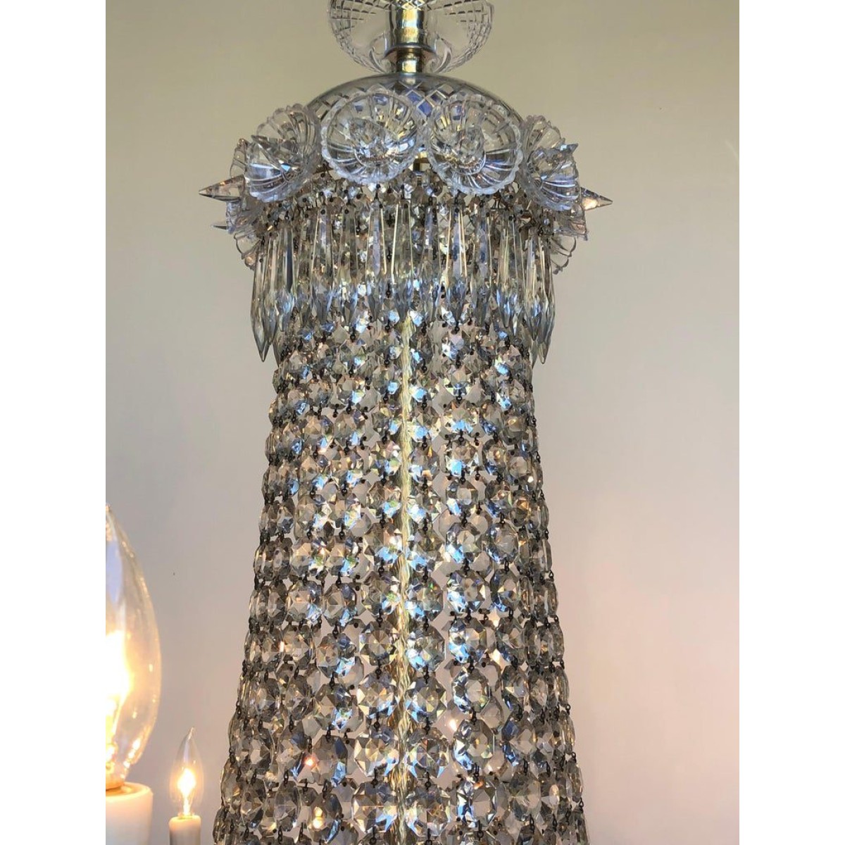 • Product Code: IQ4497 TENT-AND-BASKET SILVER PLATE & CRYSTAL CHANDELIER