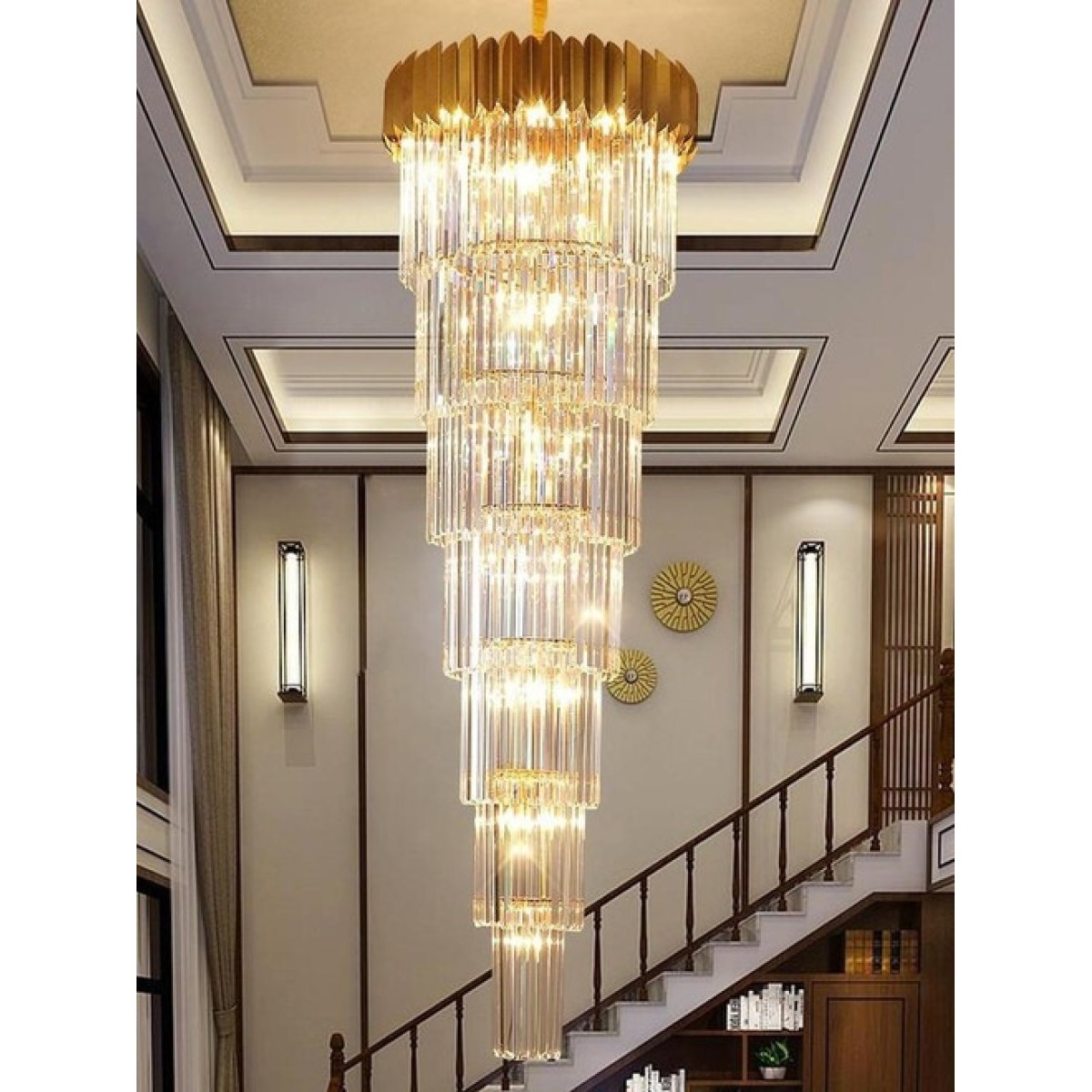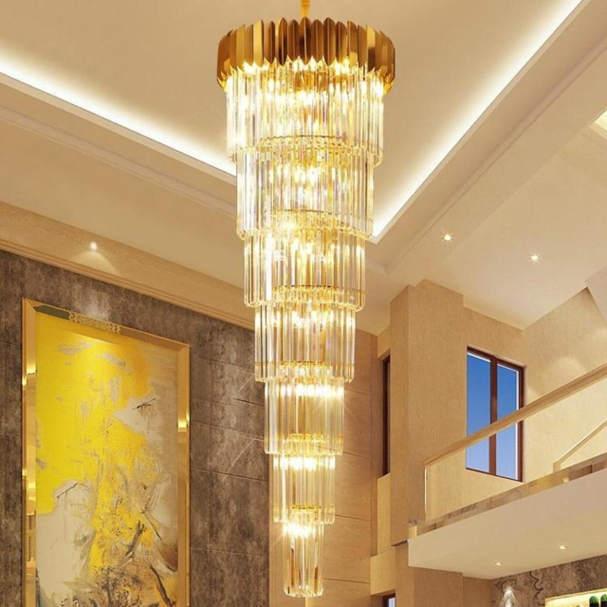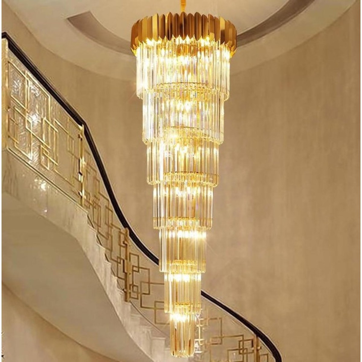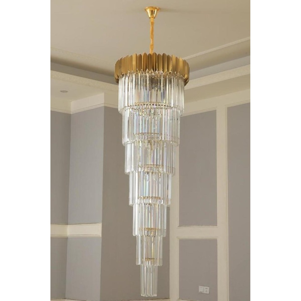 The Giovanni Long Chandelier is an exquisite lighting fixture designed to make a statement in spaces with high ceilings. Perfect for homes with vaulted ceilings, expansive entryways, or grand staircases, this chandelier combines modern aesthetics with dramatic scale, offering a bold yet elegant centerpiece. The Giovanni chandelier is more than just a source of illumination; it's a striking piece of art that enhances the architectural features of any room, providing both light and a touch of luxury.The Giovanni chandelier is crafted specifically for large spaces with high ceilings. Its elongated design allows it to fill vertical spaces beautifully, creating a seamless connection between different levels in a multi-story room or foyer. Whether it's in a grand living room, a luxurious dining hall, or an open-plan loft, the chandelier's length is customizable to fit perfectly, ensuring that the fixture draws attention and enhances the ambiance of the room. High ceilings present an opportunity to make a bold design statement, and the Giovanni chandelier capitalizes on this. Its vertical shape makes it ideal for tall spaces, adding visual interest and balance without overwhelming the room. The chandelier’s sophisticated design makes it an essential focal point that draws the eye upward, highlighting the height and grandeur of the space.