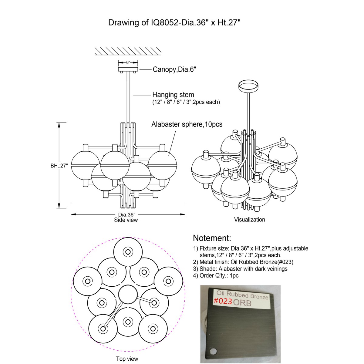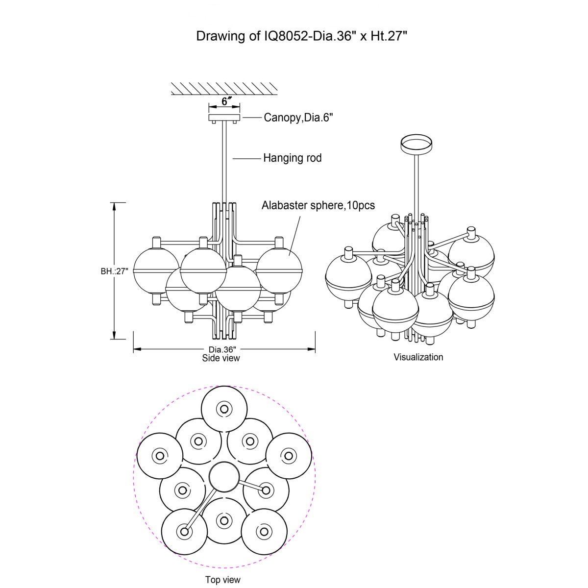 | 36" Diameter x 27" Height (10 Globes) (as shown) | $5,928.00 |