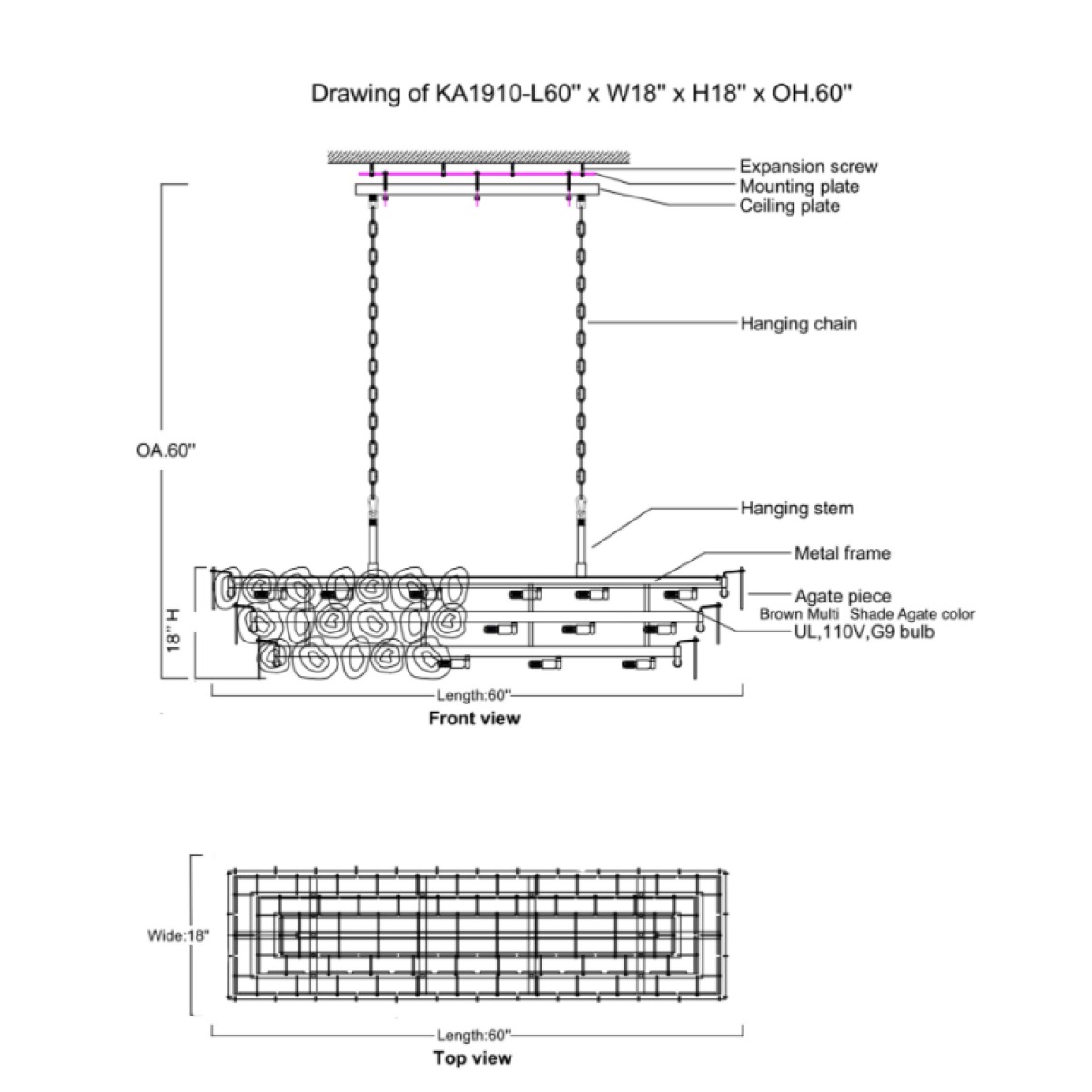 KA1980 AGATE SLICED RECTANGULAR CHANDELIER DESCRIPTION: This is a luxurious agate chandelier. ..