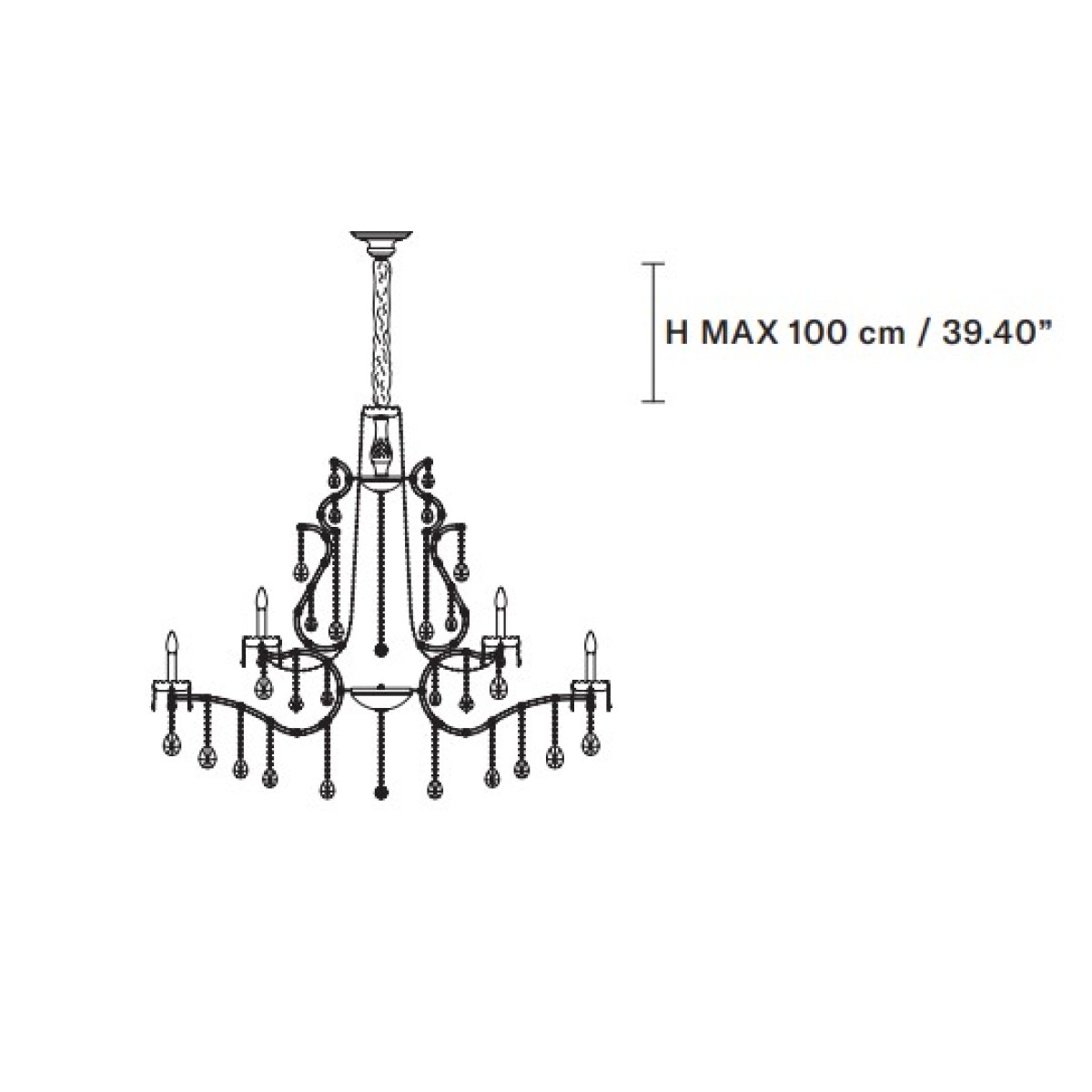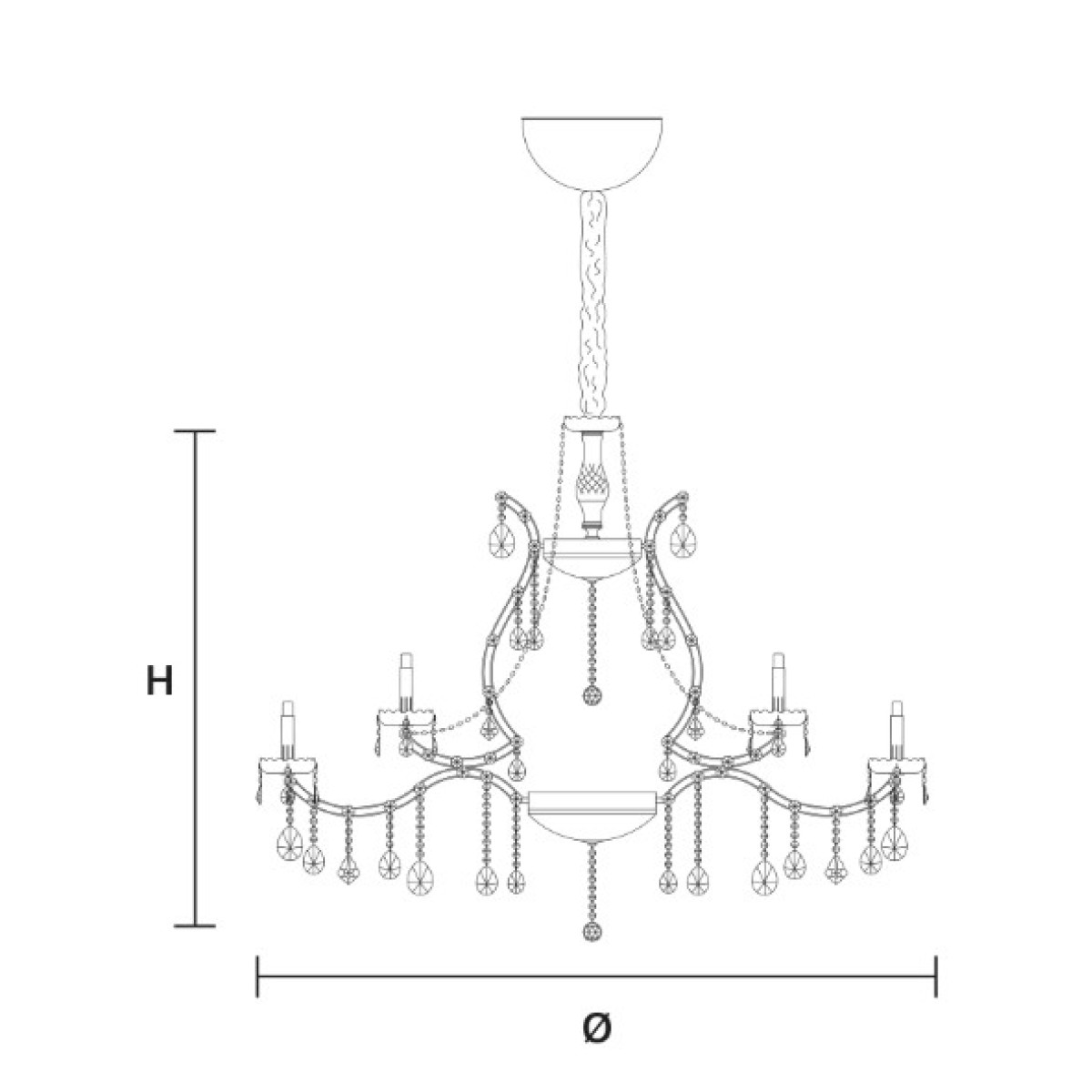Galvanised metal frame with arms covered in clear glass. Clear glass or clear crystal pendants. Traditional or integrated LED lighting.