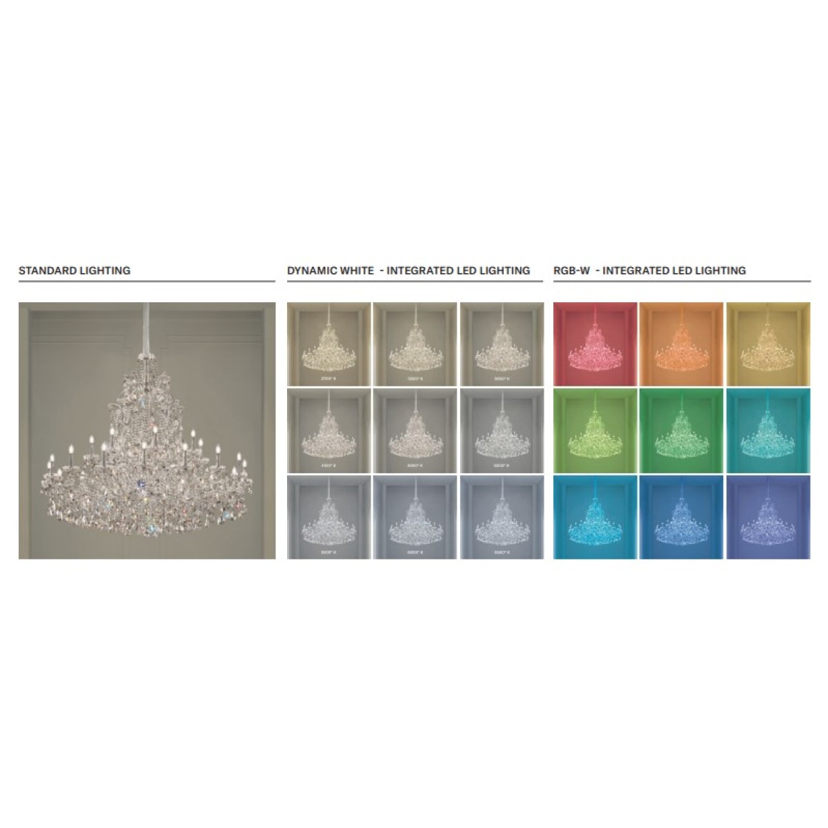 Bulbs: Traditional: 56XE14X10W Max, LED RGB-W: 56XLED Source 476W TOT, LED DW: 56XLED Source 453, 6W TOT (included)