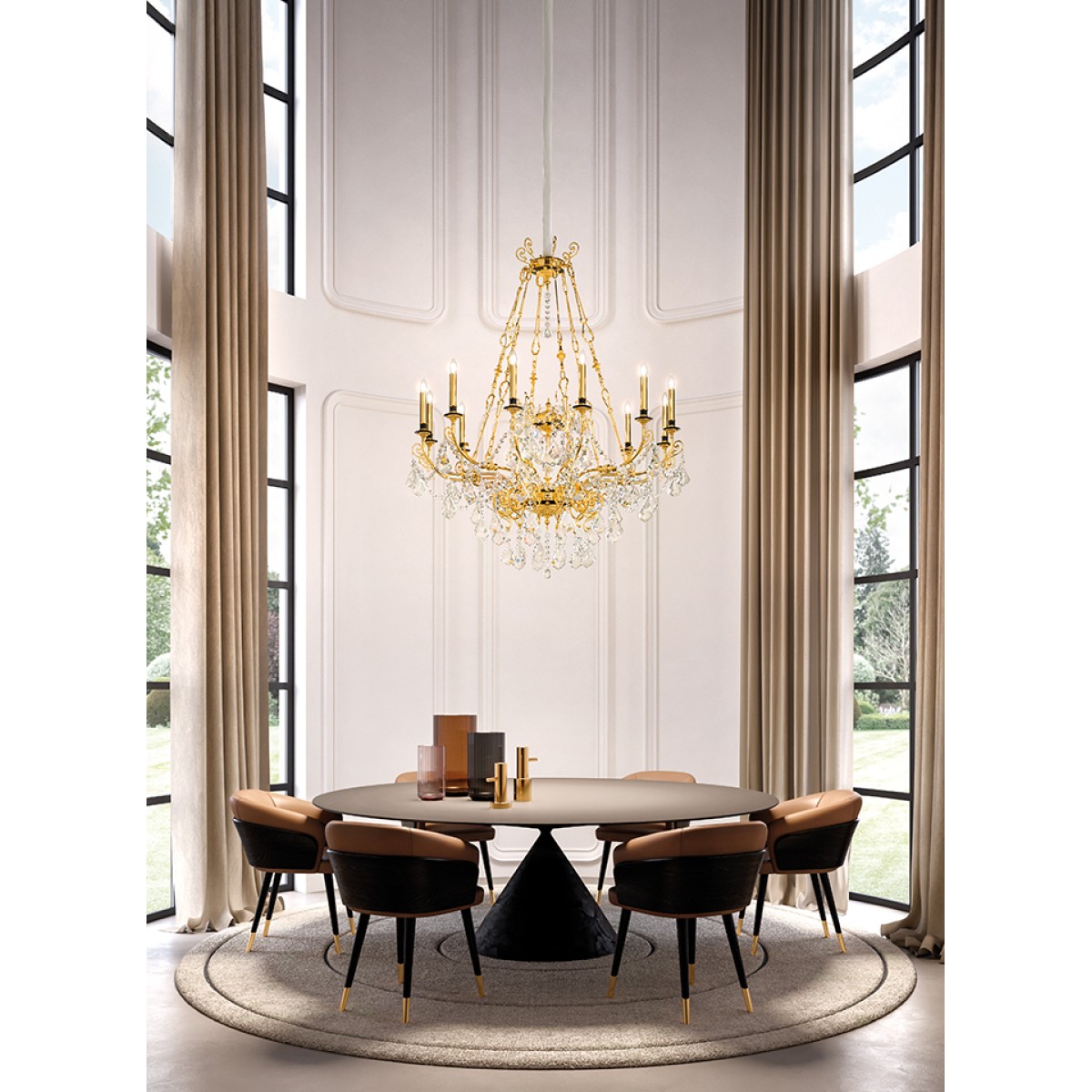 Materials: Metal, Cast Brass, Glass, Crystal