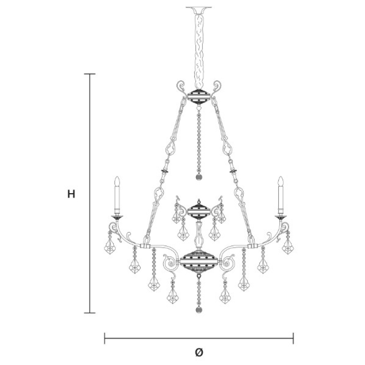 Metal and cast brass frame. Clear glass or clear crystal pendants. Traditional lighting.