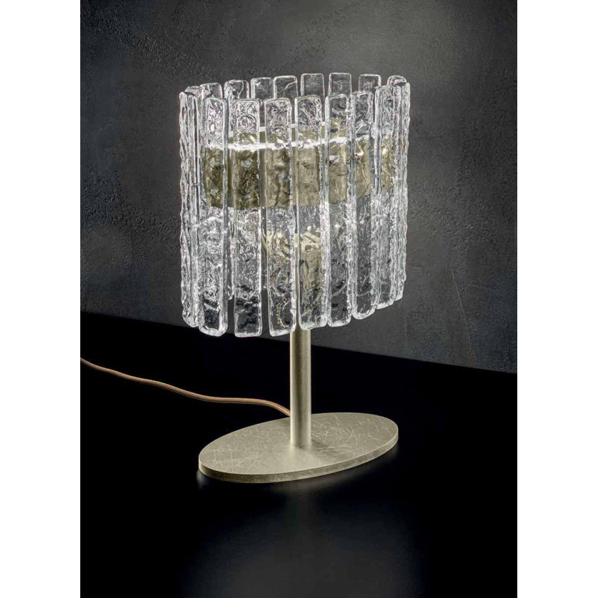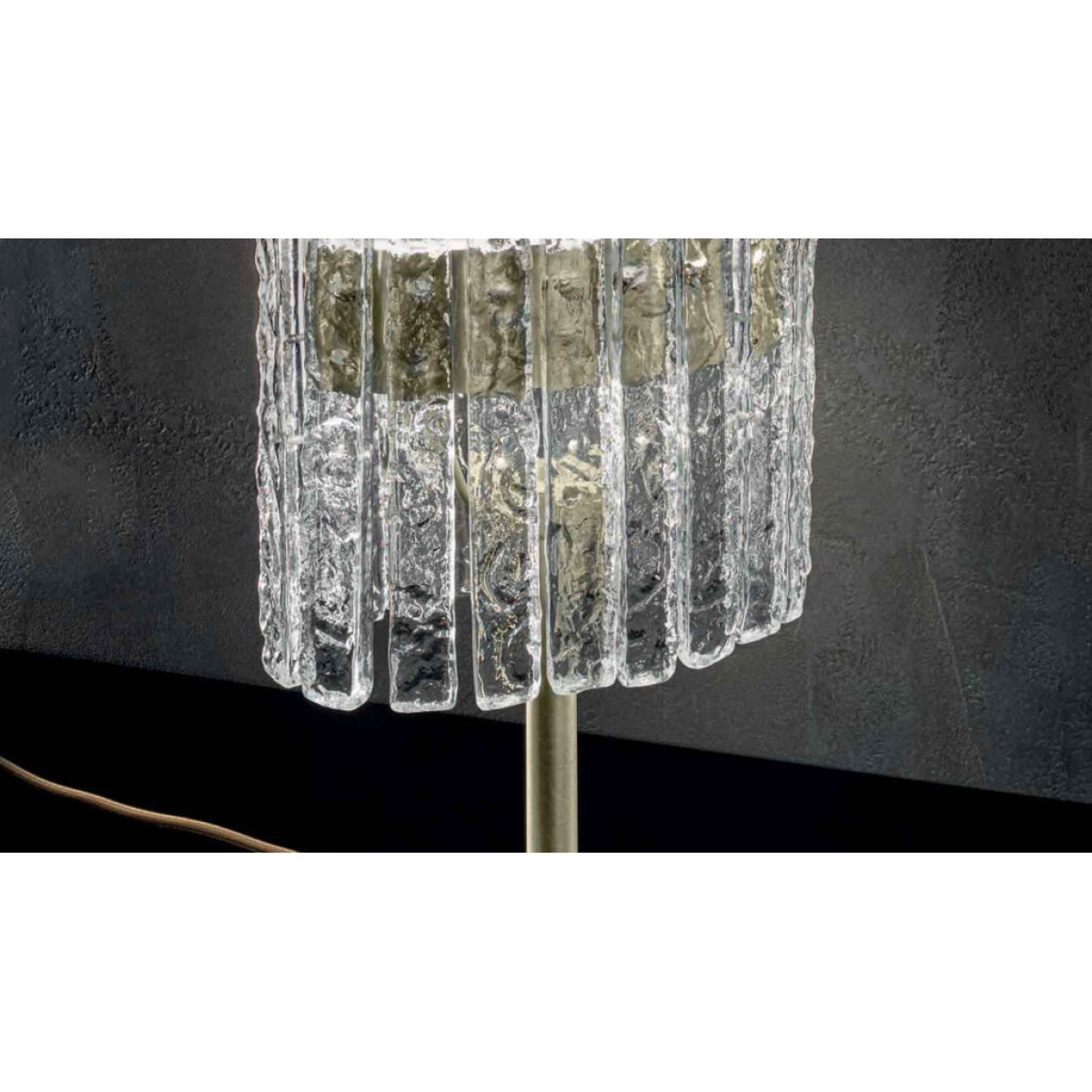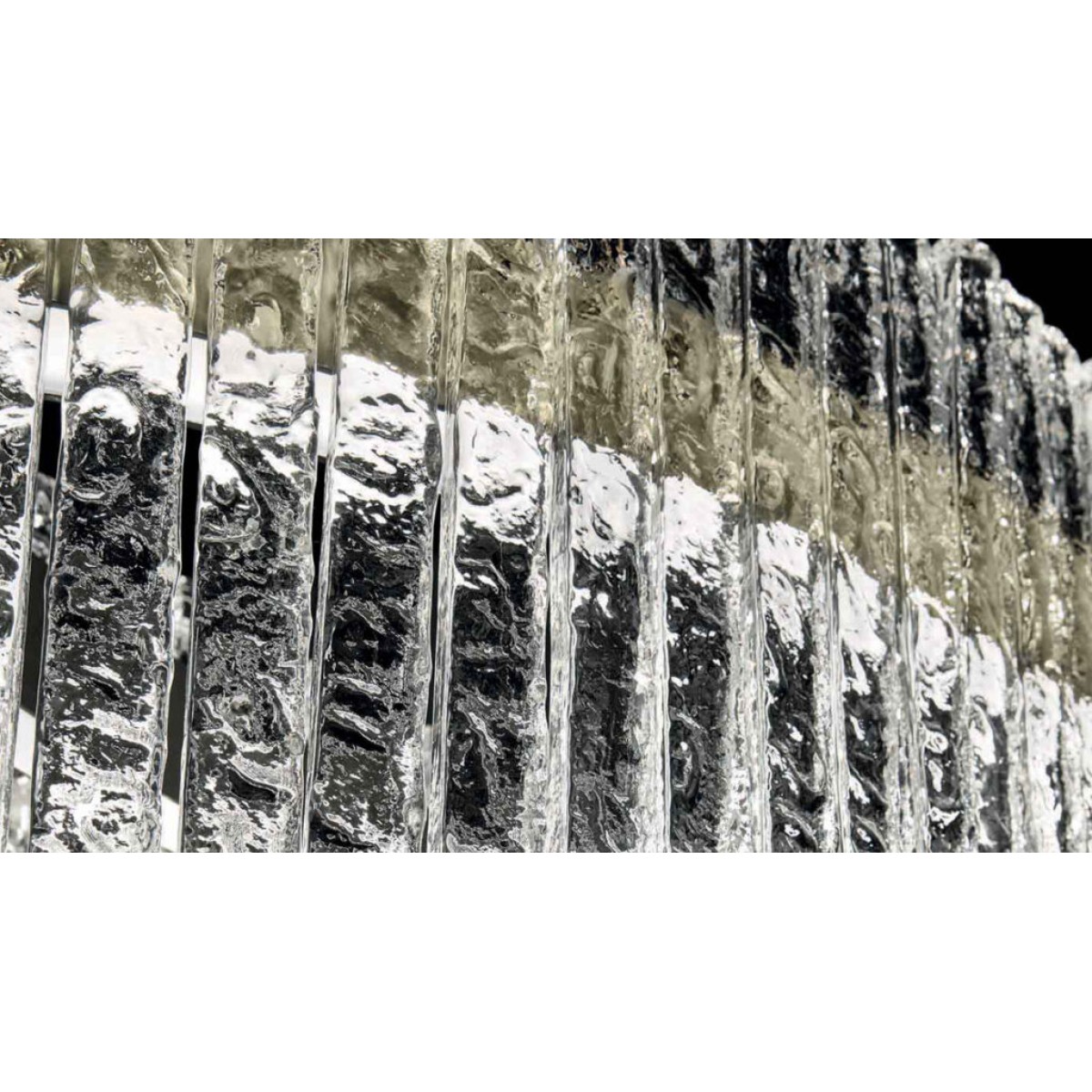 Metal frame with diffuser in strips of rock looking glass. LED lighting.