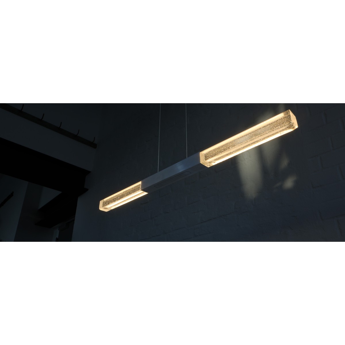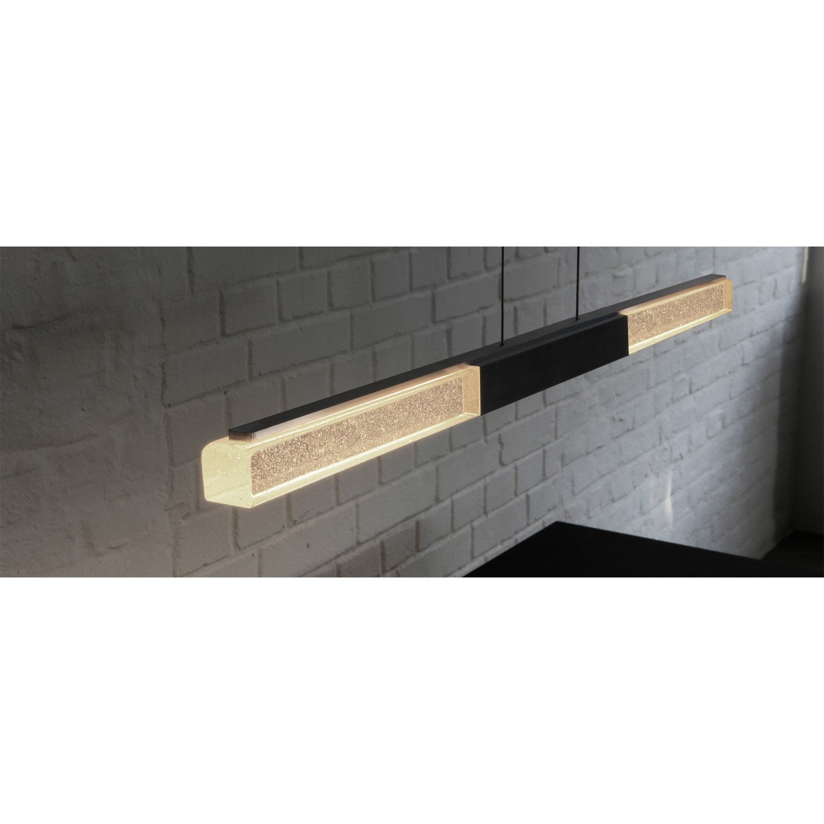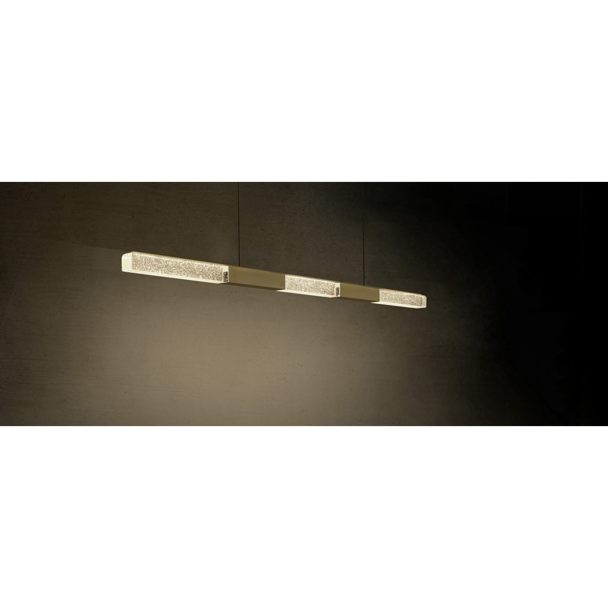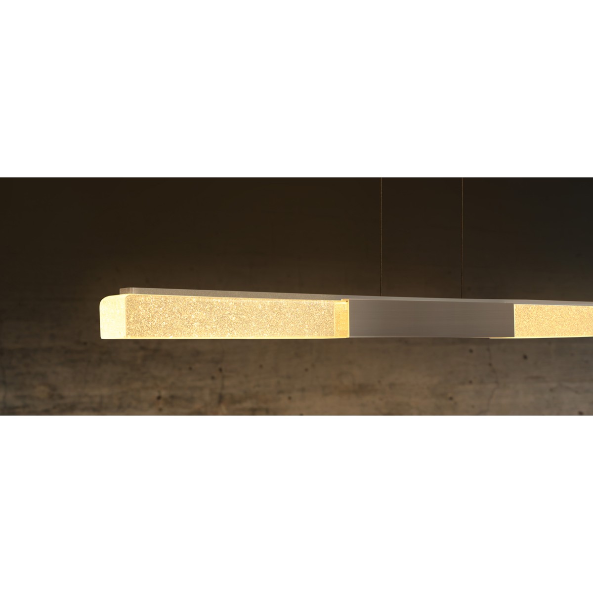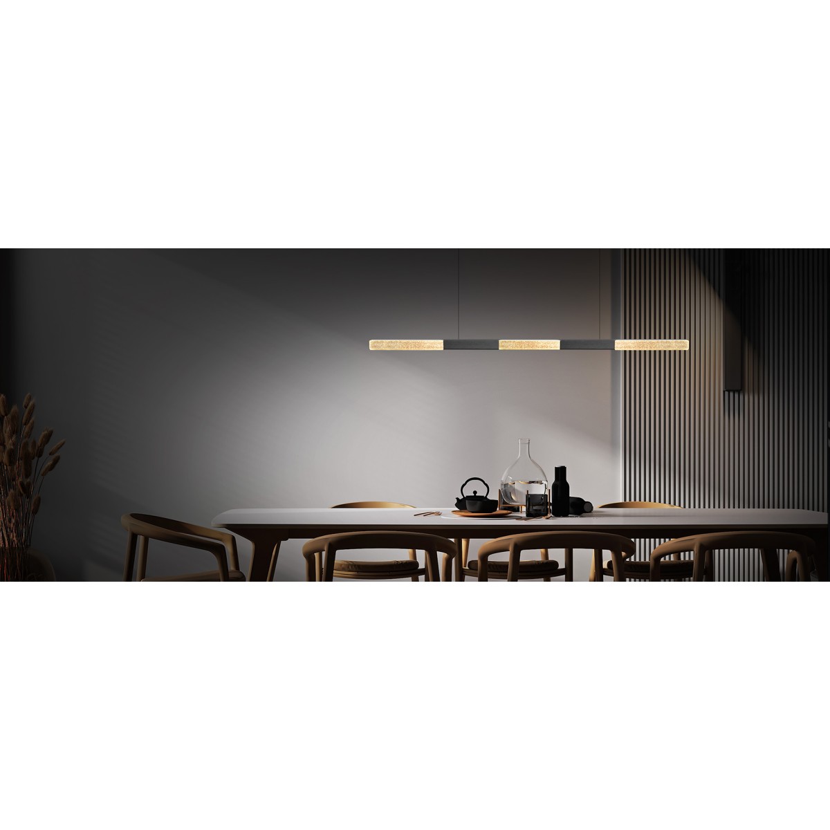 The design of the ALIGNE is pure, elegant and simple. The interplay between elegant surfaces, sophisticated technology and the MASSIFCENTRAL mineral glass make the ALIGNE a modern classic. This horizontal light is available in two lengths: 850 and 1,200 mm (for table lengths approx. +120, +240 cm). The ALIGNE pendant light is equipped with warm white COB LED strips, which illuminate the table from above through the glass in a homogeneous and glare-free manner.