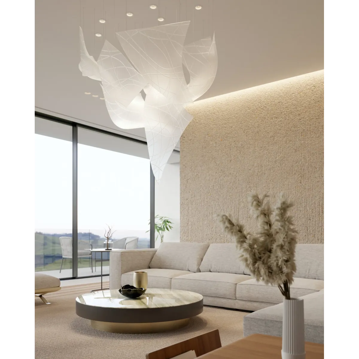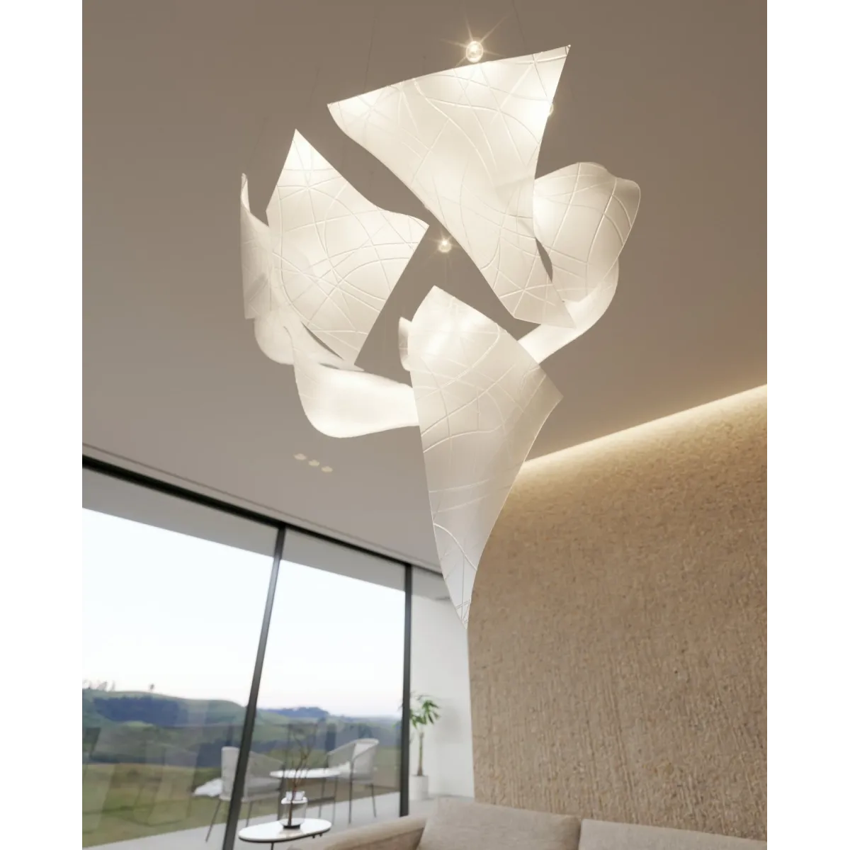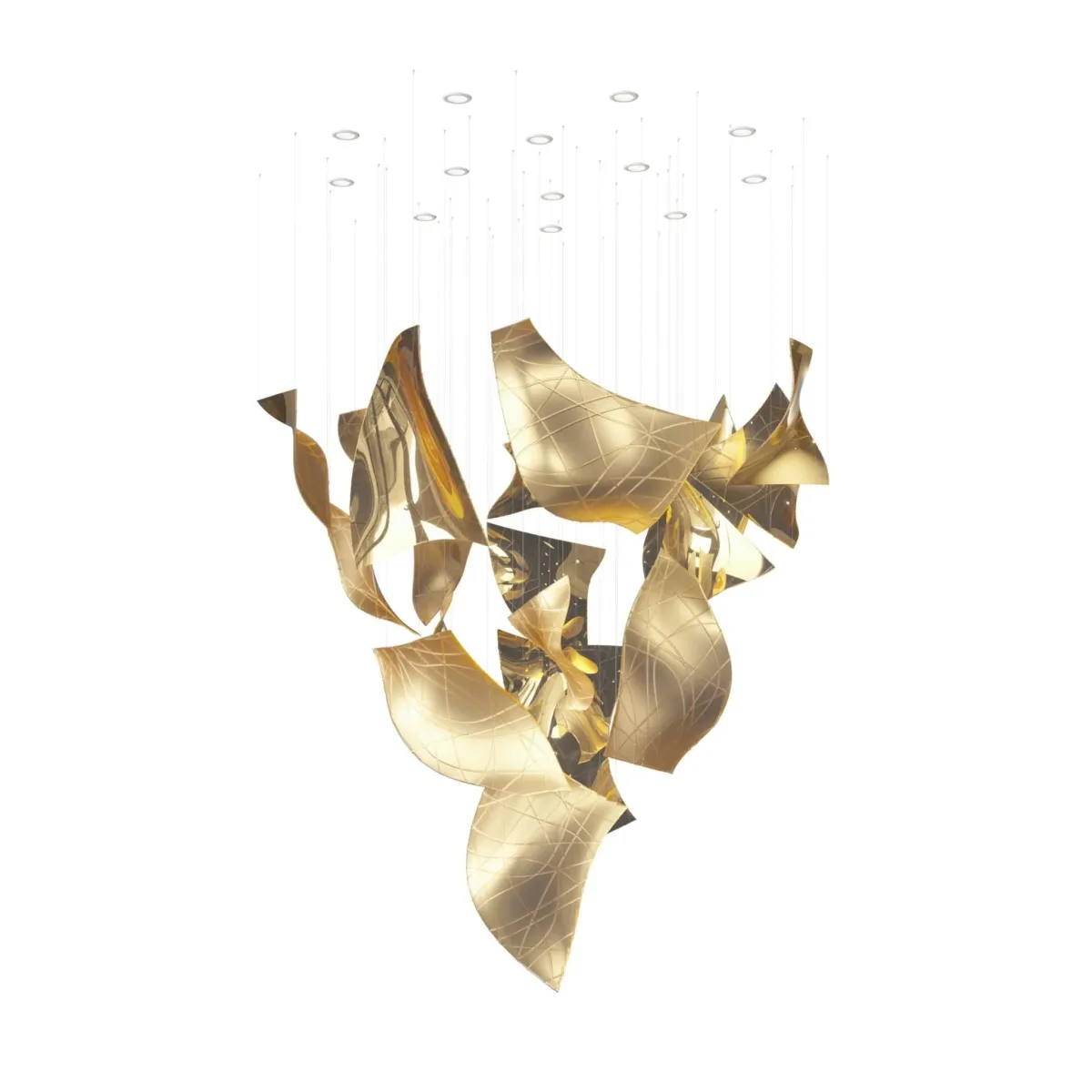 Indulge in the ever-changing beauty of the Thawflux Chandelier from the Thawflux collection. Each unique crystal fragment, in clear, sandblasted or nanocoated finish, captures the allure of transformation. Create mesmerizing formations with both horizontal and vertical positioning. Experience elegance and fascination in one exquisite design.