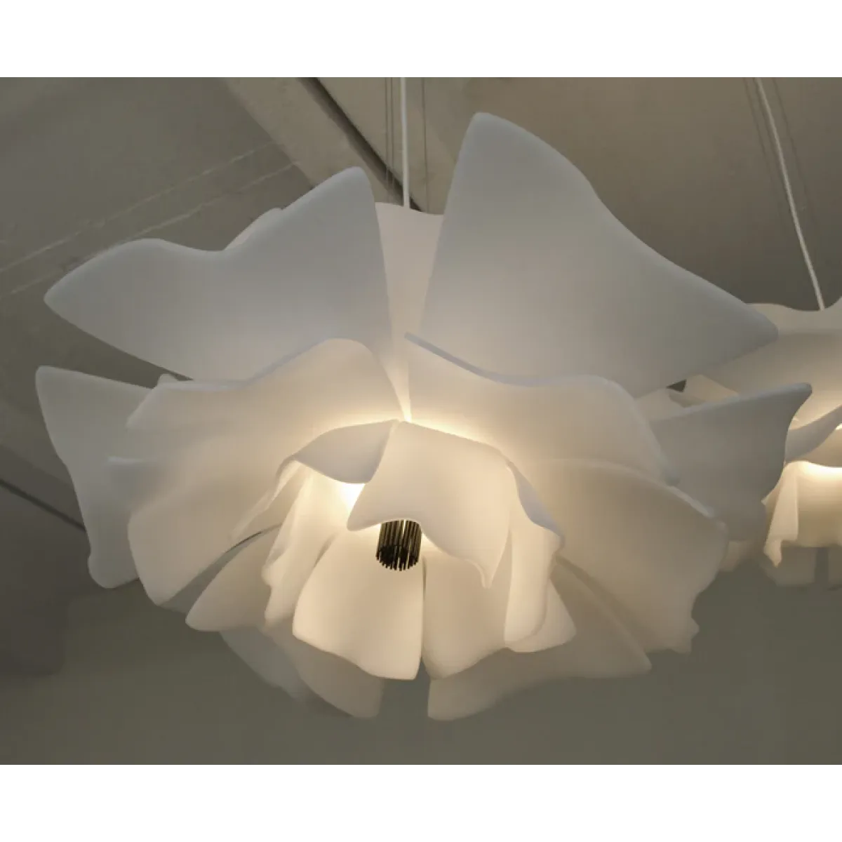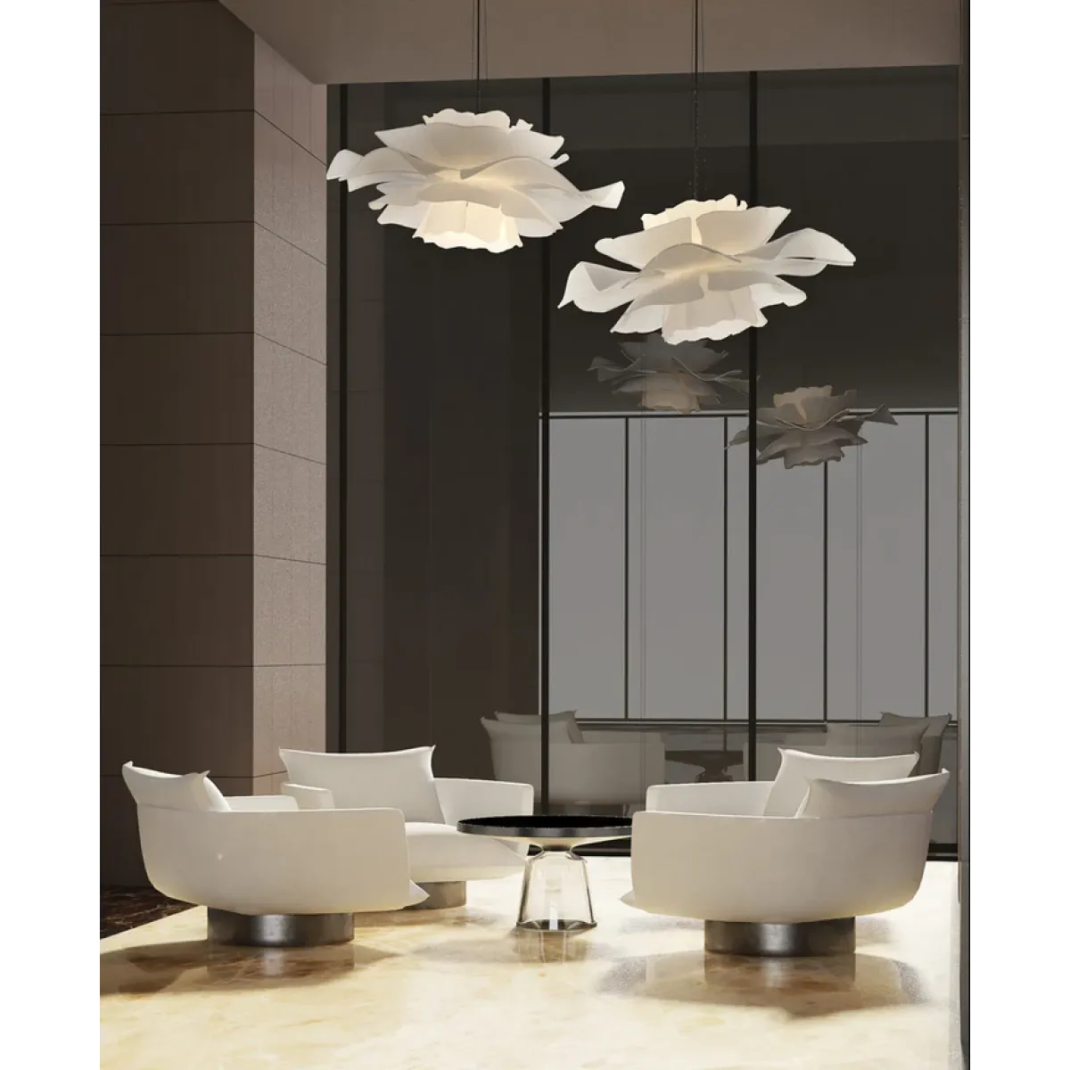 Drawing from childhood memories of picking petals off a daisy, in French called ‘effeuiller la marguerite', artist Pascale Girardin and Brooklyn design studio Juniper present Love Me Not, a light-filled pendant. The organic shape is crafted from five layers of hand-formed, porcelain finish acrylic, so no two fixtures are identical. Suspended individually or in a cluster, Love Me Not delivers a magical display of art and light.