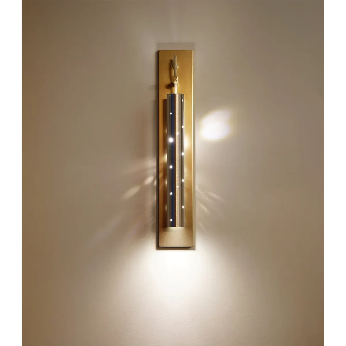 Rain Wall Light is like a single drop of rain suspended off a machined wall plate, rectangular or round, that captures and reflects the sparkling brilliance of the whimsical flute. Designed to be a lustrous feature light that is ideal for bedside, hallways, living spaces and wherever you want to create visual impact. Rain Wall Light is a multi-sensory experience of sight and sound that invites touch and interaction.