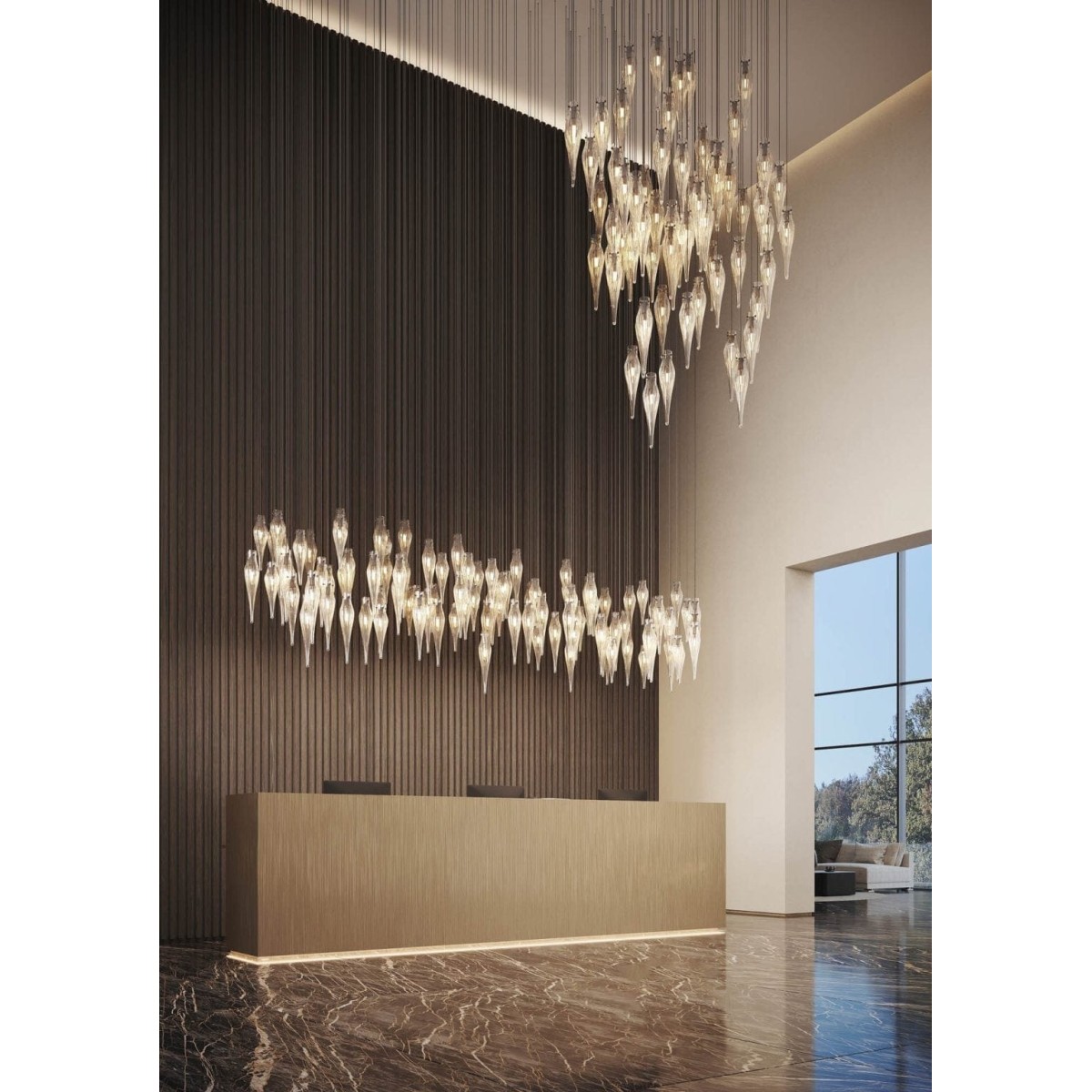 The hollow Icicles, available in 35 and 50 cm height, can be used to create any formation you wish for. An installation of magnificence for a grand lobby or a subtle composition over a table? All possibilities are within reach with the Primavera Icicles.