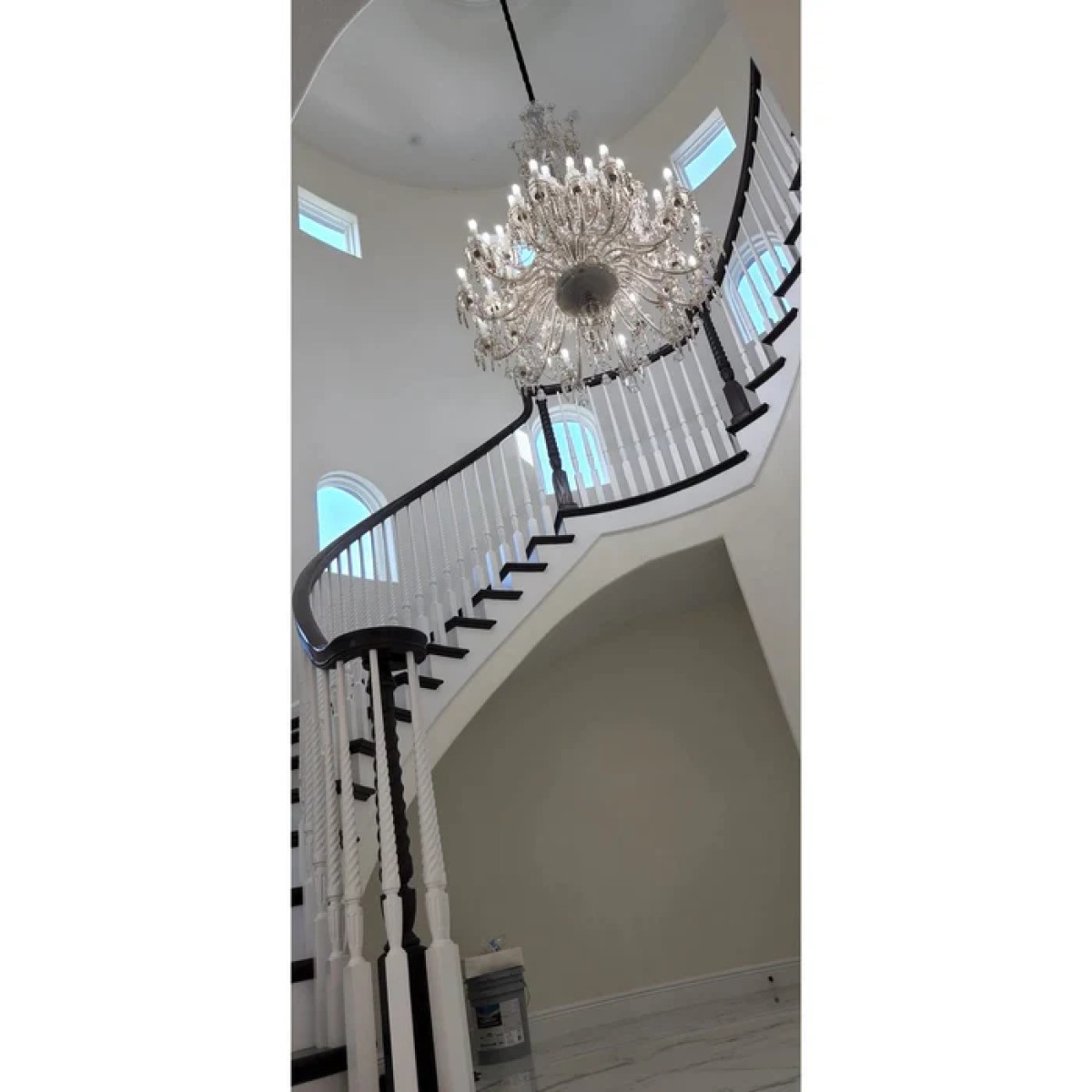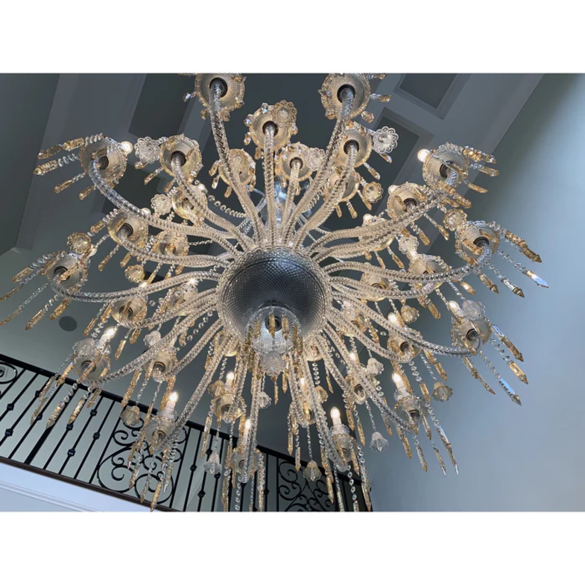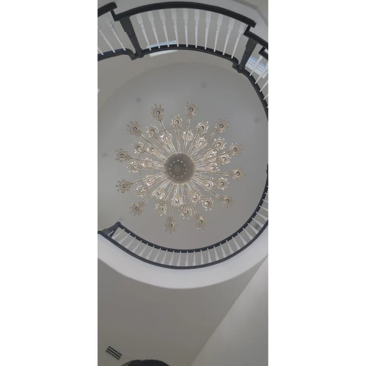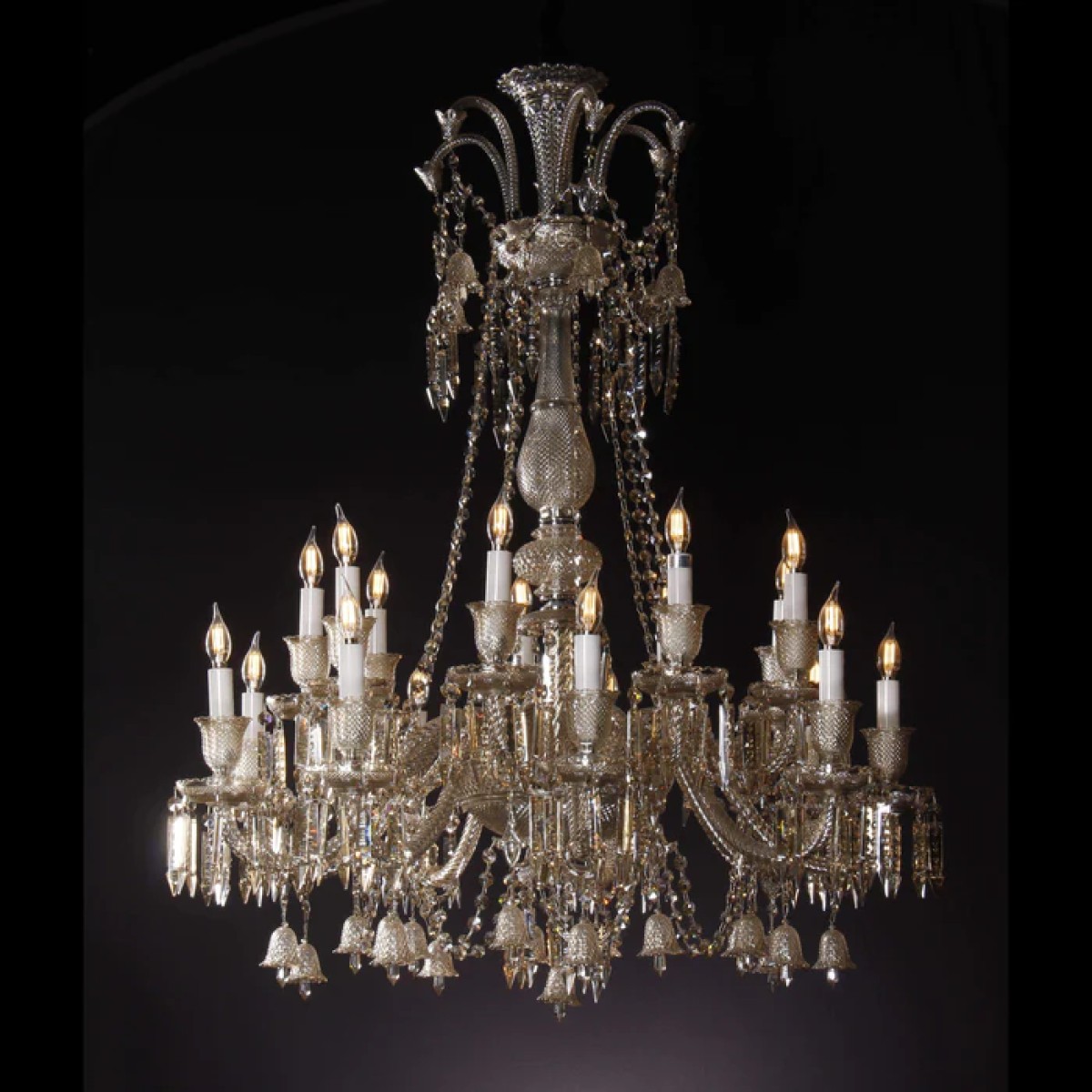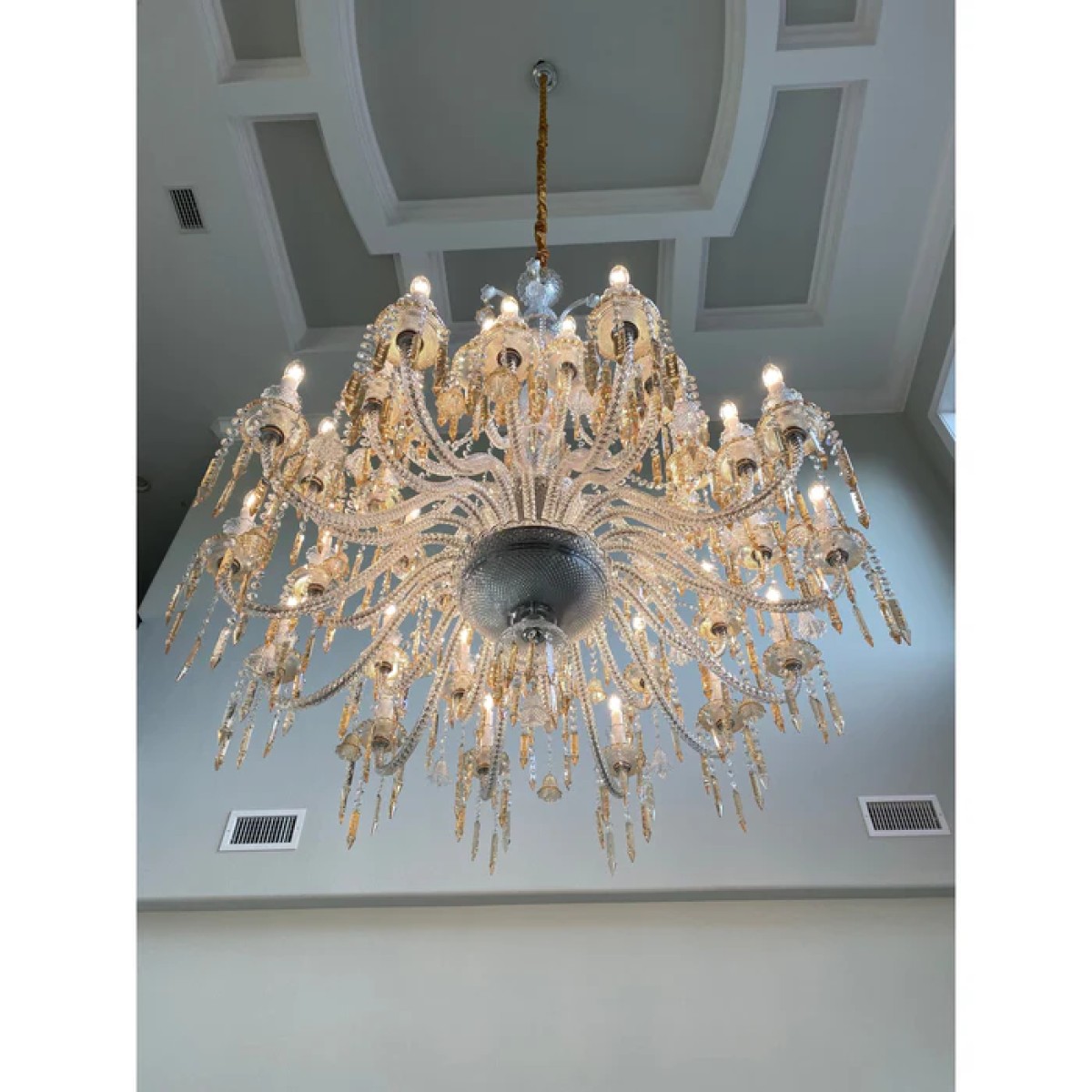 The 36 Light Antoinette Crystal Chandelier is a magnificent statement piece that exudes timeless elegance and royal charm. Crafted with brilliant clear crystals, it features gracefully curved crystal arms adorned with cascading crystal prisms that shimmer beautifully from every angle. The multi-tiered silhouette, accented with crystal chains and detailed bobeches, creates a grand and luxurious presence ideal for banquet halls, ballrooms, and double-height living spaces.