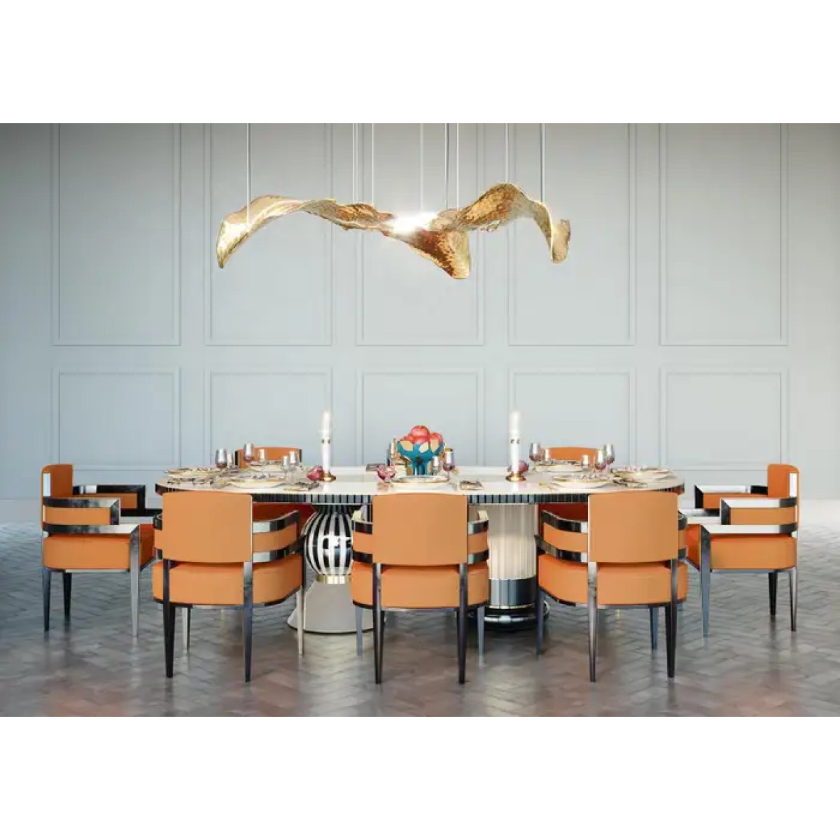 Leafus suspension lamp unveils a subtle breeze of fresh and modern design. This luxury suspension lamp is full of sophistication with an organic and elegant shape. Nature-inspired, this design lamp is perfect for enhancing any contemporary living area.