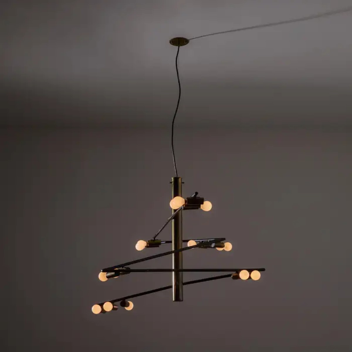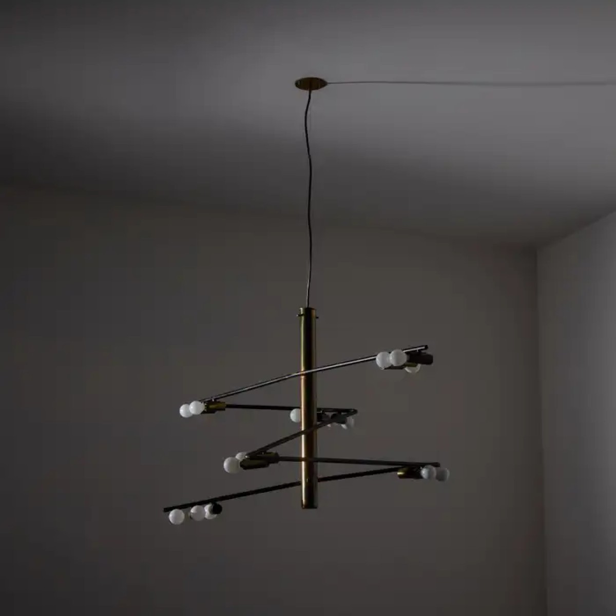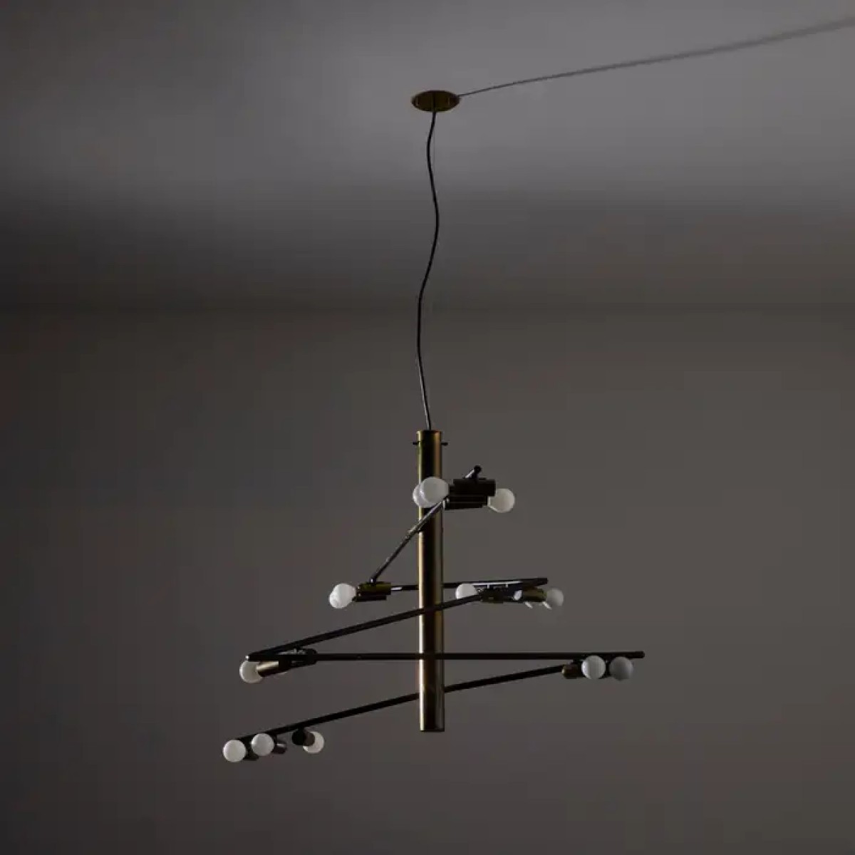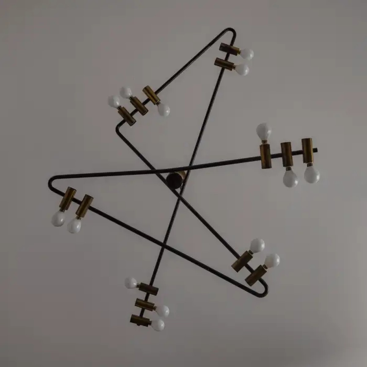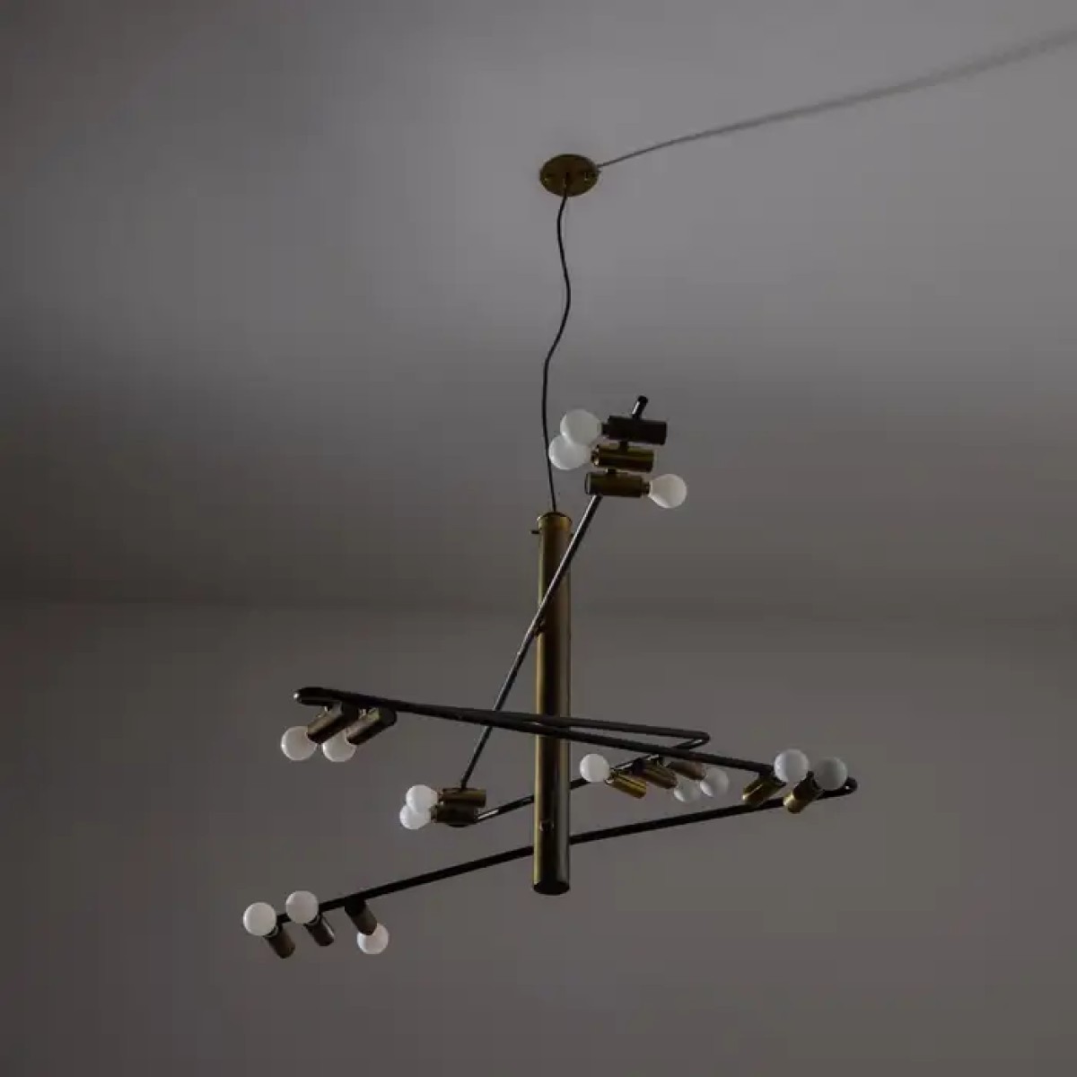Tags: ps1748, rare, chandelier, stilnovo, giampiero, aloi, aged, polished, brass, black, enamel, lamp, chandelier, brass, LED, lamp, custom, made, light, lighting, interior, design, designer, pendant, ceiling, modern,