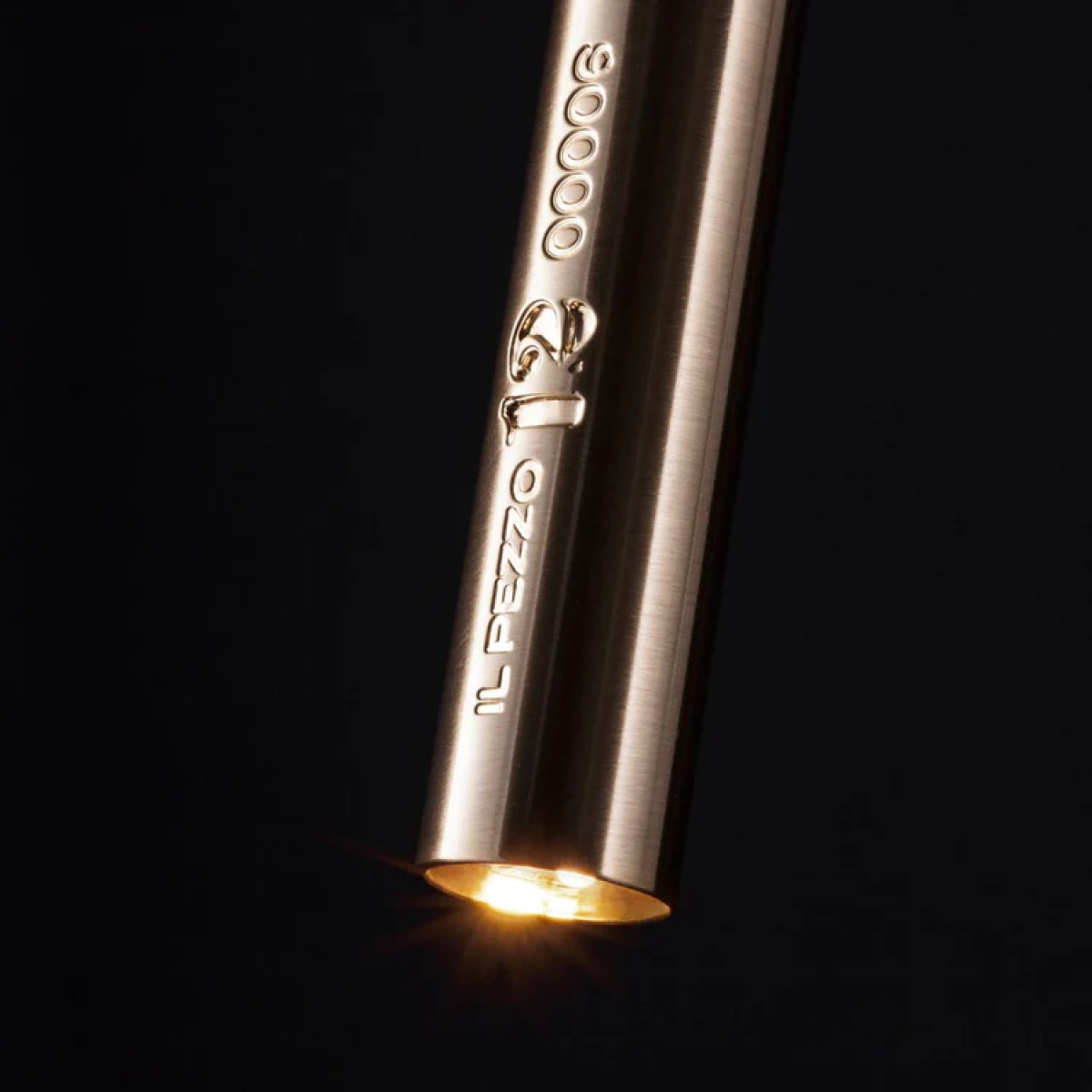 Refined and seductive, Il Pezzo 12 Staggered Chandelier evokes the image of female figures carrying light within. Tapered brass stems house precious crystal diffusers with integrated LED sources, while an additional LED at the tip provides direct illumination. The design is completed by the "Missing Piece" ("Pezzo Mancante") a brass cylinder engraved with a unique serial number for authenticity. Custom sizes and finishes are available.