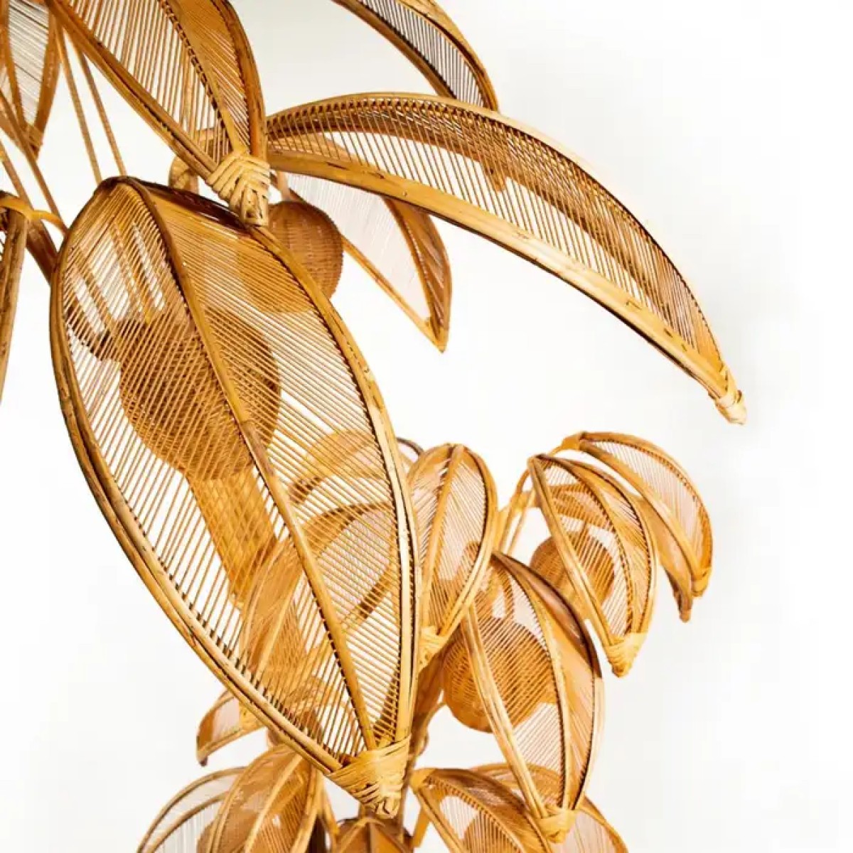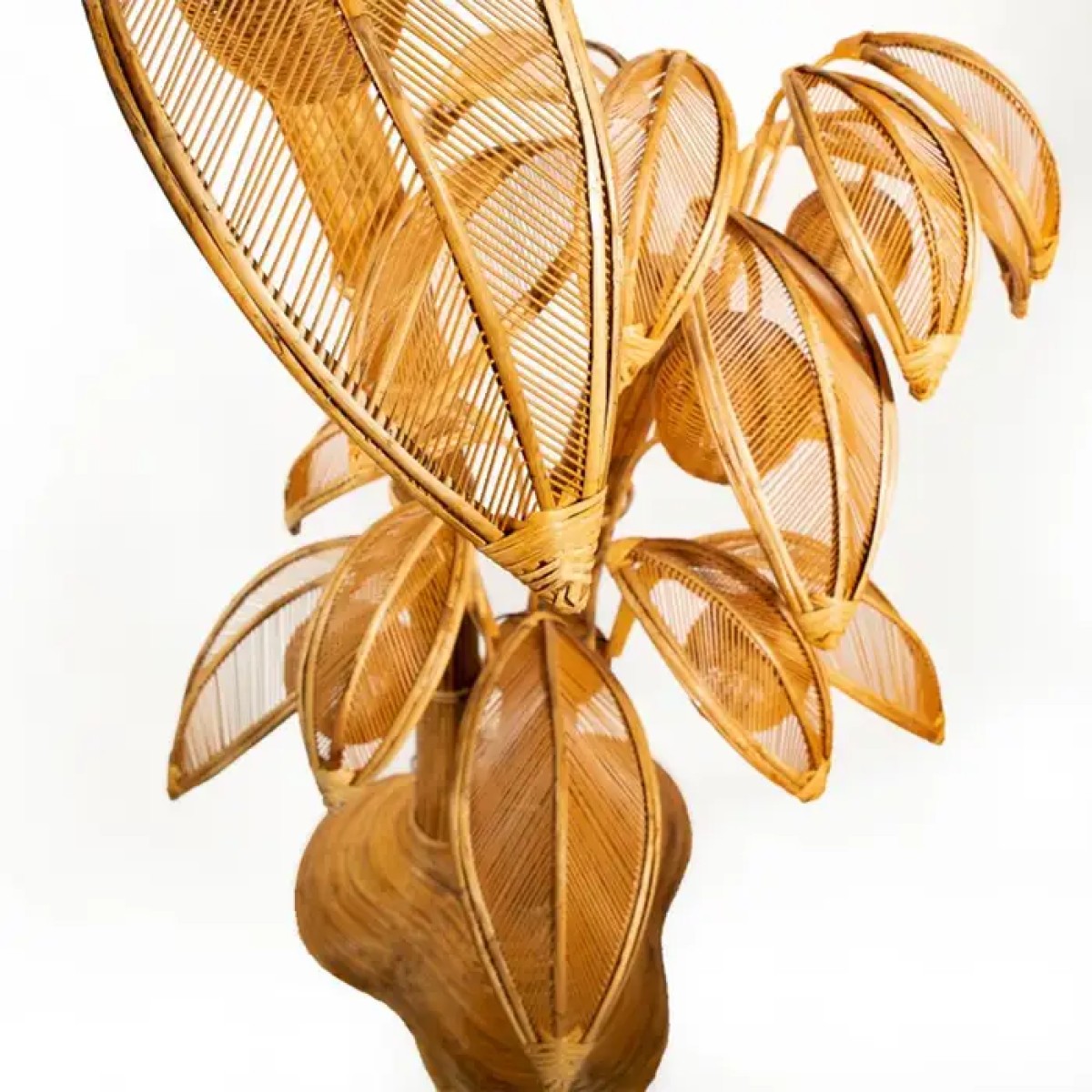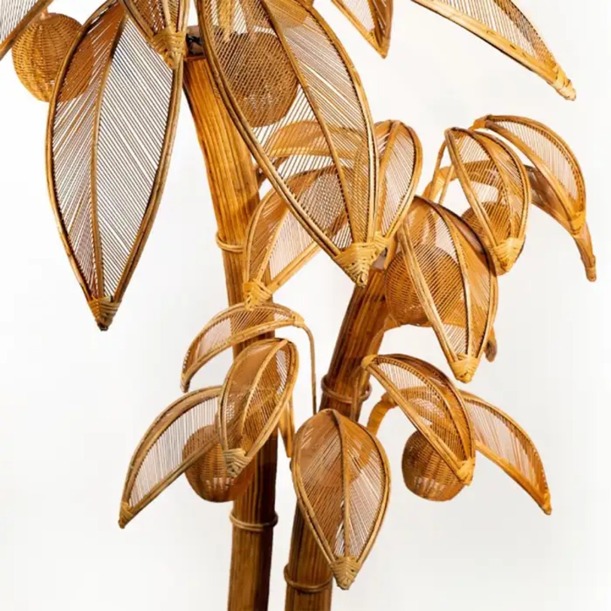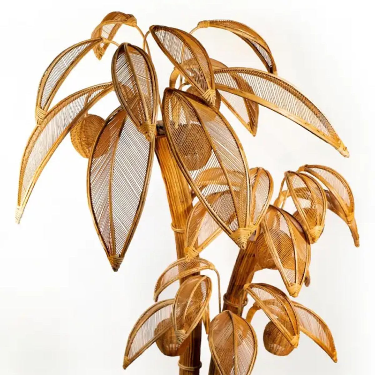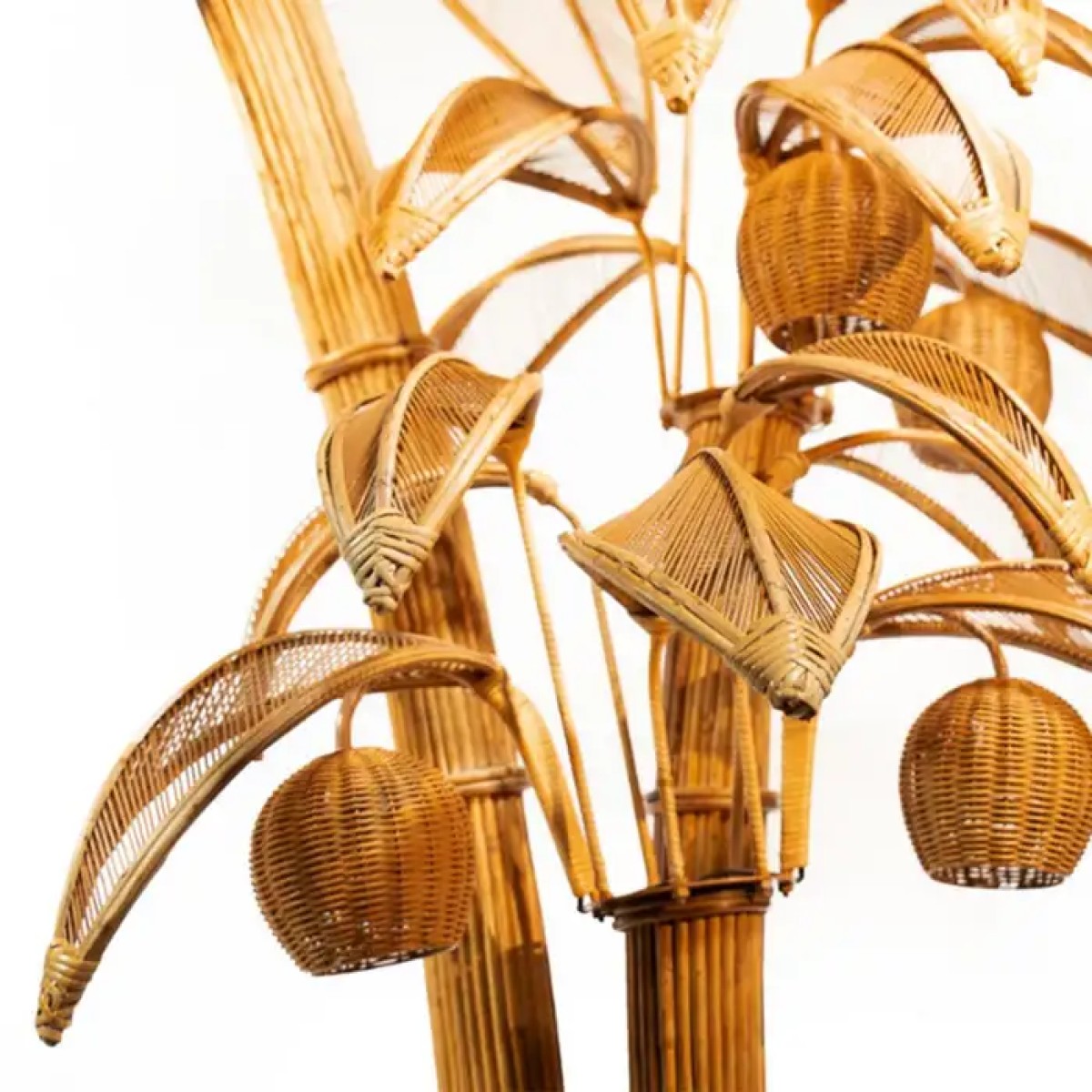 Floor Lamp Rattan Coconut with all structure in hand-crafted rattan, with 7 lamp shades, 7 bulbs, lamp holder type E14, max 40 watt, bulb not included.