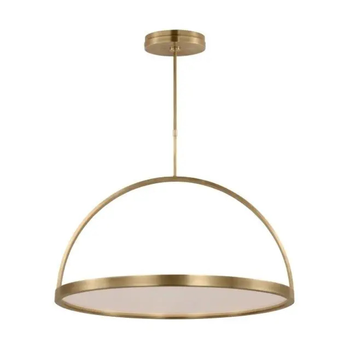 The Cerne Large Chandelier by Kelly Wearstler for Visual Comfort Modern Collection is a minimalistic disc of framed light inspired by pure circular geometries. Similar to fluorescent panel lighting of the past brought into the current using warm LED and Light Guide technologies.