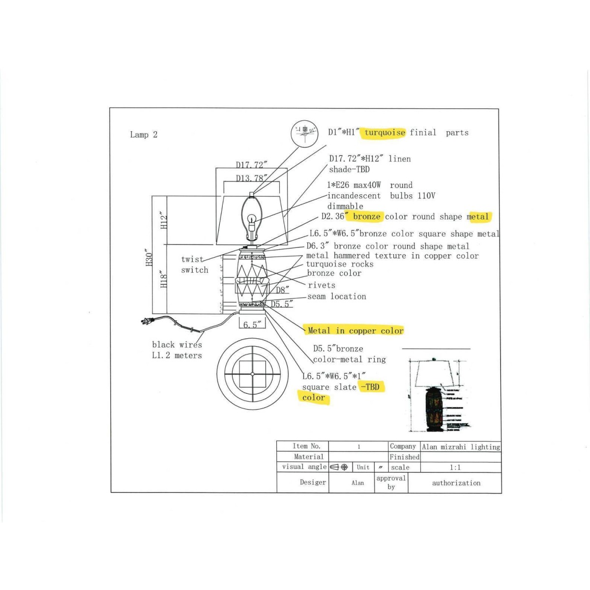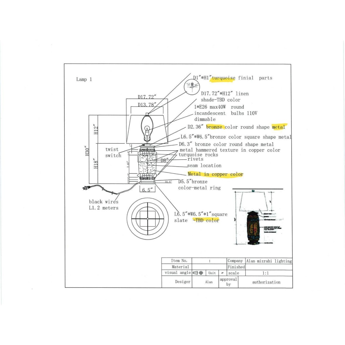 TL1111 ALHAMBRA TABLE LAMP
