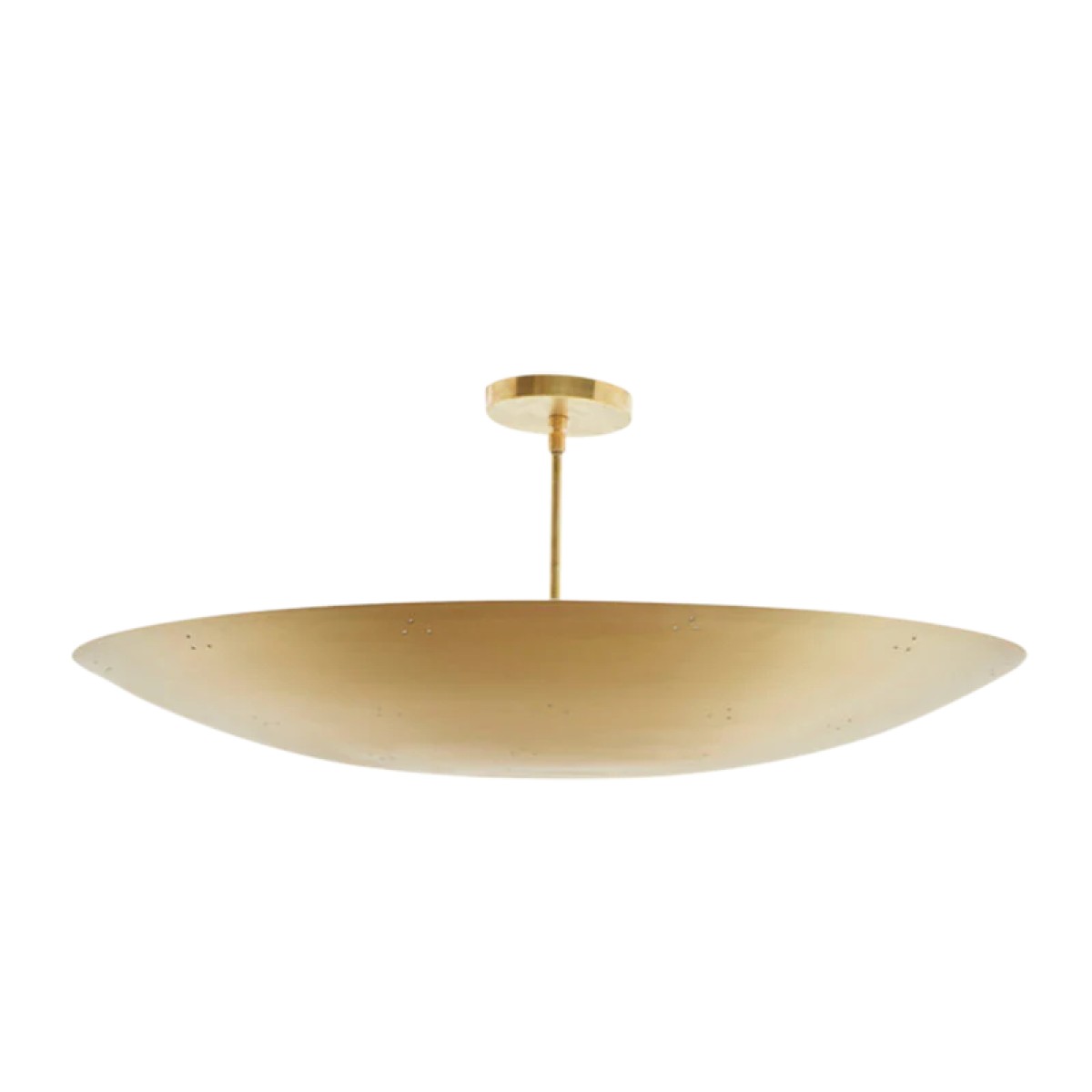 The Alta Brass Dome features a spun metal shade with a brass canopy and rod. The shade is available in brass or powdercoated metal finishes. Available with perforations for an added upcharge.
