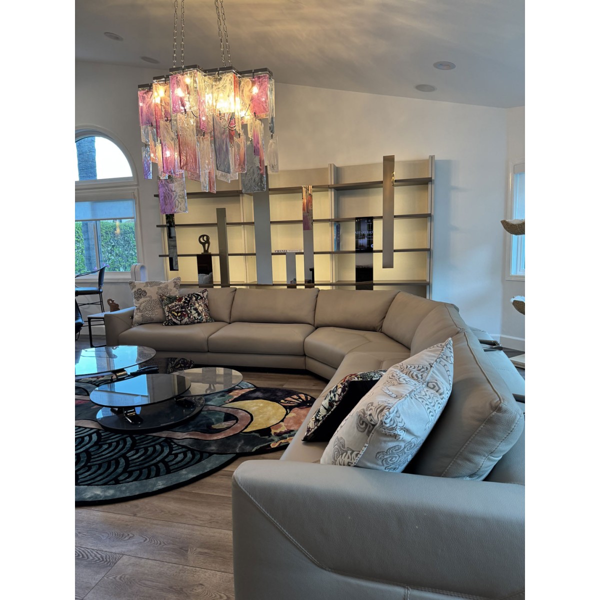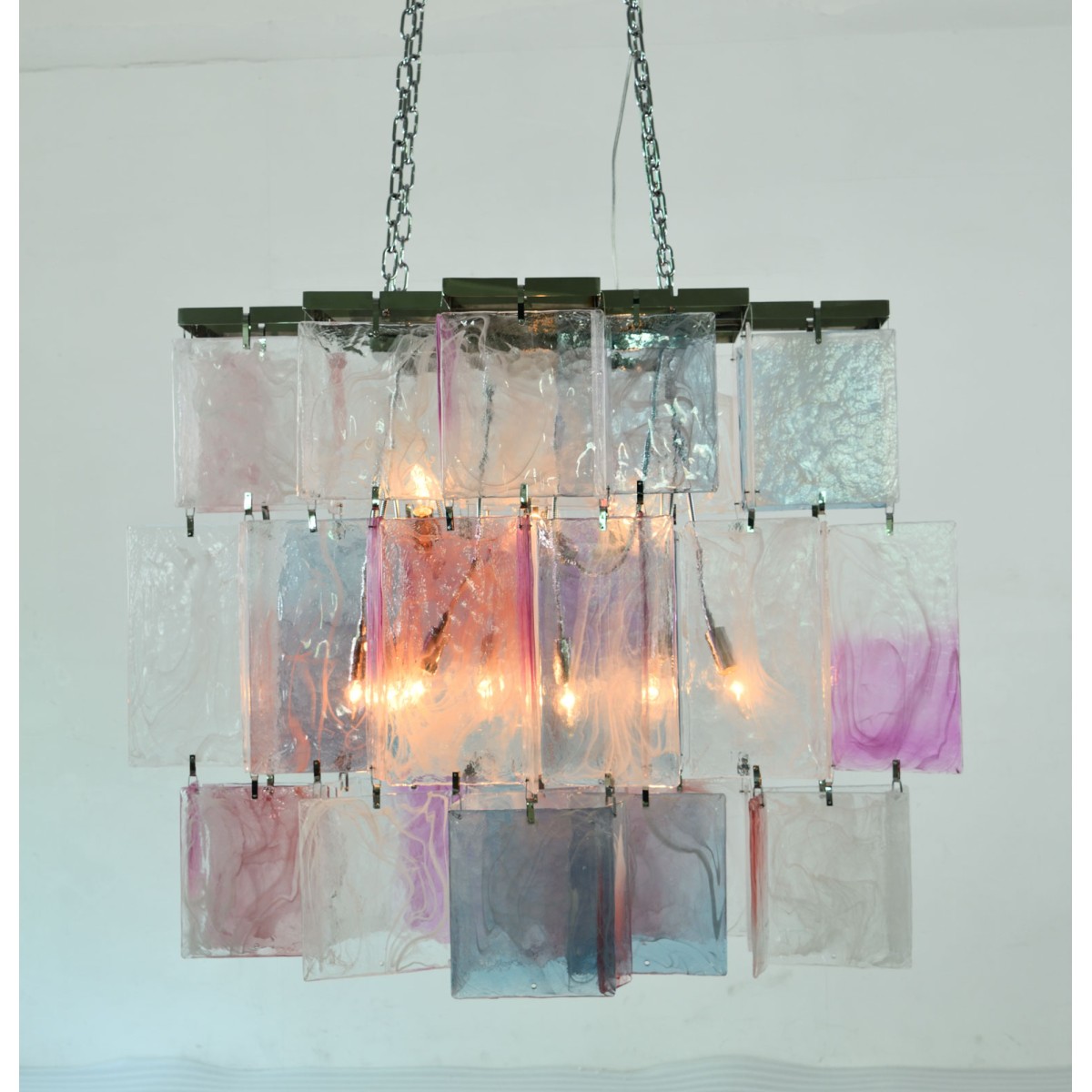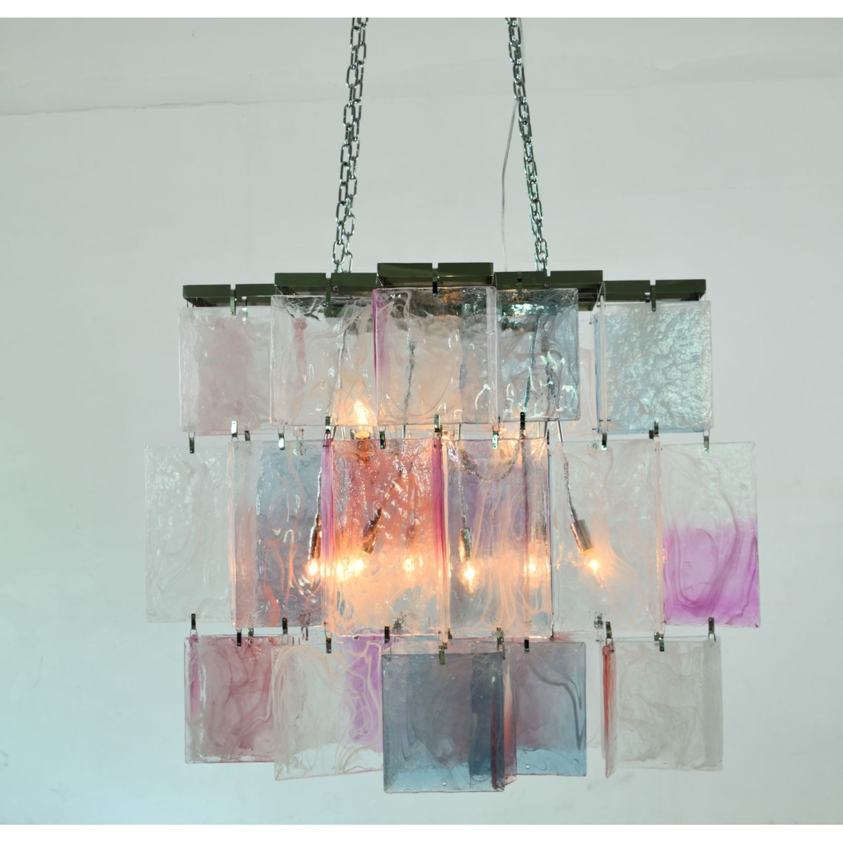 Originally commissioned in the 1980s for a Parisian restaurant, the Amethyst Chandelier is a striking example of timeless elegance and artisanal mastery. Hand-blown in Murano, Italy, this one-of-a-kind piece features three dramatic tiers of rectangular amethyst crystals, each meticulously crafted to radiate depth and sophistication. Designed to make a powerful statement, the chandelier is ideally suited for grand dining spaces or rooms that demand a centerpiece of exceptional presence. The rediscovery of Murano glass as a conduit of magical light has inspired a new era of design—where tradition meets innovation and every piece becomes a work of art. The precious and organic nature of Murano glass infuses this chandelier with an aura of mystery and uniqueness. Its rich color, transparency, and luminosity create a seductive play of light, transforming any setting into a glowing showcase of refined luxury.
