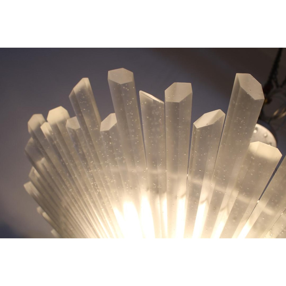 DIAMANTINA is a gem-like old hilltop village in Brazil famed for quartz crystal clusters considered since ancient times to have cosmic connections and psychic healing powers. Building on glass techniques over 2000 years old, and using the core element of natural quartz, the spires are worked by hand at over 2000 degrees. The raw crystal spires are then rough cut and hand polished to expose the inner core to light. As in the natural world, each piece is distinctly unique. All are lit with a state-of-the-art high efficacy dimmable LED, except for the inverted parasol, which contains a dozen incandescent, candelabra lights. The effect of all when lit is wonderful. At Alan Mizrahi Lighting Design, we supply and manufacture many highly sought after designer pieces. All Chandeliers can be customized by a number of lights, style, color, and sizes to meet your specific needs.