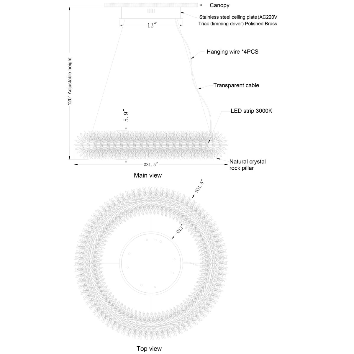 The ancient Greek gave to mortals what was re-served for the gods “fire”. Here, a simple yet elegant construction creates a timeless light – a ring of ‘flames’. With the gift of fire, Prometheus allowed humanity to develop… Simple yet elegant construction with warm white LED, natural uncut Brazilian rock quartz rock crystals points create a halo of texture and shadow. Greek philosophy’s quest was to distill all things to their essence, their most elemental. Whether in Euclid’s elements of geometry or Democritus’ first concept of the atom, Greek thought explored the possibilities of nature’s abstracted and universal essence. Naturally occurring quartz crystals appear to have grown by Mother Nature, and lit themselves from the inside, illustrating an exploration of pure natural expression.