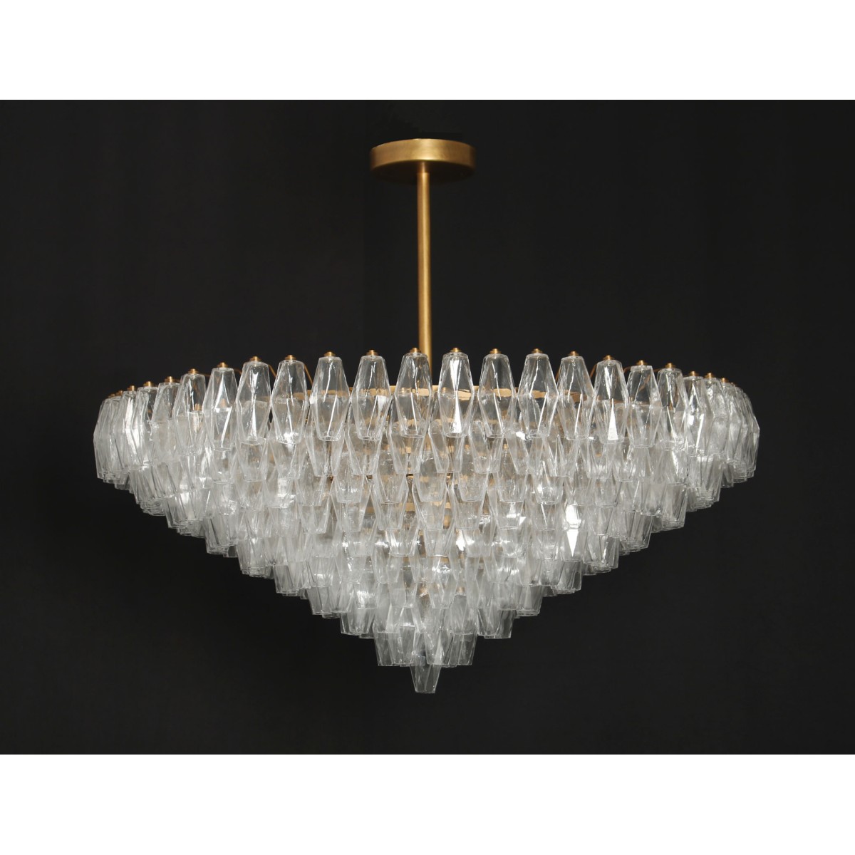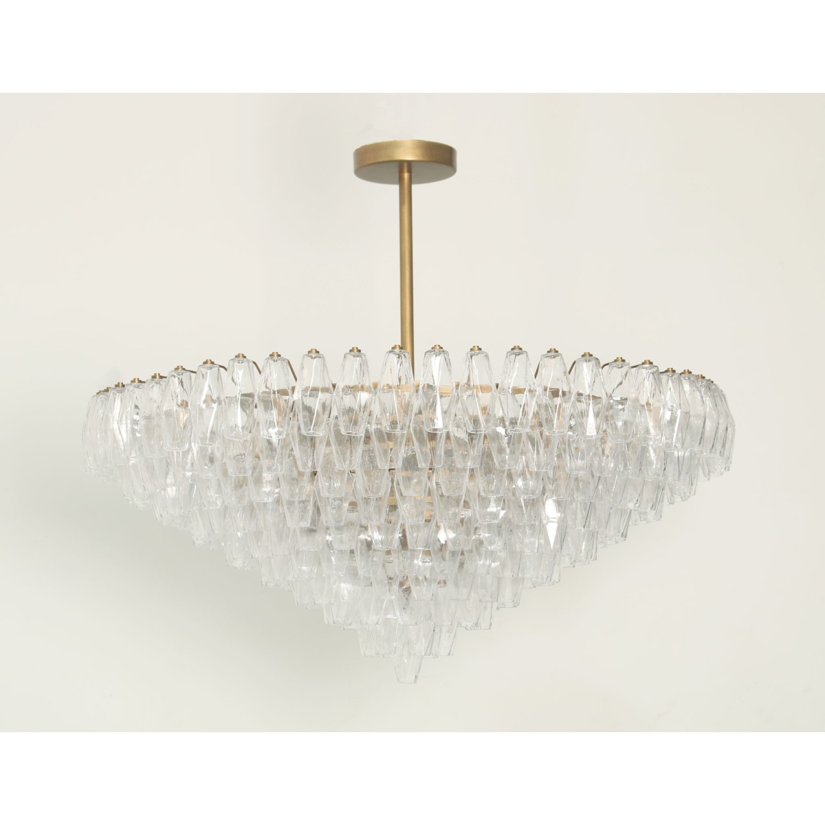 Inspired by 1950s Italian design, handmade in Italy. Glass colors: amethyst, crystal, smoked, amber, jade or any combination. Our Luca glass is produced and hand finished in small batches. Slight variations in color between batches can occur as an acceptable part of the manufacturing process. Steel frame finished in white or brass lacquer, or chrome.
