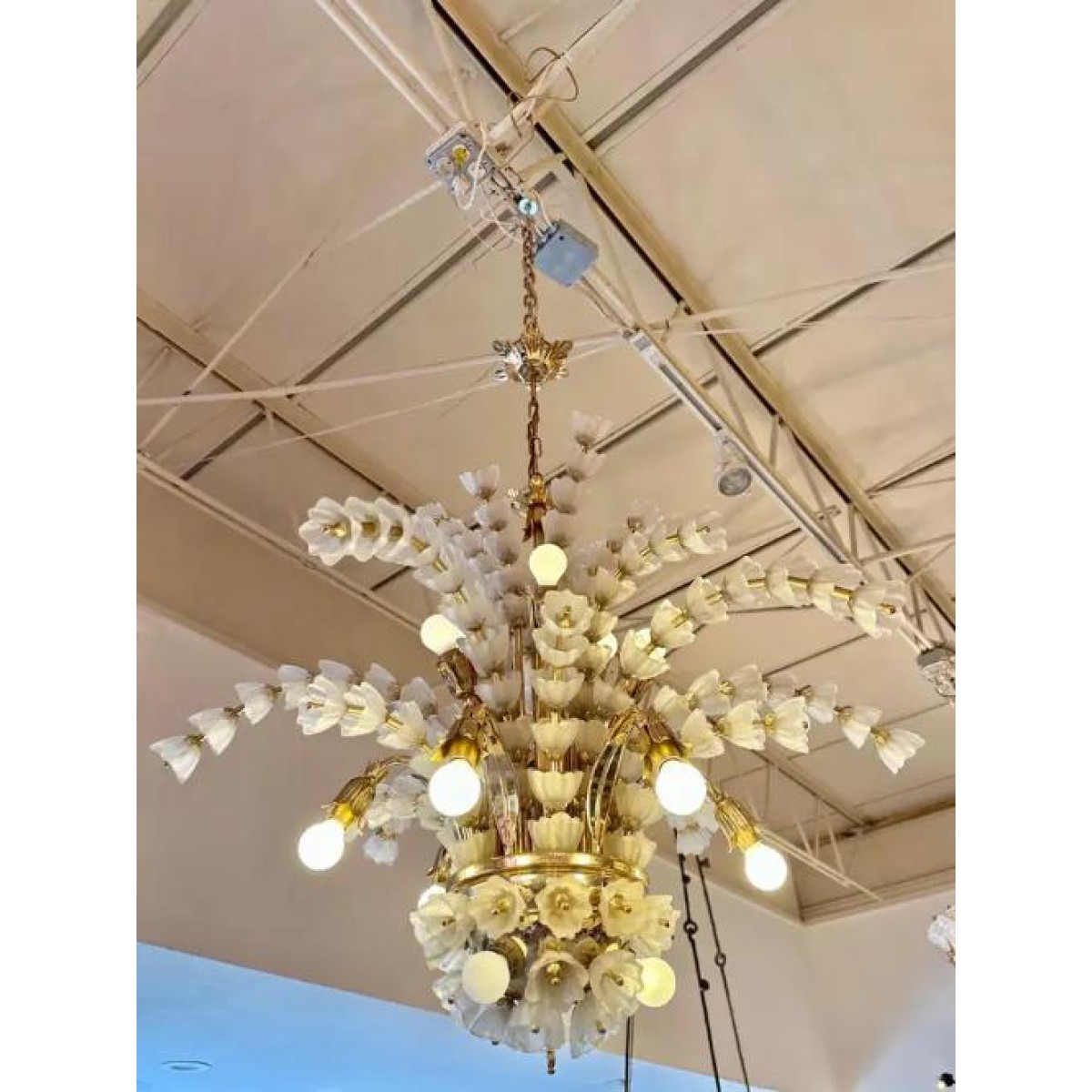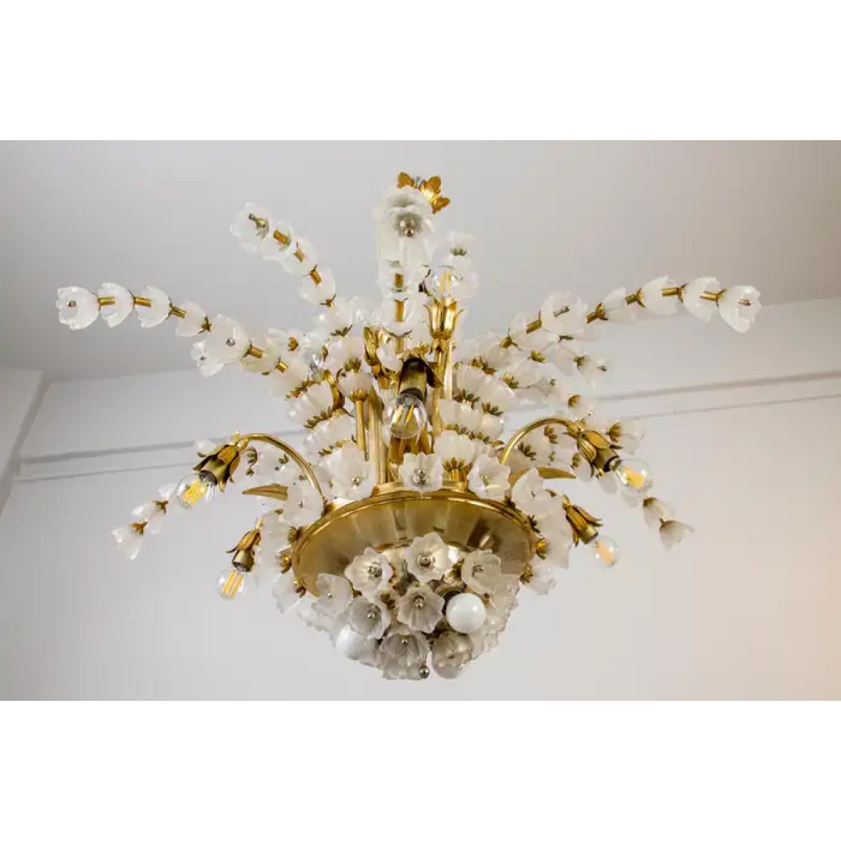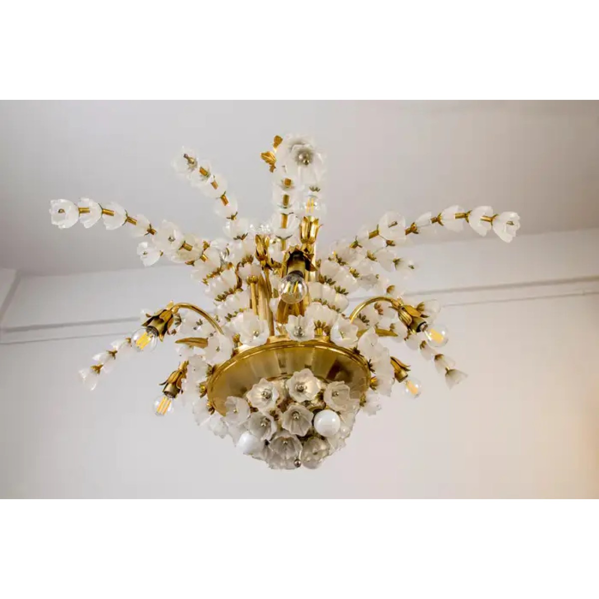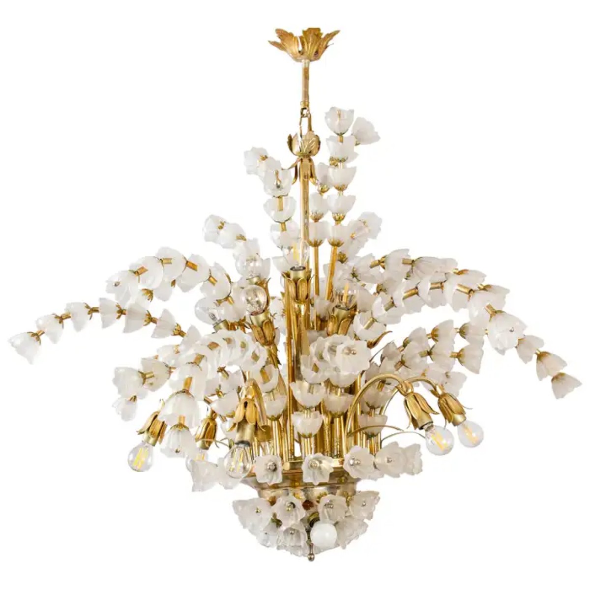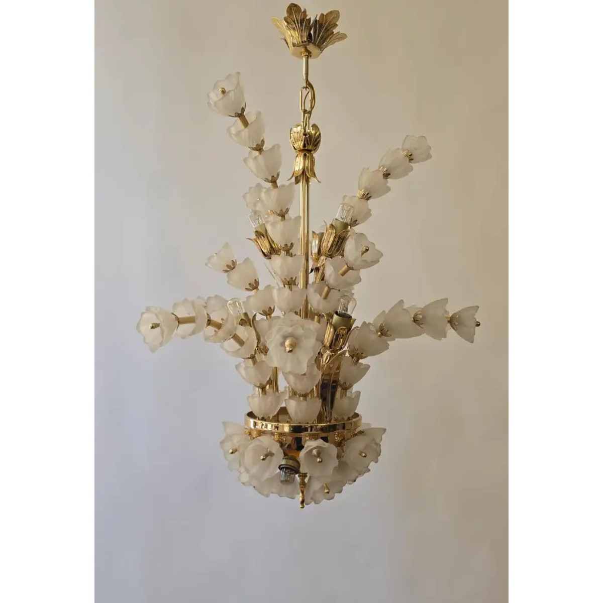 IQ2064 FLOWER BOUQUET I​  GLASS GILT CHANDELIER DESCRIPTION: Large 1970s vinta..