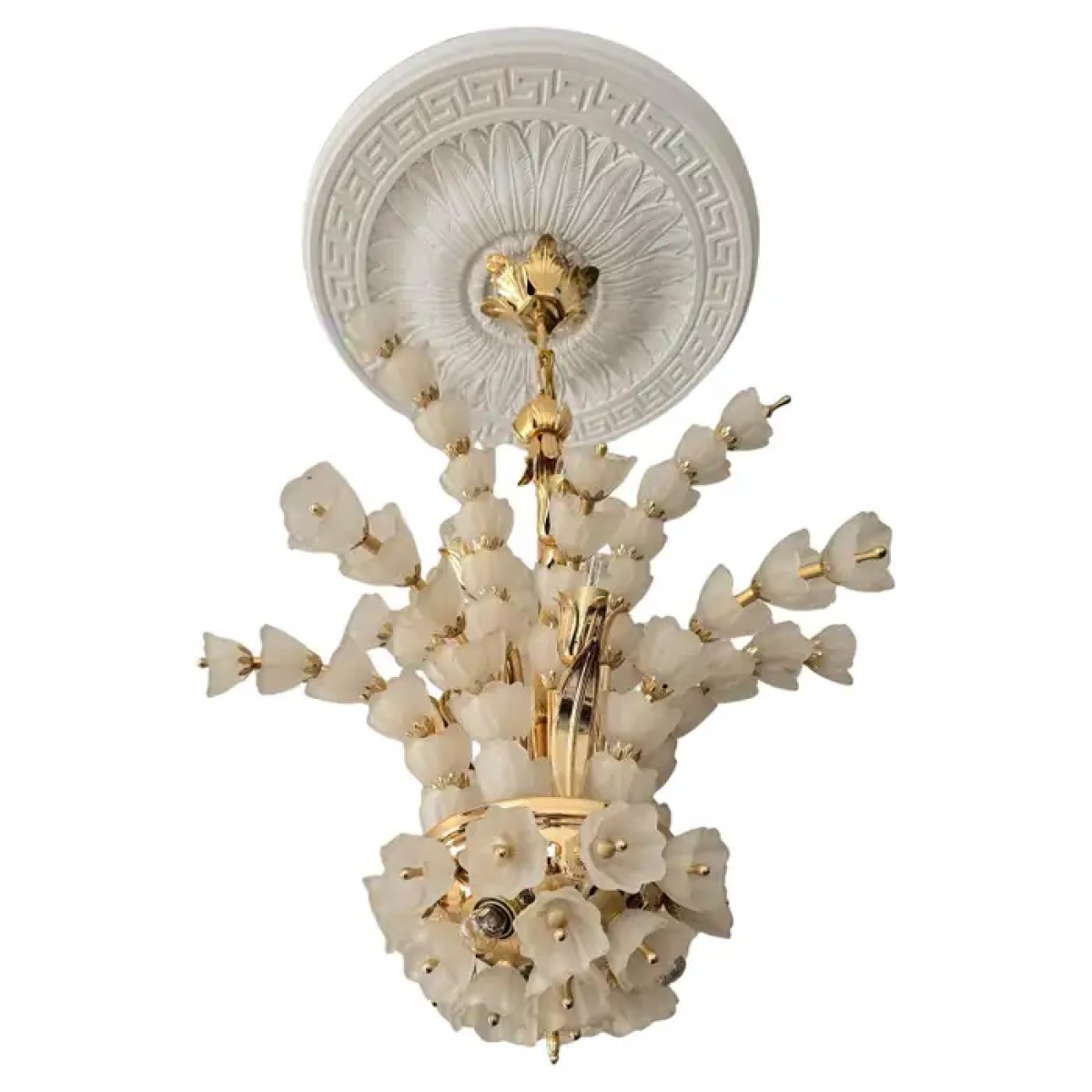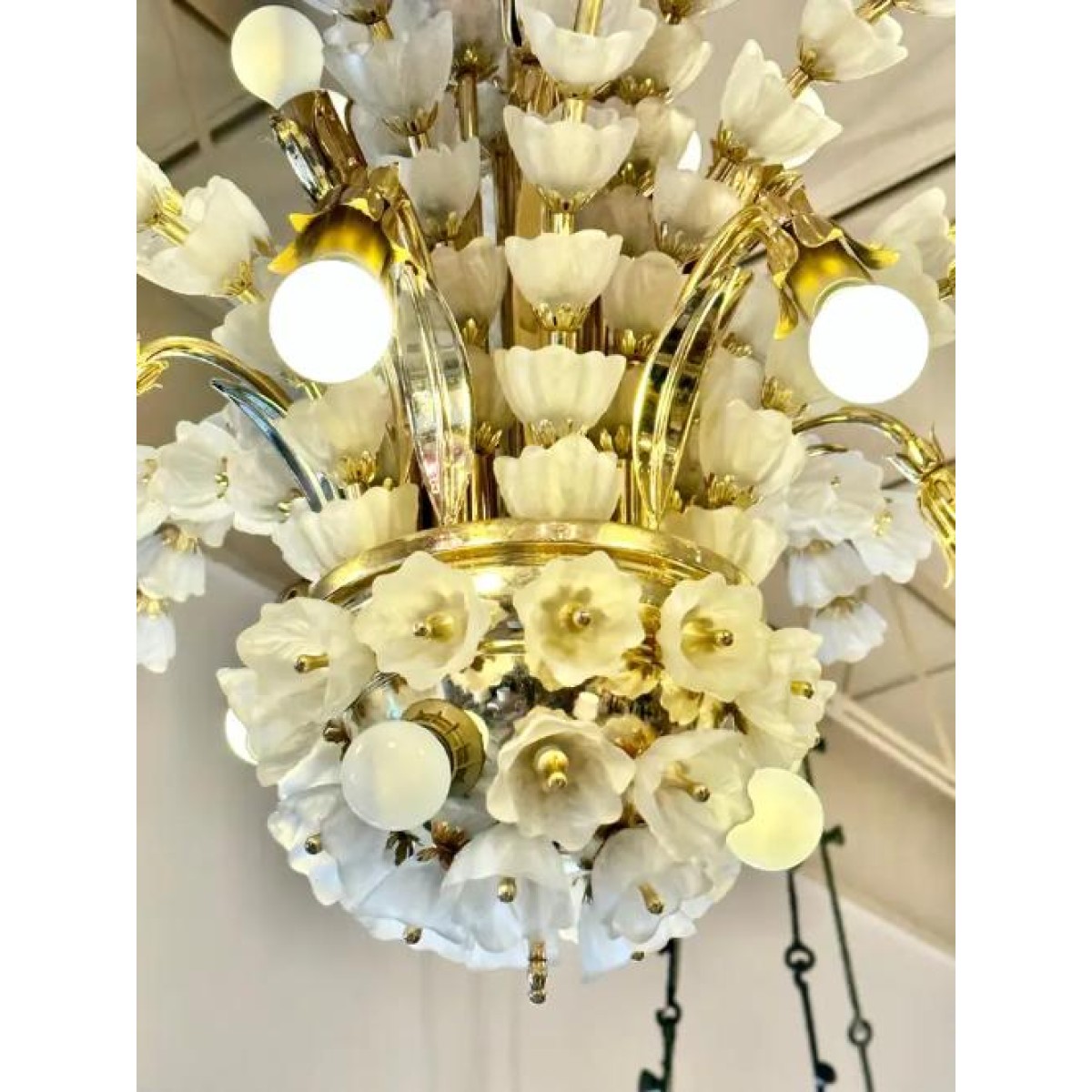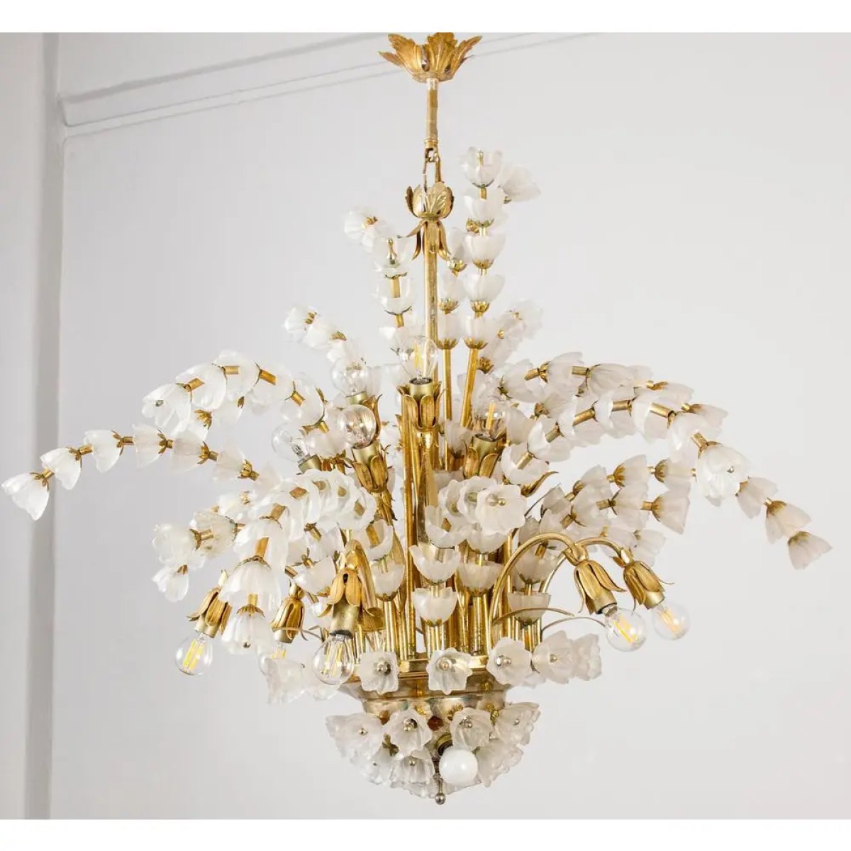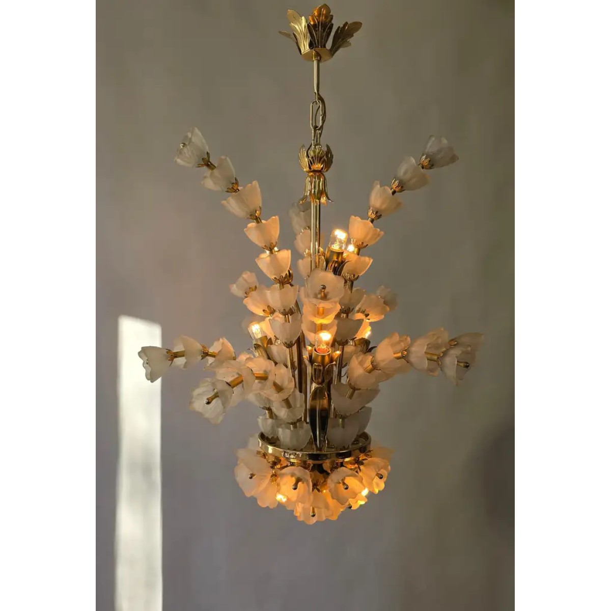 IQ2064 FLOWER BOUQUET I​  GLASS GILT CHANDELIER DESCRIPTION: Large 1970s vinta..