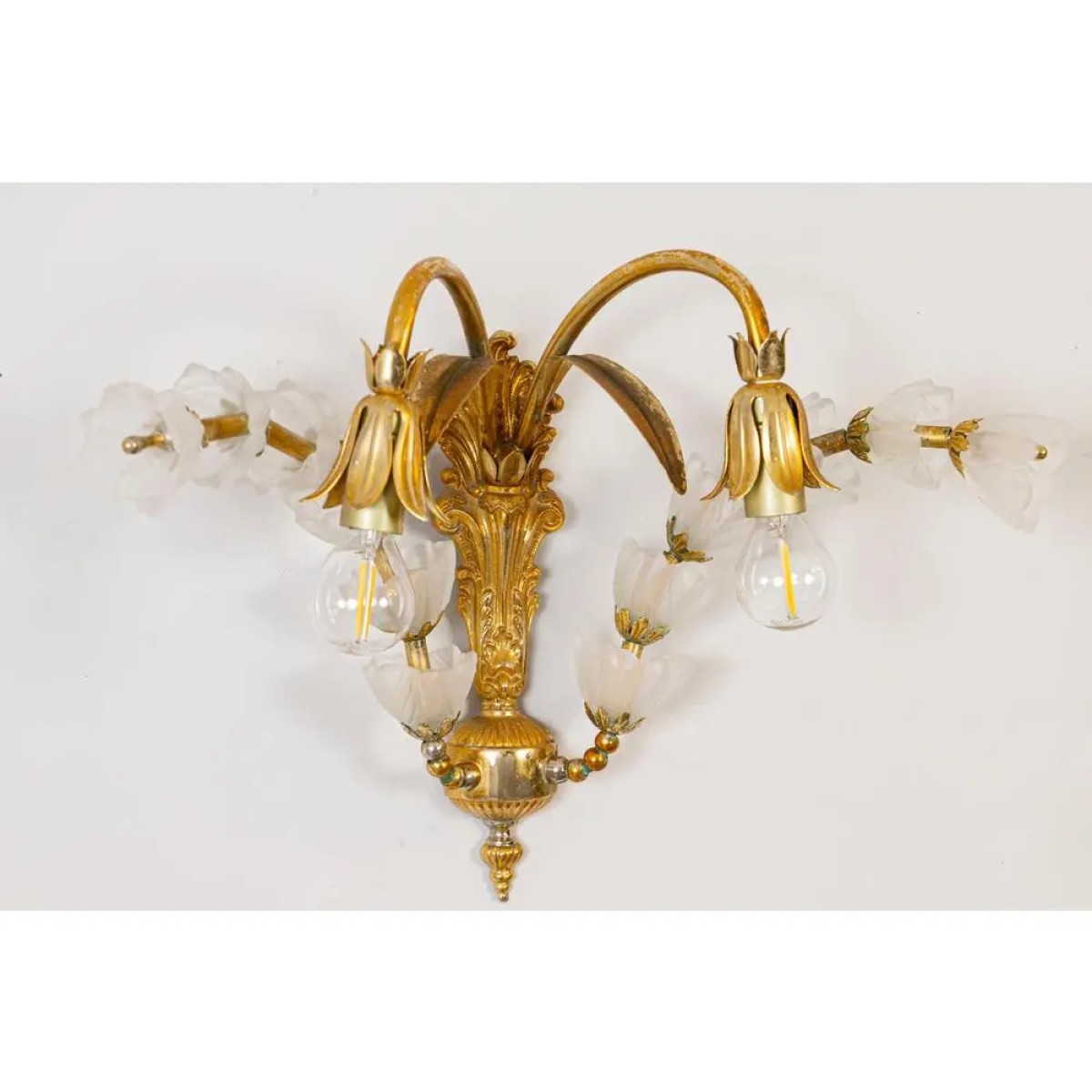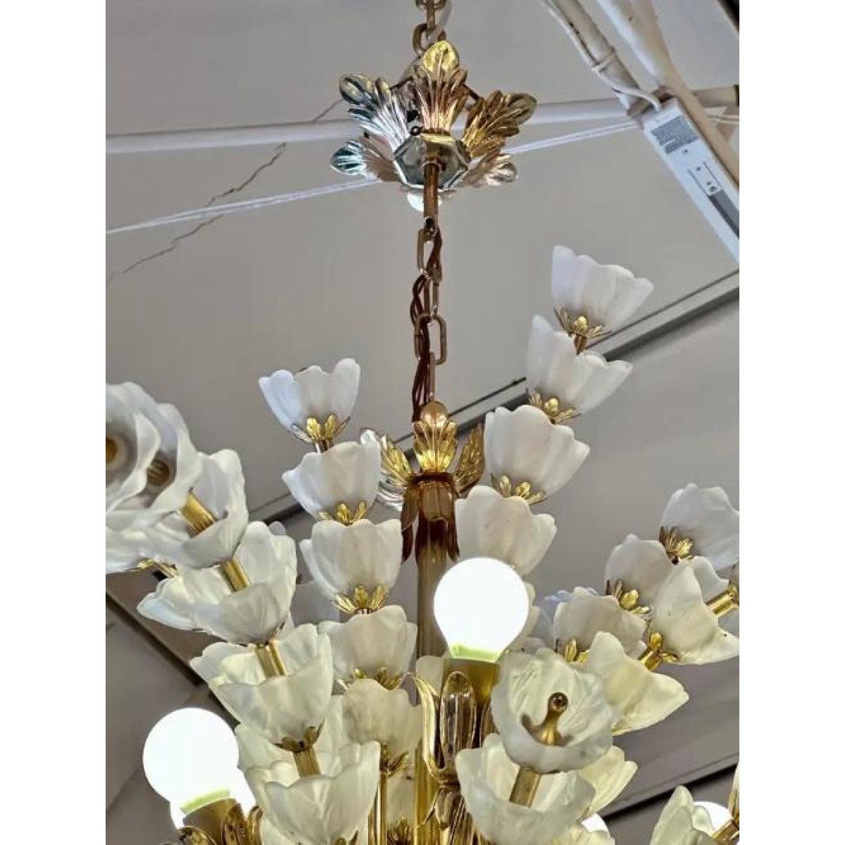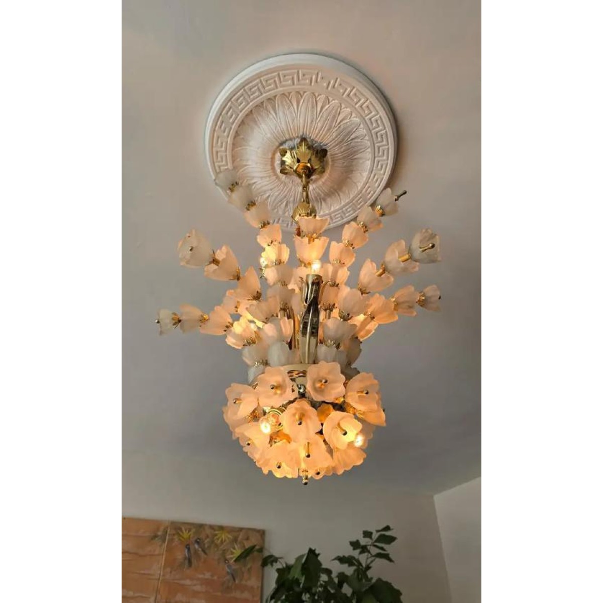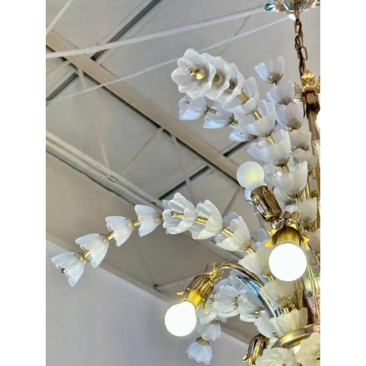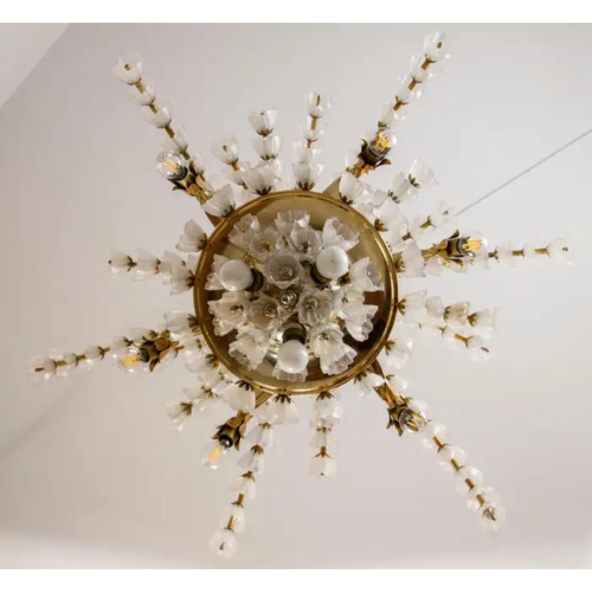 IQ2064 FLOWER BOUQUET I​  GLASS GILT CHANDELIER DESCRIPTION: Large 1970s vinta..