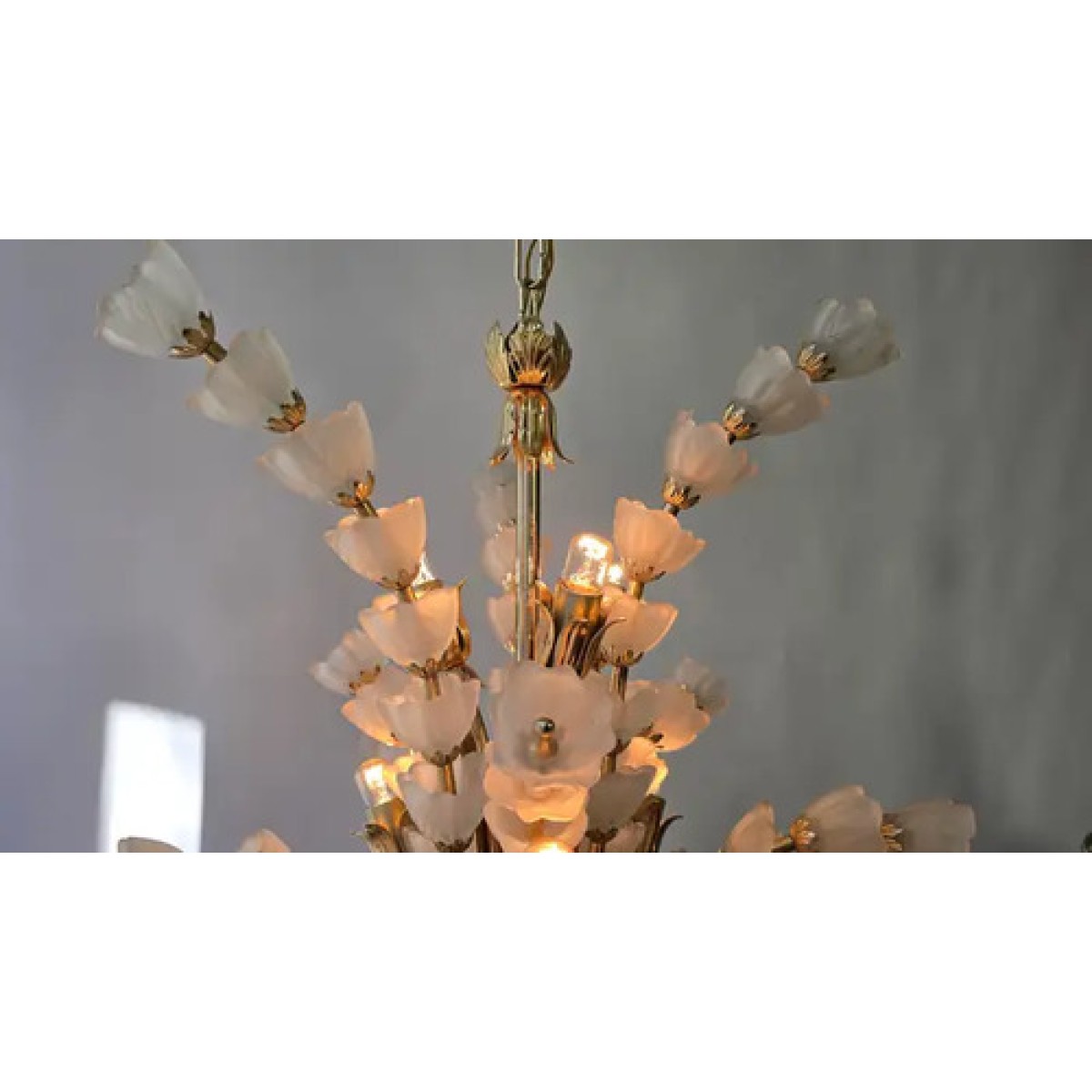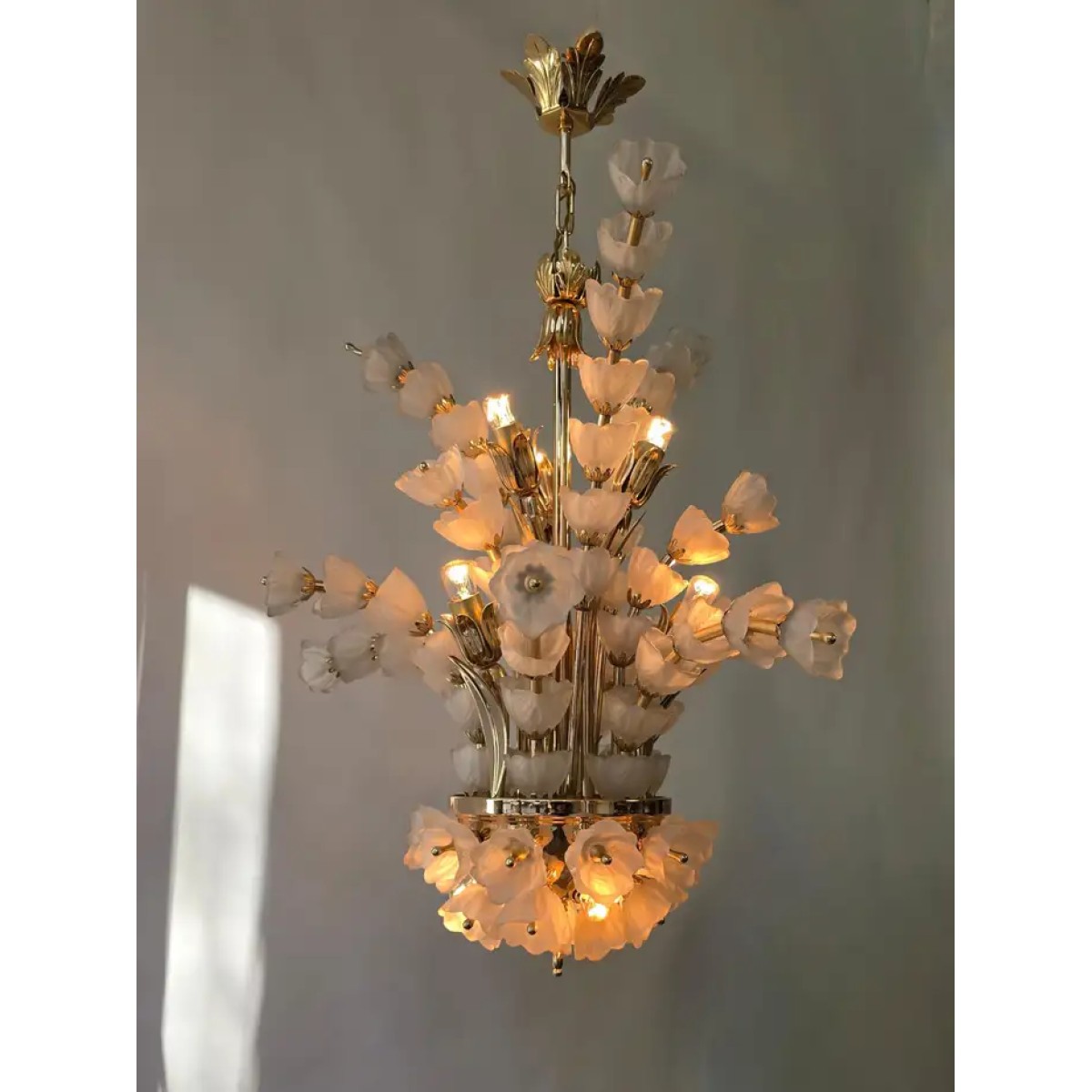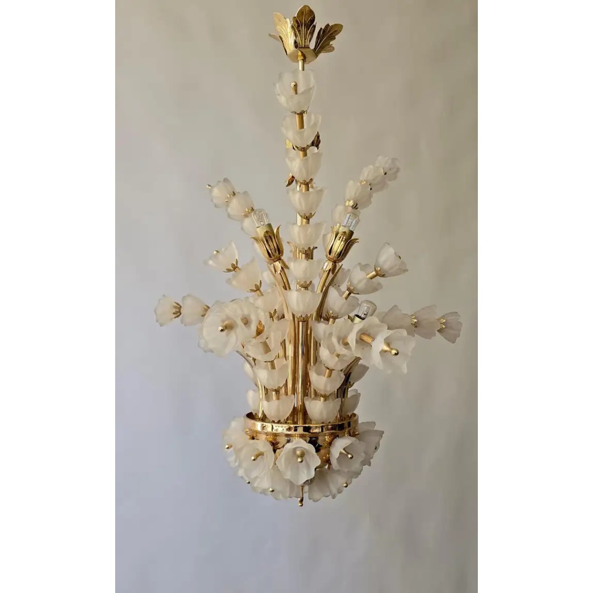 IQ2062 VENINI BOUQUET FLOWER GLASS GILT CHANDELIER   DESCRIPTION: The sculptural ve..