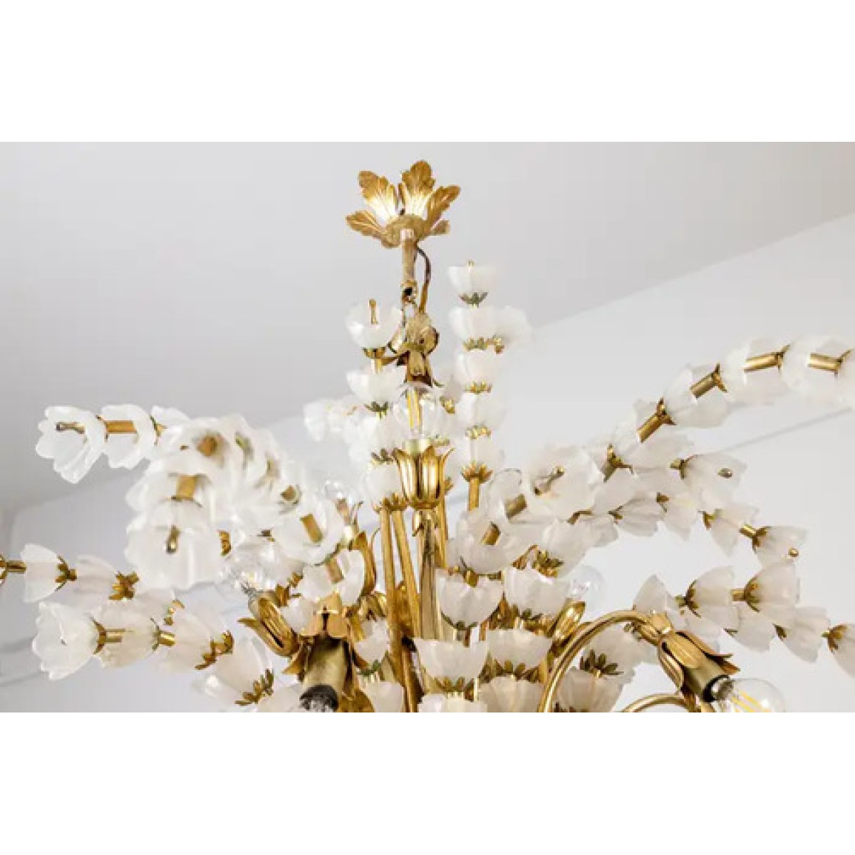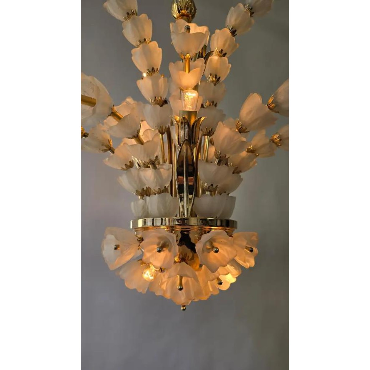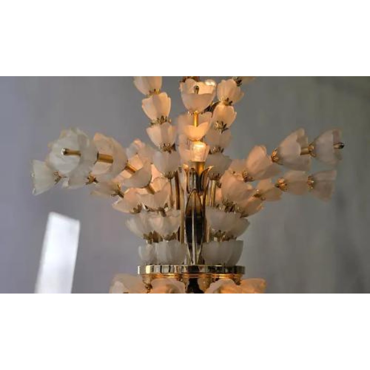 IQ2062 VENINI BOUQUET FLOWER GLASS GILT CHANDELIER   DESCRIPTION: The sculptural ve..